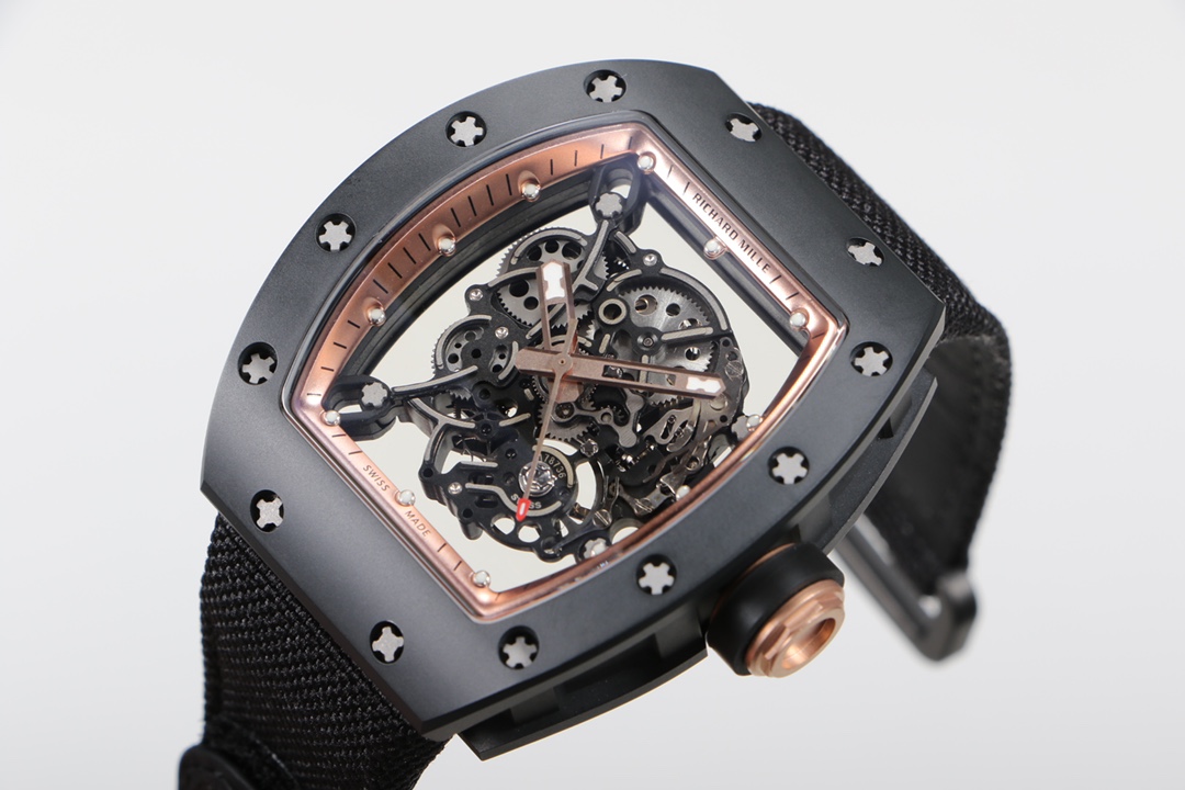 这款手表是AAAAA 1:1 质量 (非常棒). 使用了和原版一模一样的材料. 商标部分也保持了和理查德·米尔/Richard Mille一样. 图片拍摄是实物手表拍摄, 您所收到的实物保证和我们图片一模一样.