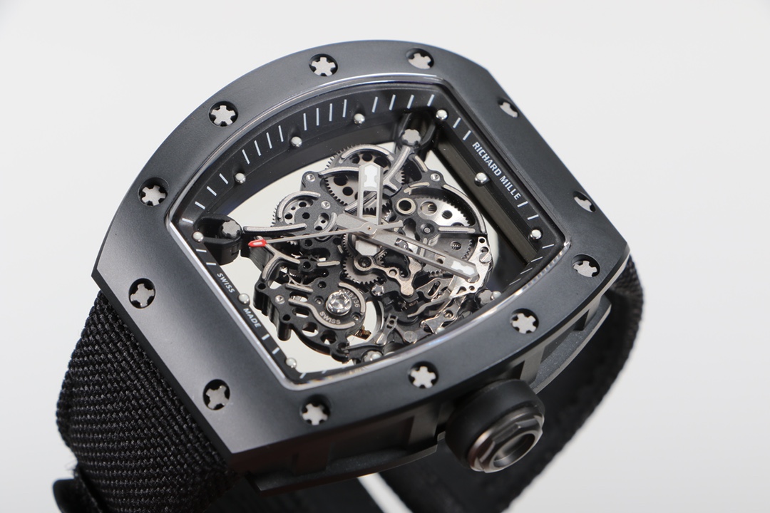 这款手表是AAAAA 1:1 质量 (非常棒). 使用了和原版一模一样的材料. 商标部分也保持了和理查德·米尔/Richard Mille一样. 图片拍摄是实物手表拍摄, 您所收到的实物保证和我们图片一模一样.