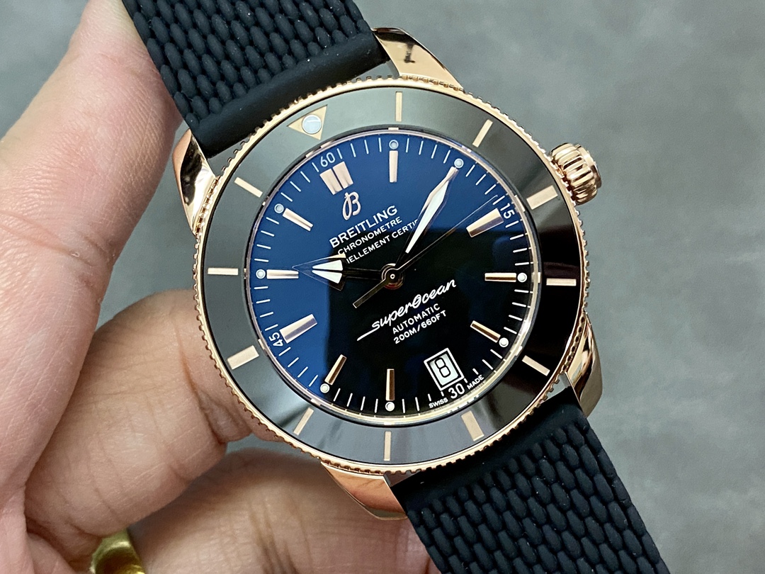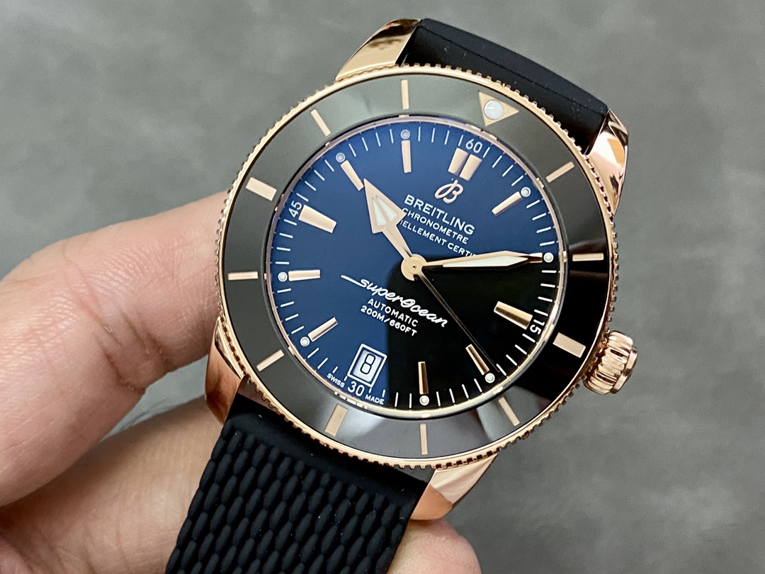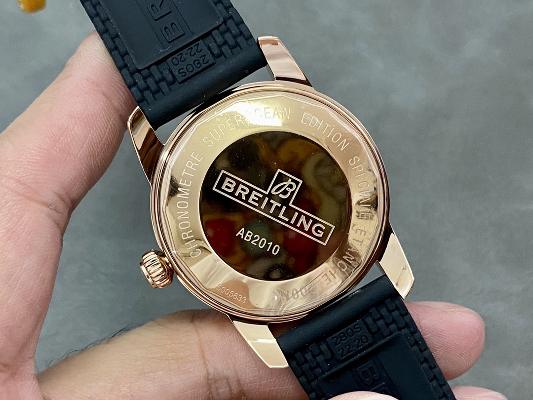 这款手表是AAAAA 1:1 质量 (非常棒). 使用了和原版一模一样的材料. 商标部分也保持了和Breitling一样. 图片拍摄是实物手表拍摄, 您所收到的实物保证和我们图片一模一样.