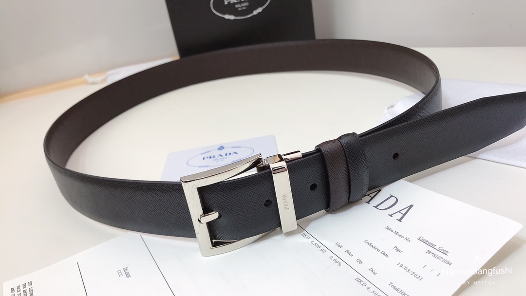 这款皮带是AAAAA 1:1 质量 (非常棒). 使用了和原版一模一样的材料. 商标部分也保持了和普拉达/Prada一样. 图片拍摄是实物皮带拍摄, 您所收到的实物保证和我们图片一模一样.