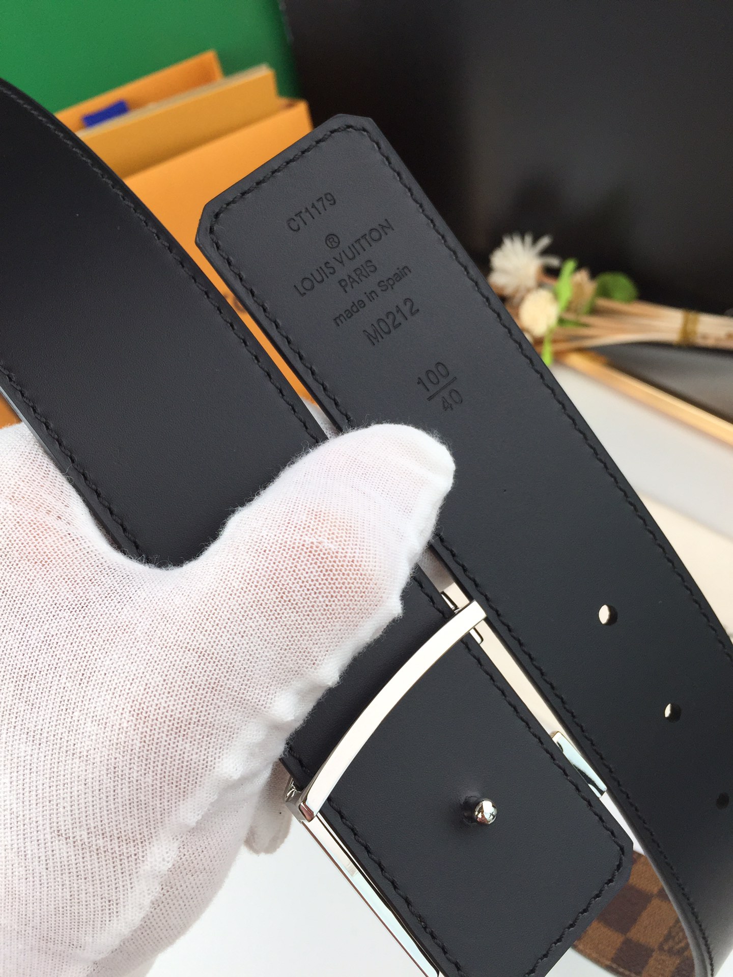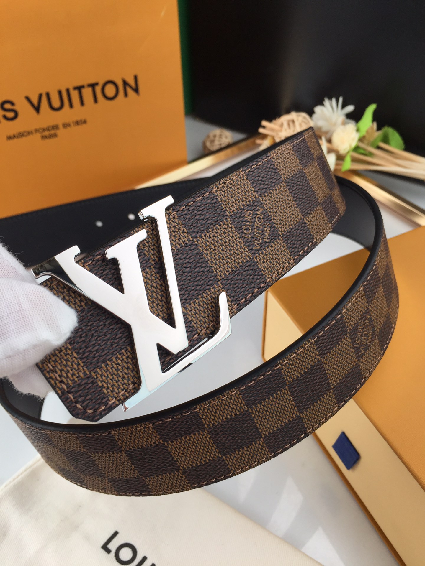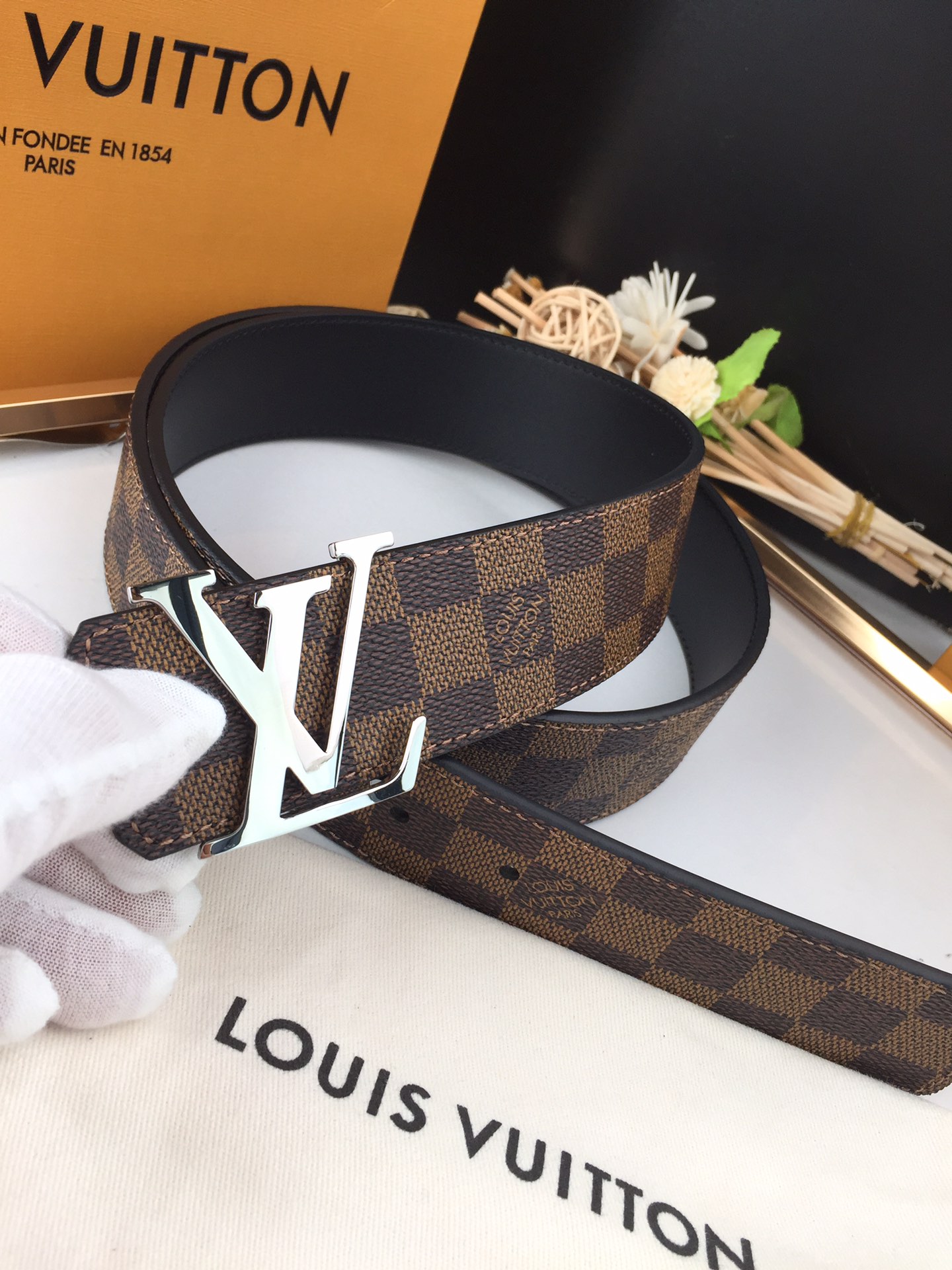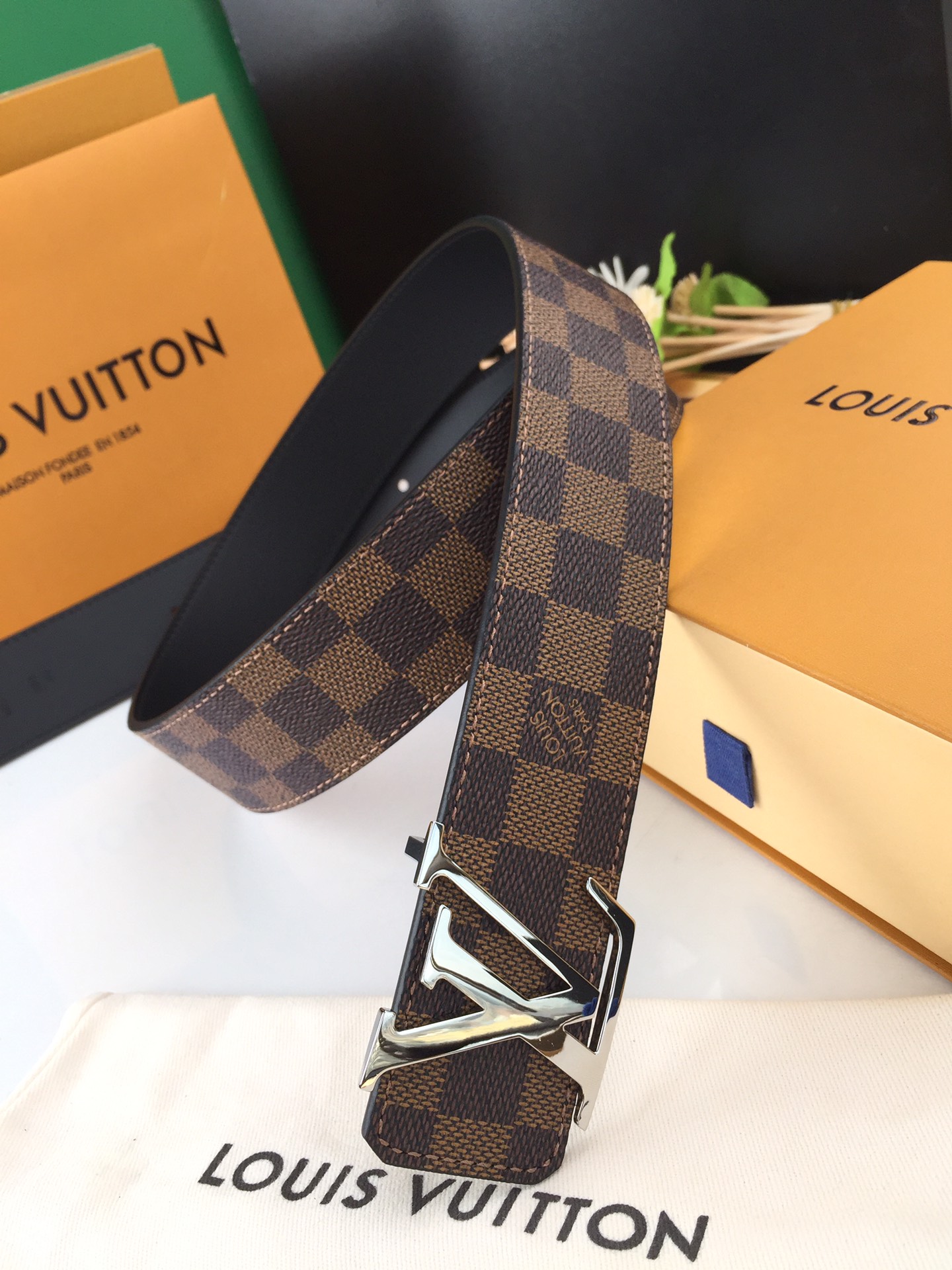 这款皮带是AAAAA 1:1 质量 (非常棒). 使用了和原版一模一样的材料. 商标部分也保持了和路易威登/Louis Vuitton一样. 图片拍摄是实物皮带拍摄, 您所收到的实物保证和我们图片一模一样.