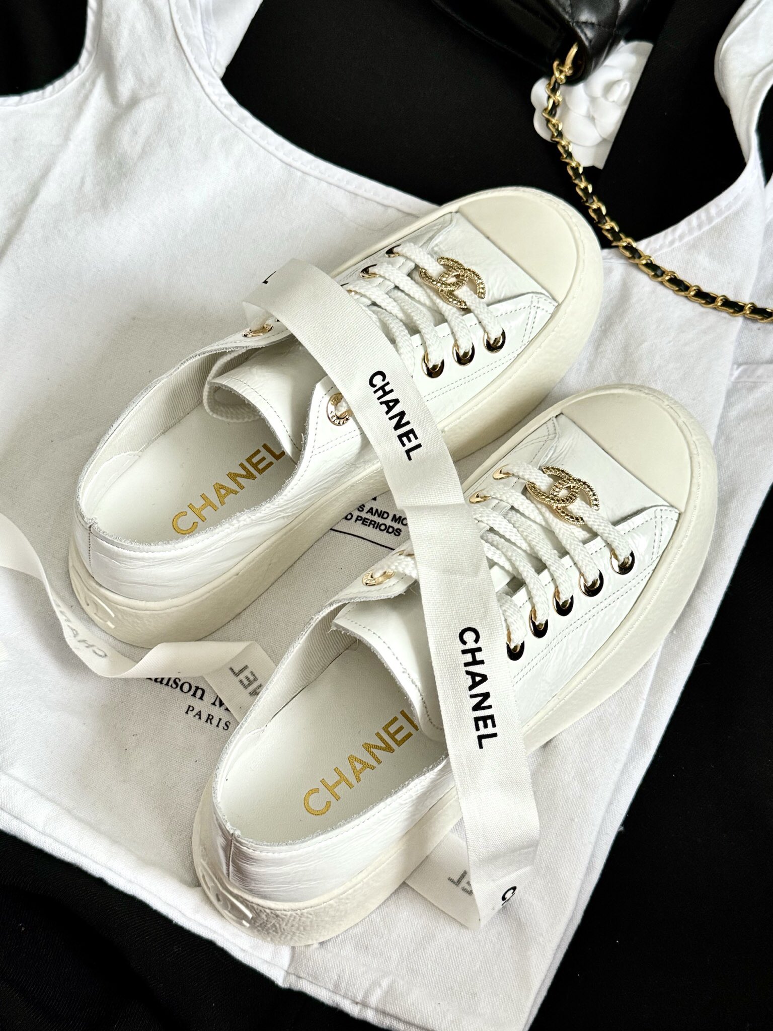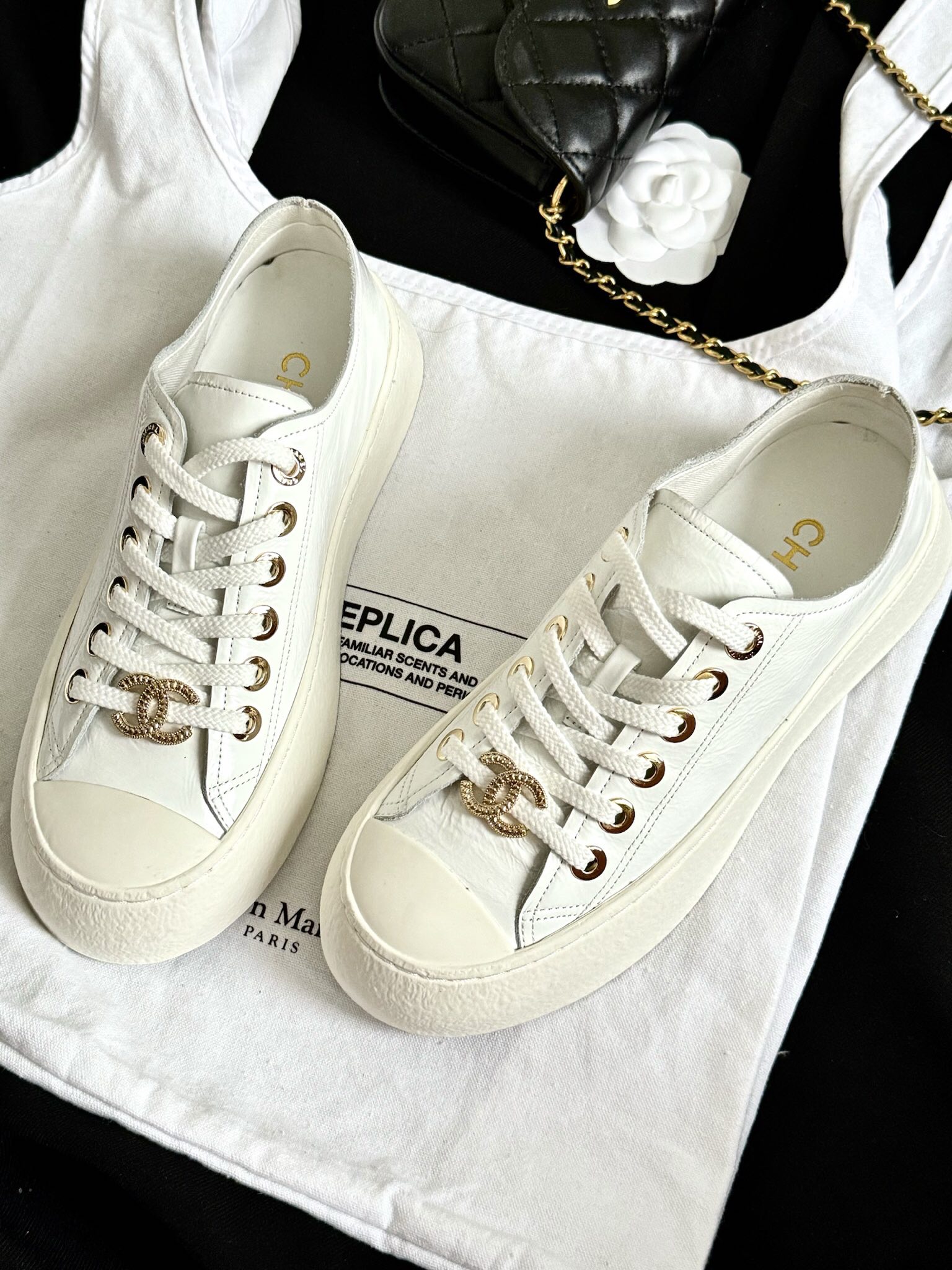 这款鞋子是AAAAA 1:1 质量 (非常棒). 使用了和原版一模一样的材料. 商标部分也保持了和香奈儿/Chanel一样. 图片拍摄是实物鞋子拍摄, 您所收到的实物保证和我们图片一模一样.