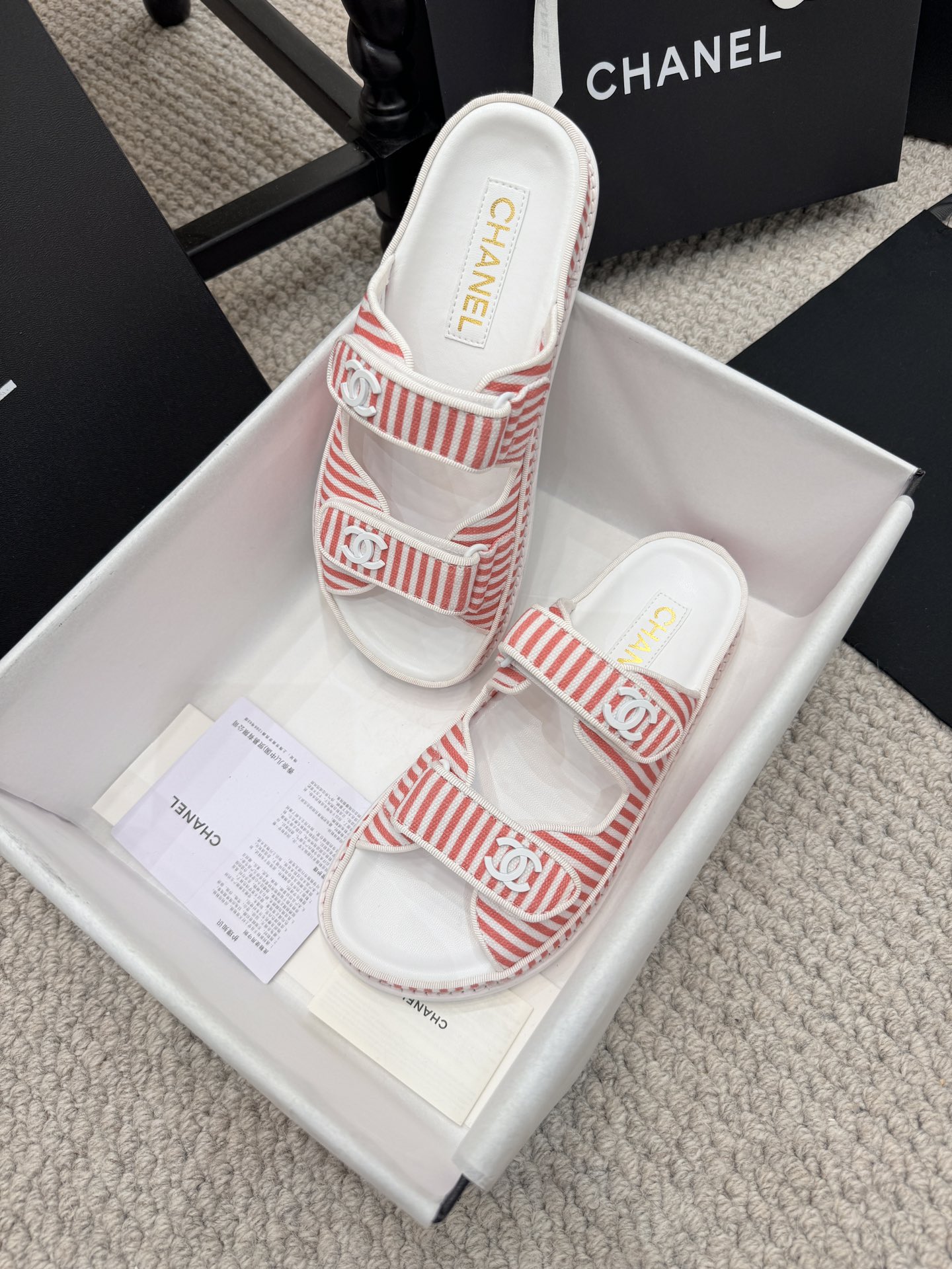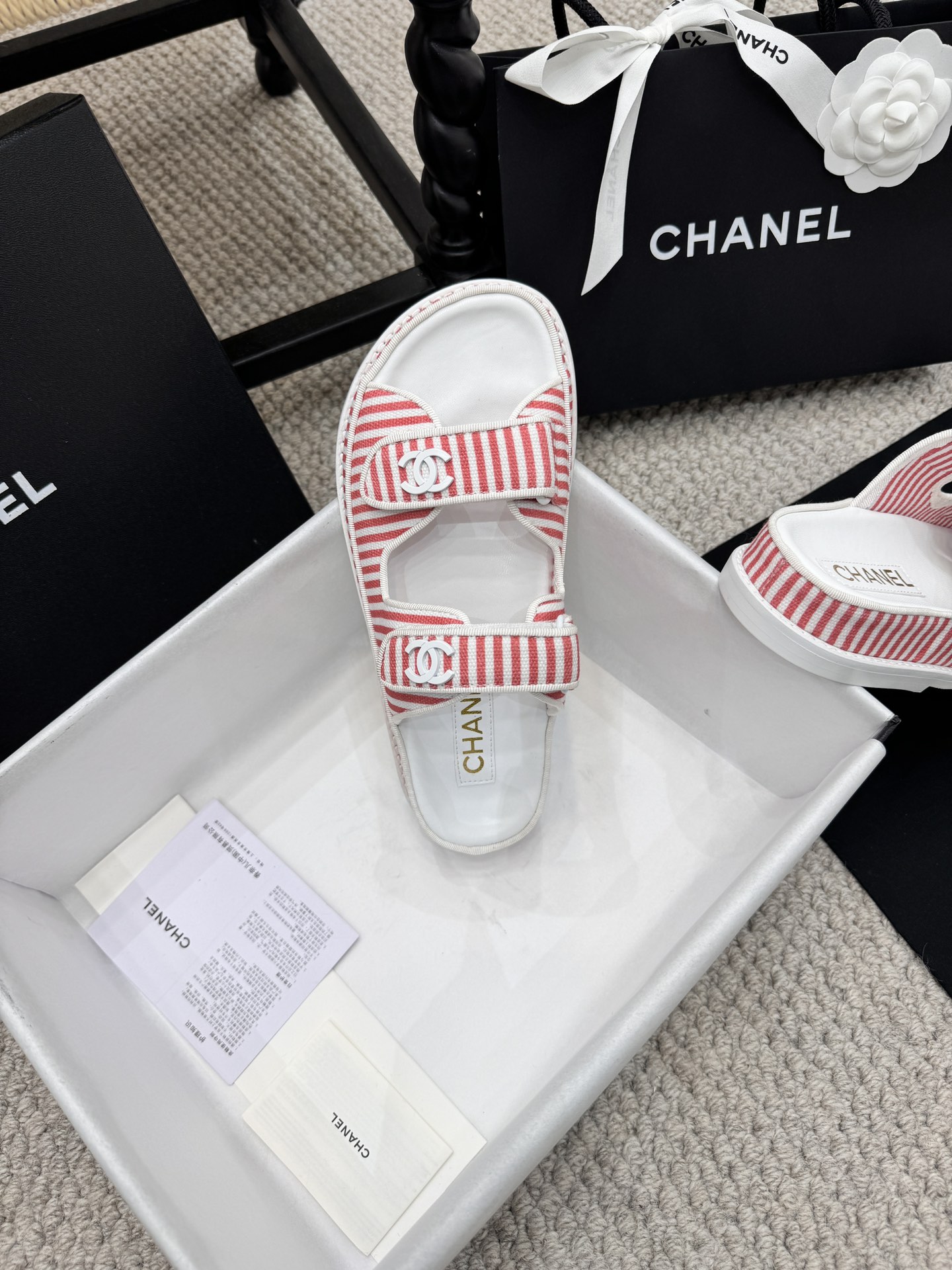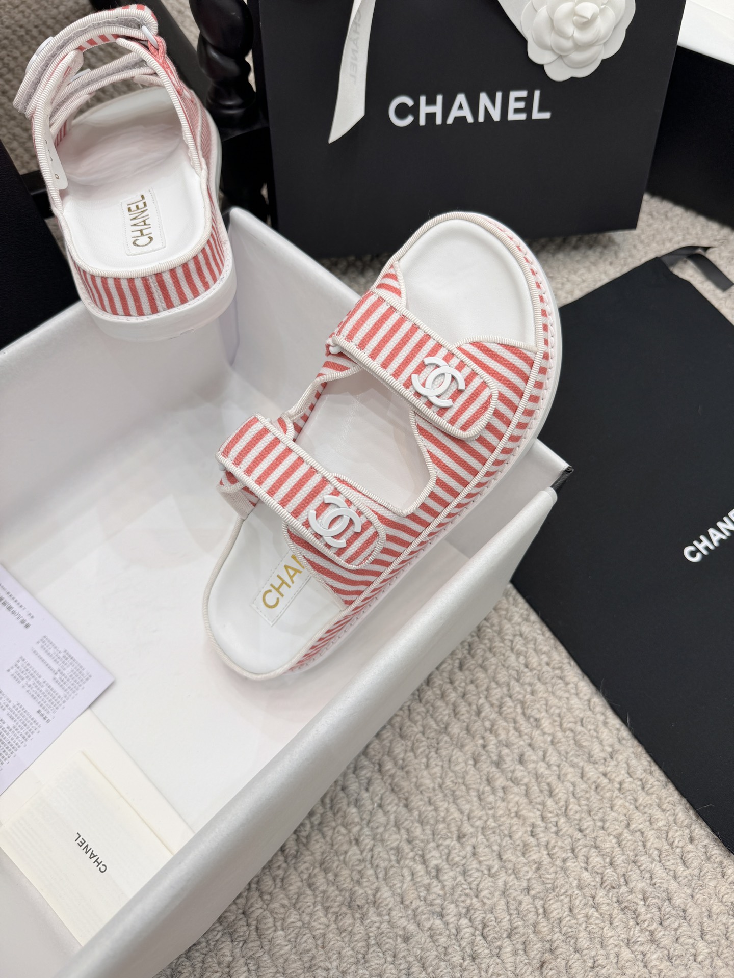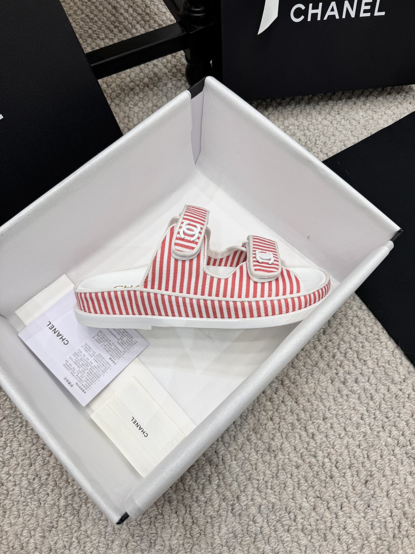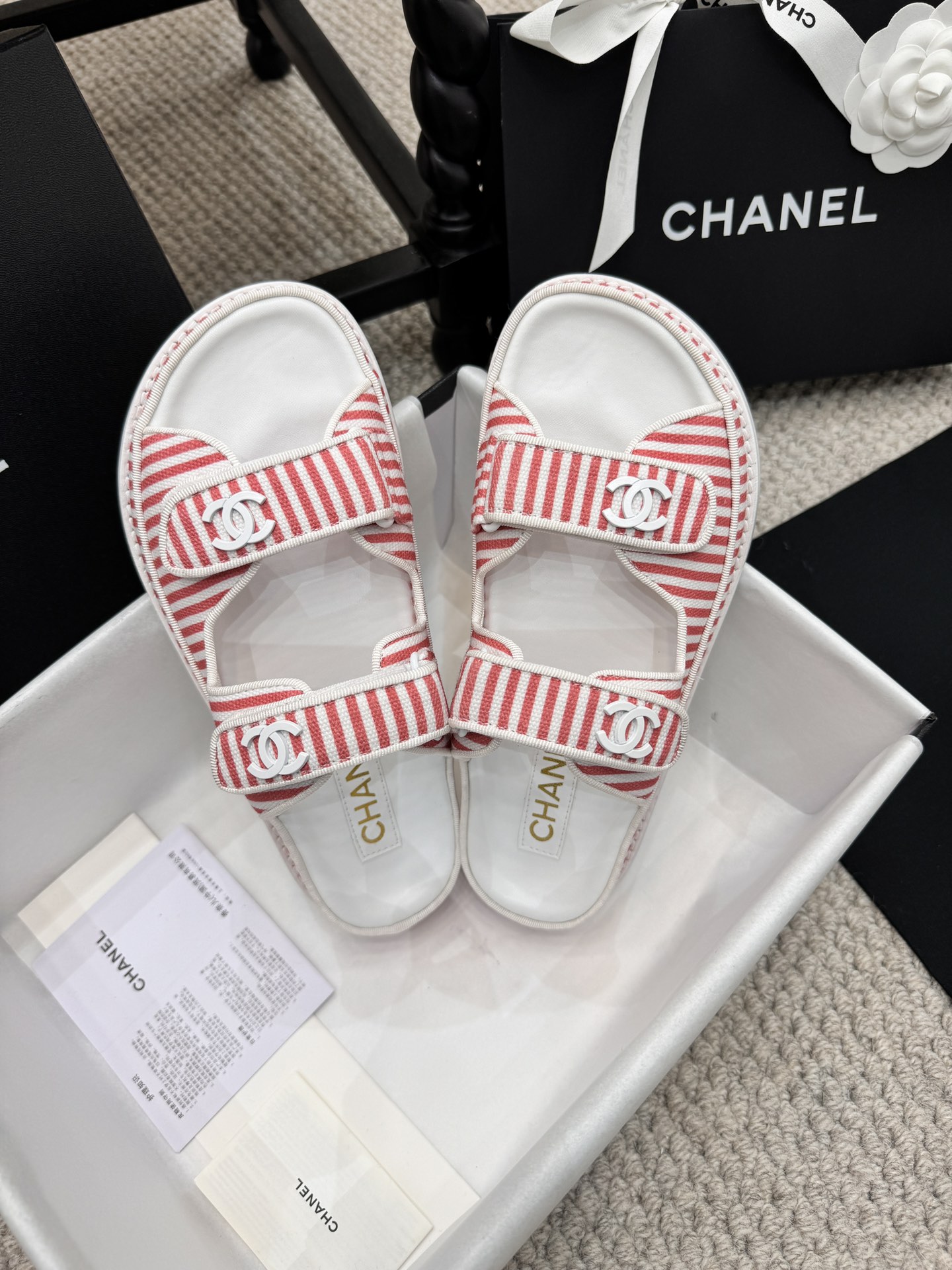这款鞋子是AAAAA 1:1 质量 (非常棒). 使用了和原版一模一样的材料. 商标部分也保持了和香奈儿/Chanel一样. 图片拍摄是实物鞋子拍摄, 您所收到的实物保证和我们图片一模一样.