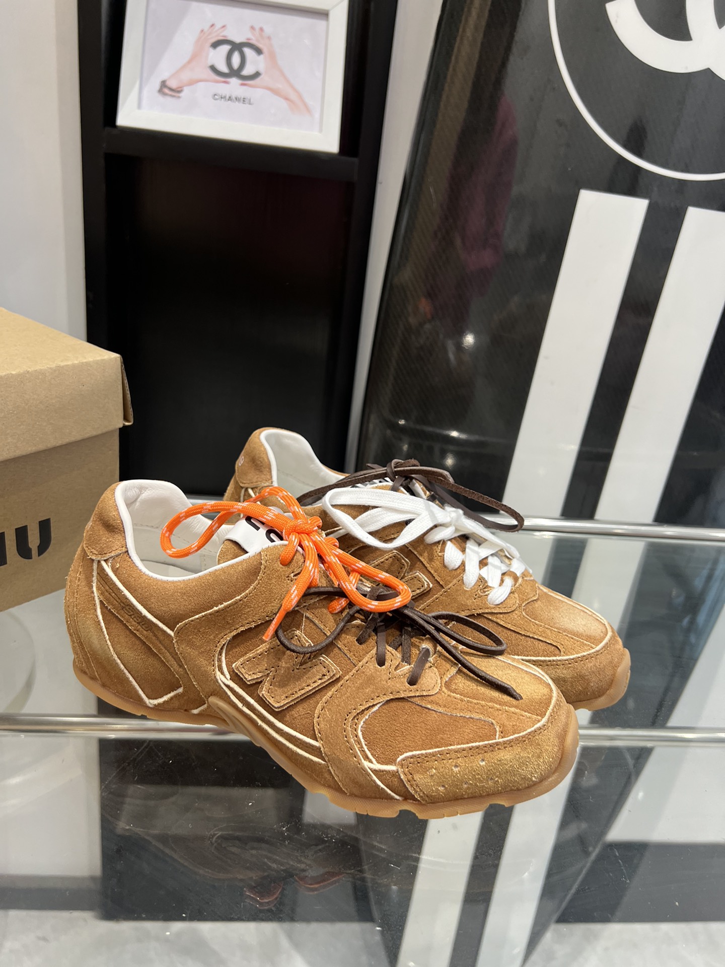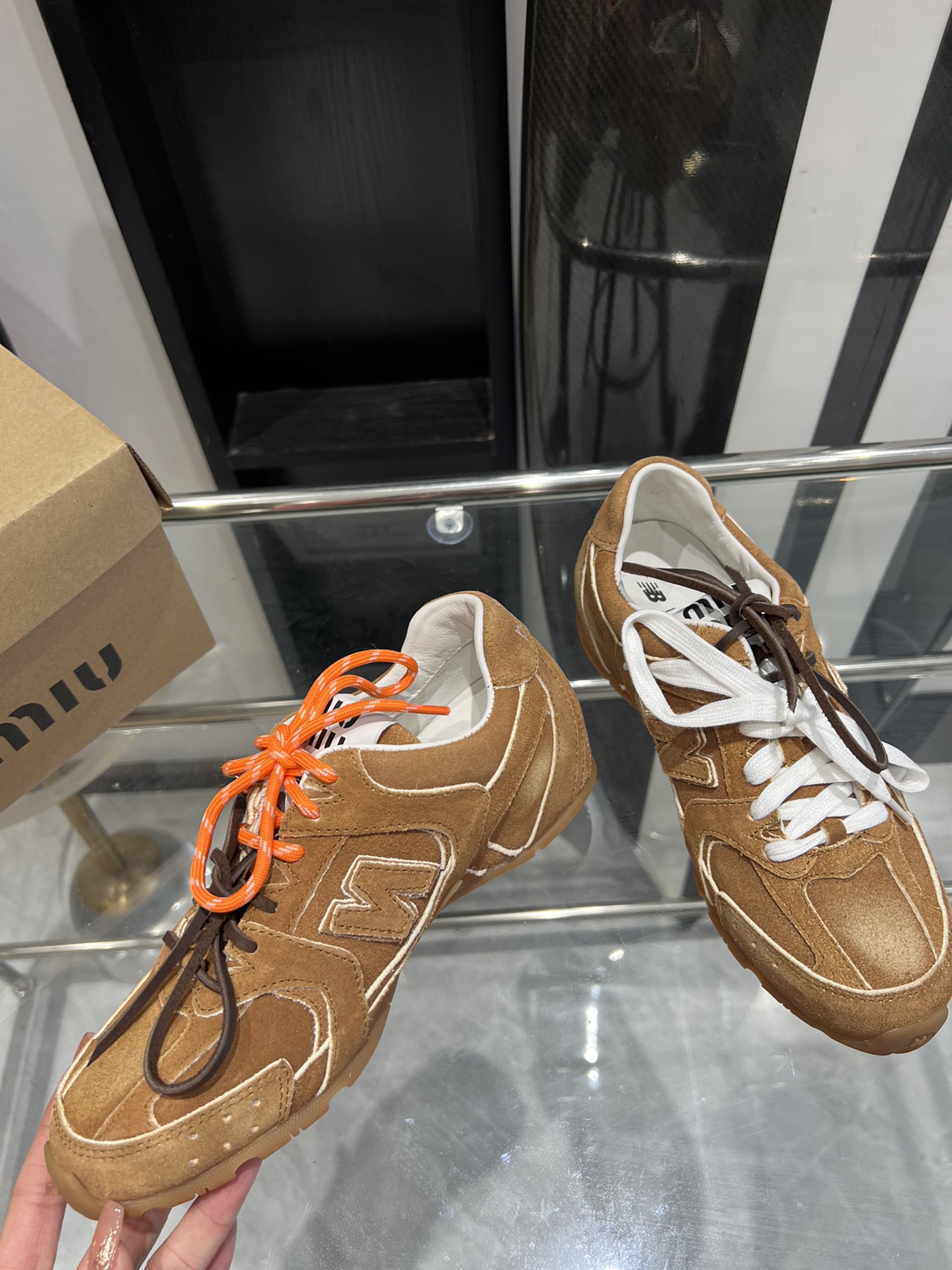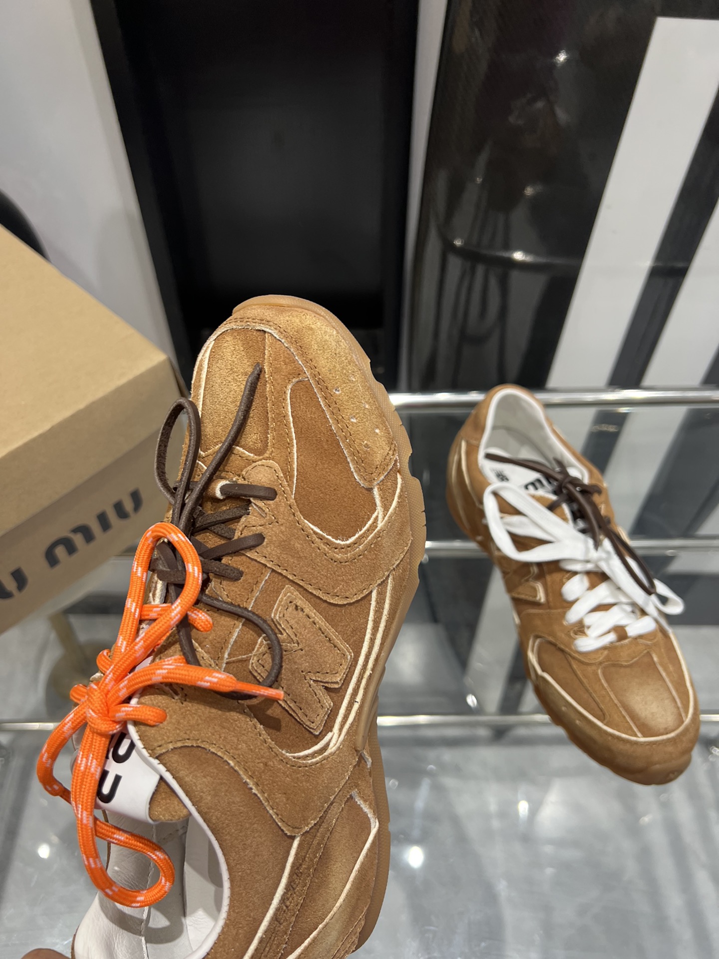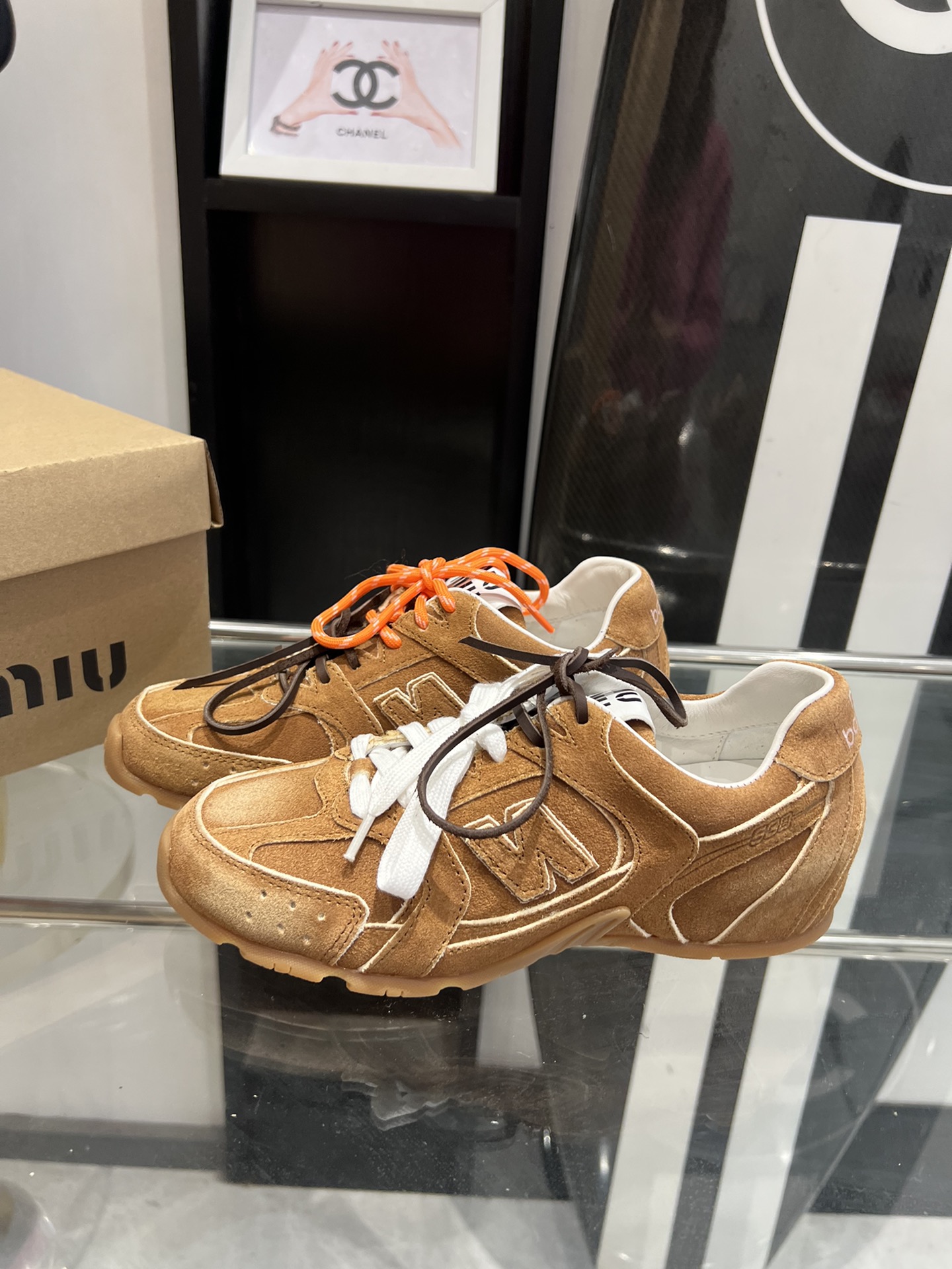 这款鞋子是AAAAA 1:1 质量 (非常棒). 使用了和原版一模一样的材料. 商标部分也保持了和缪缪/Miu Miu一样. 图片拍摄是实物鞋子拍摄, 您所收到的实物保证和我们图片一模一样.