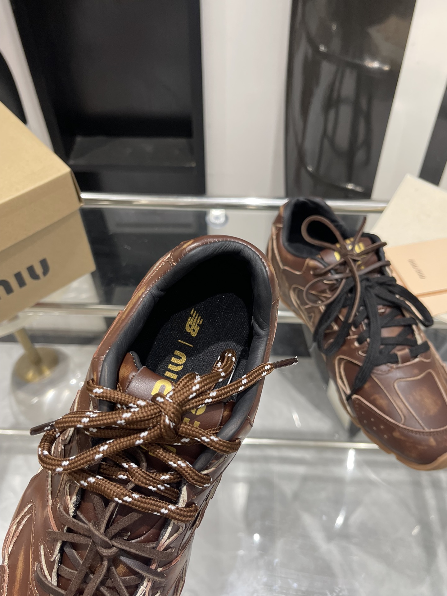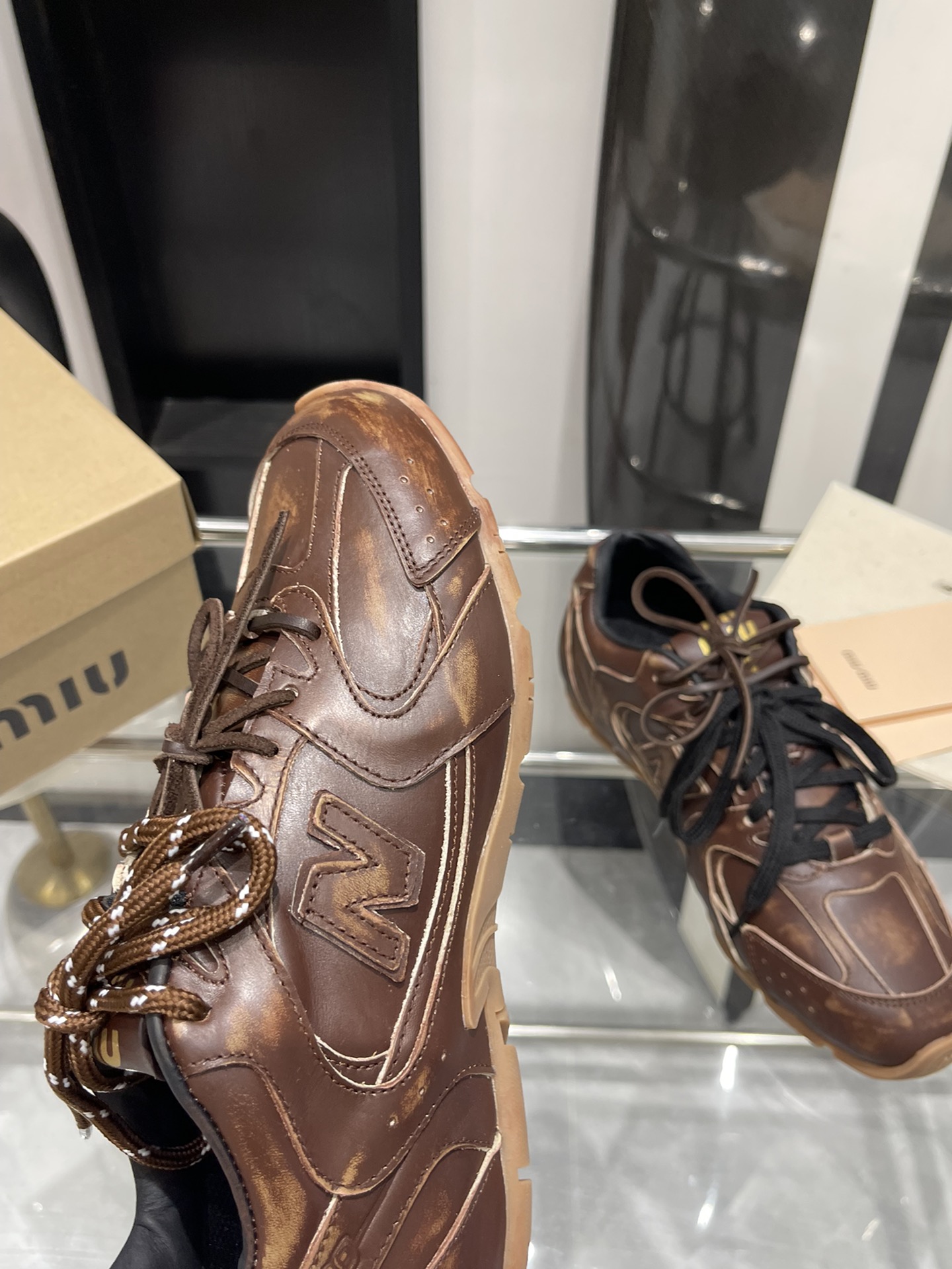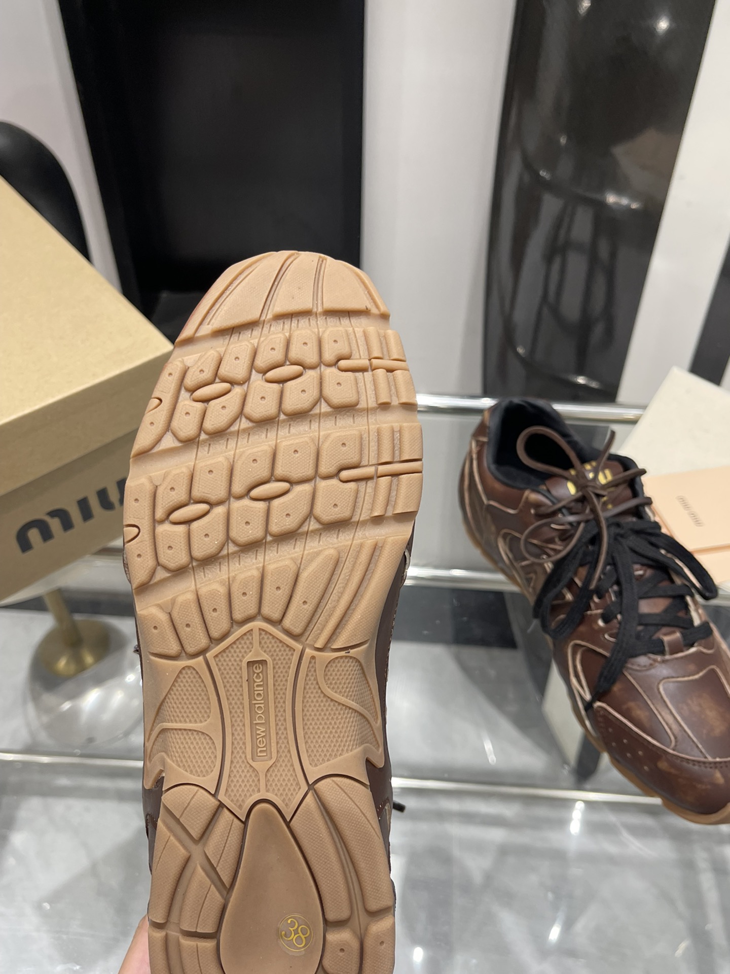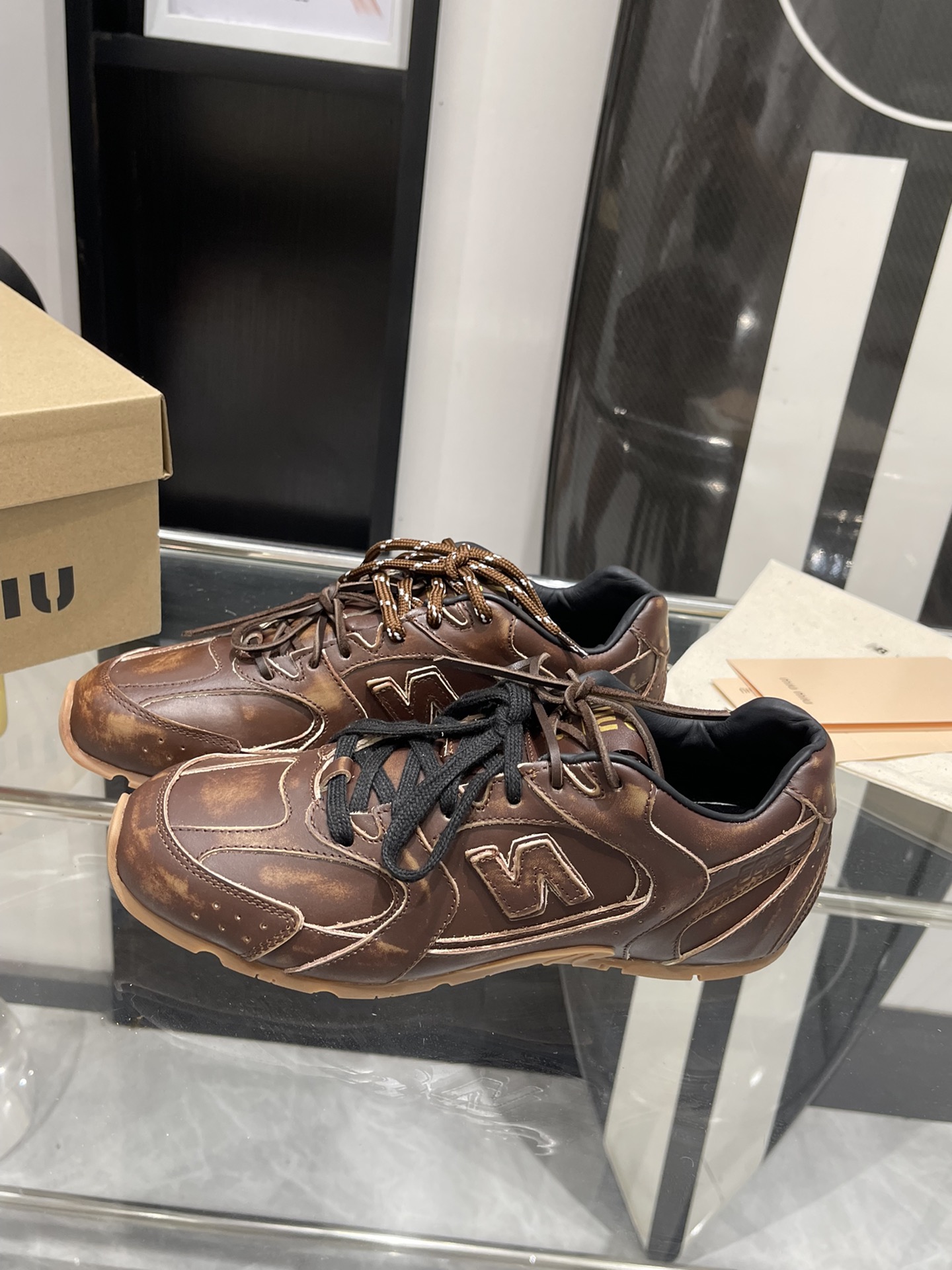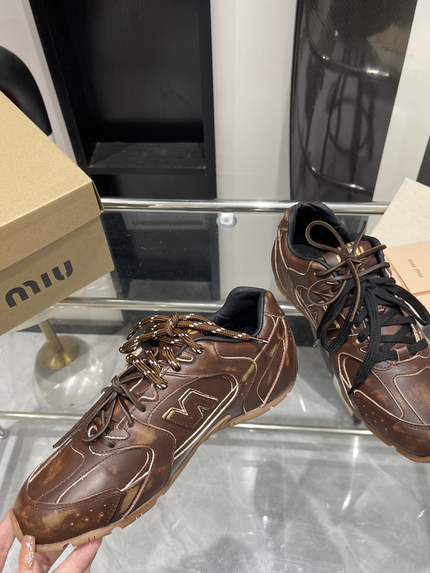 这款鞋子是AAAAA 1:1 质量 (非常棒). 使用了和原版一模一样的材料. 商标部分也保持了和缪缪/Miu Miu一样. 图片拍摄是实物鞋子拍摄, 您所收到的实物保证和我们图片一模一样.