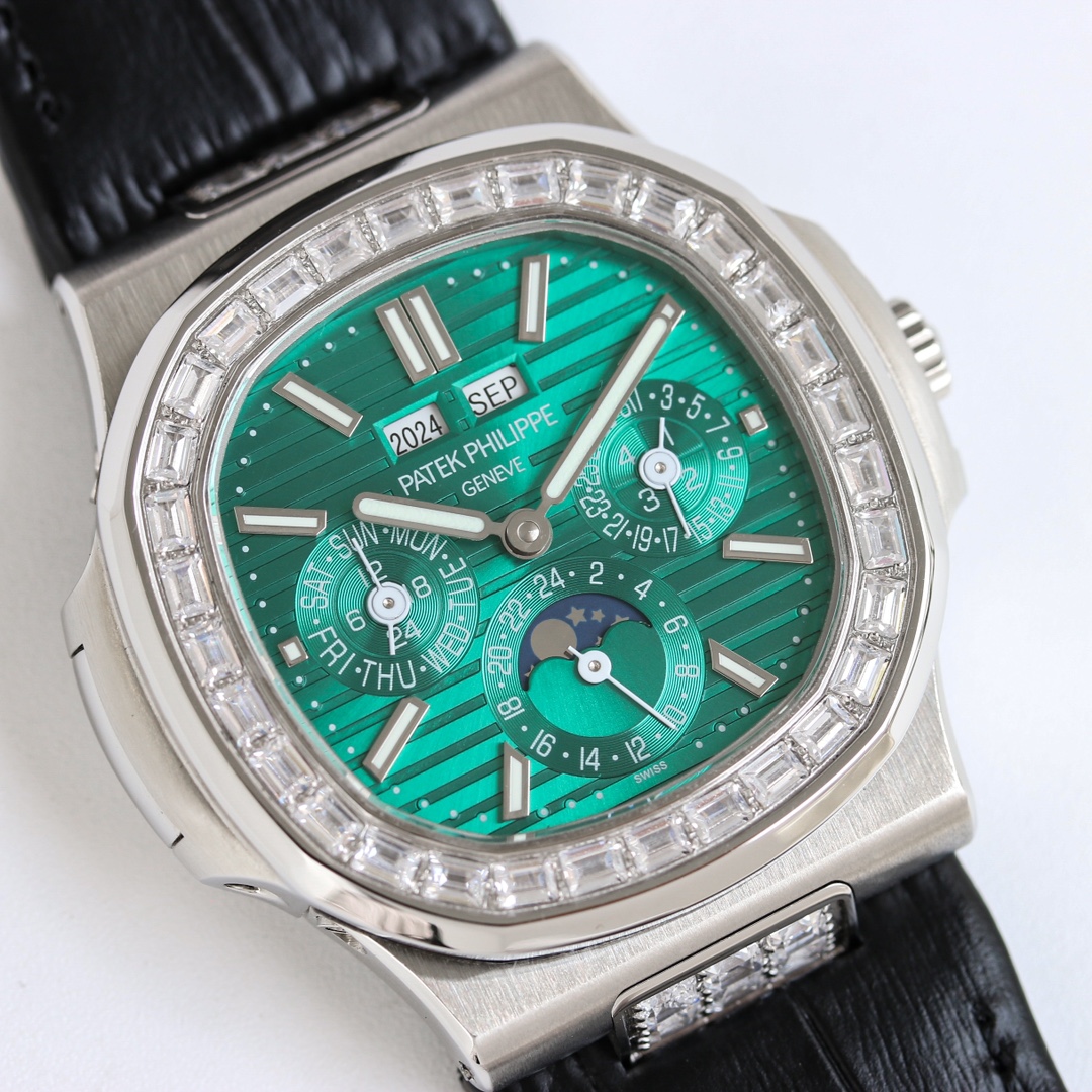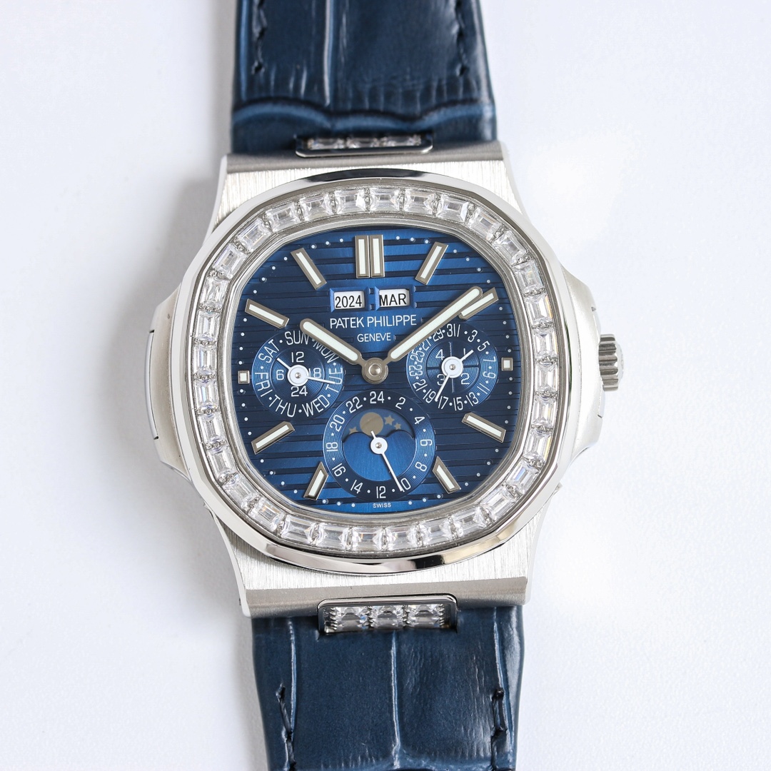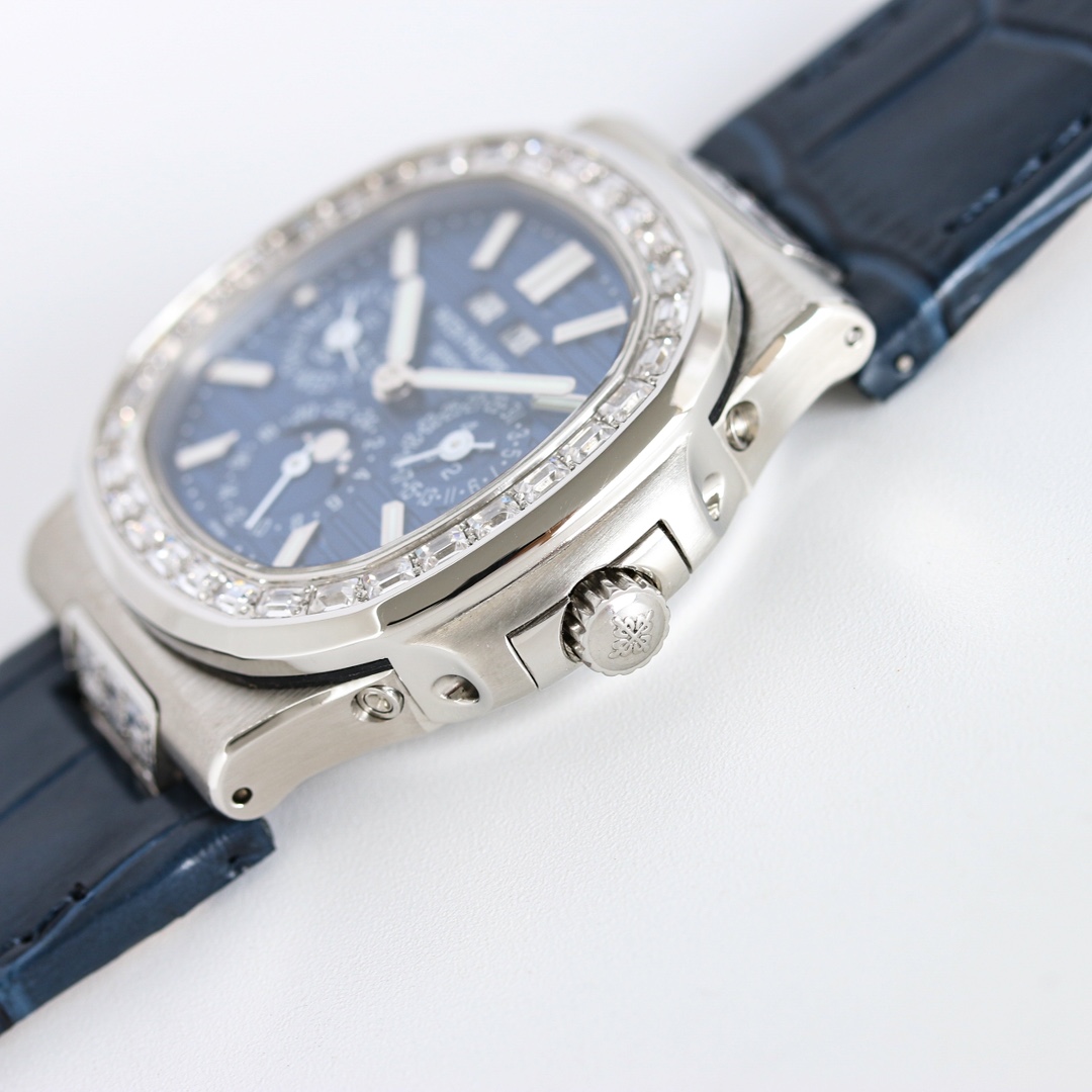 这款手表是AAAAA 1:1 质量 (非常棒). 使用了和原版一模一样的材料. 商标部分也保持了和百达翡丽/Patek Philippe一样. 图片拍摄是实物手表拍摄, 您所收到的实物保证和我们图片一模一样.