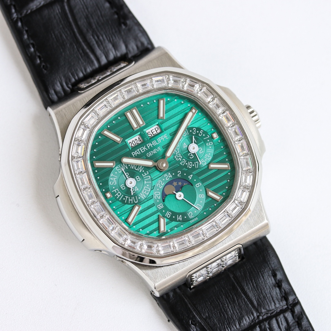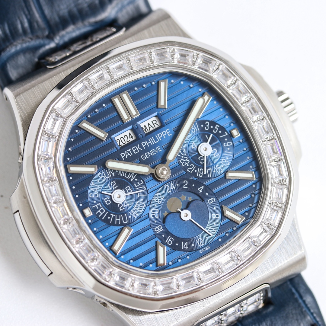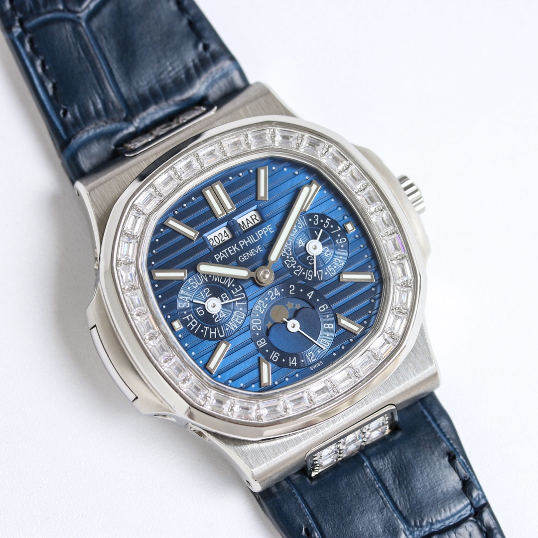 这款手表是AAAAA 1:1 质量 (非常棒). 使用了和原版一模一样的材料. 商标部分也保持了和百达翡丽/Patek Philippe一样. 图片拍摄是实物手表拍摄, 您所收到的实物保证和我们图片一模一样.