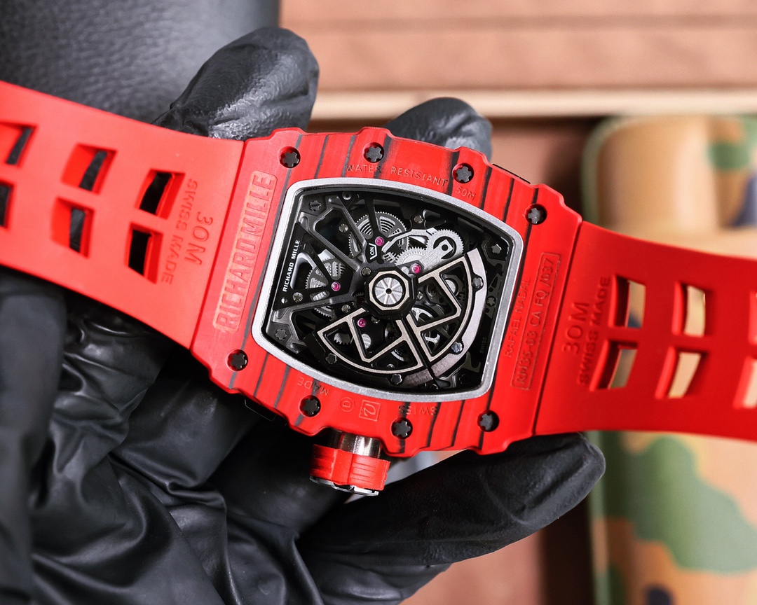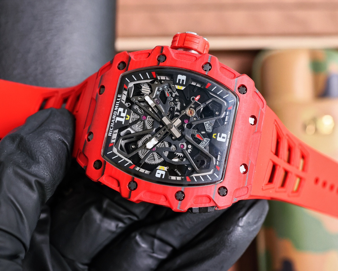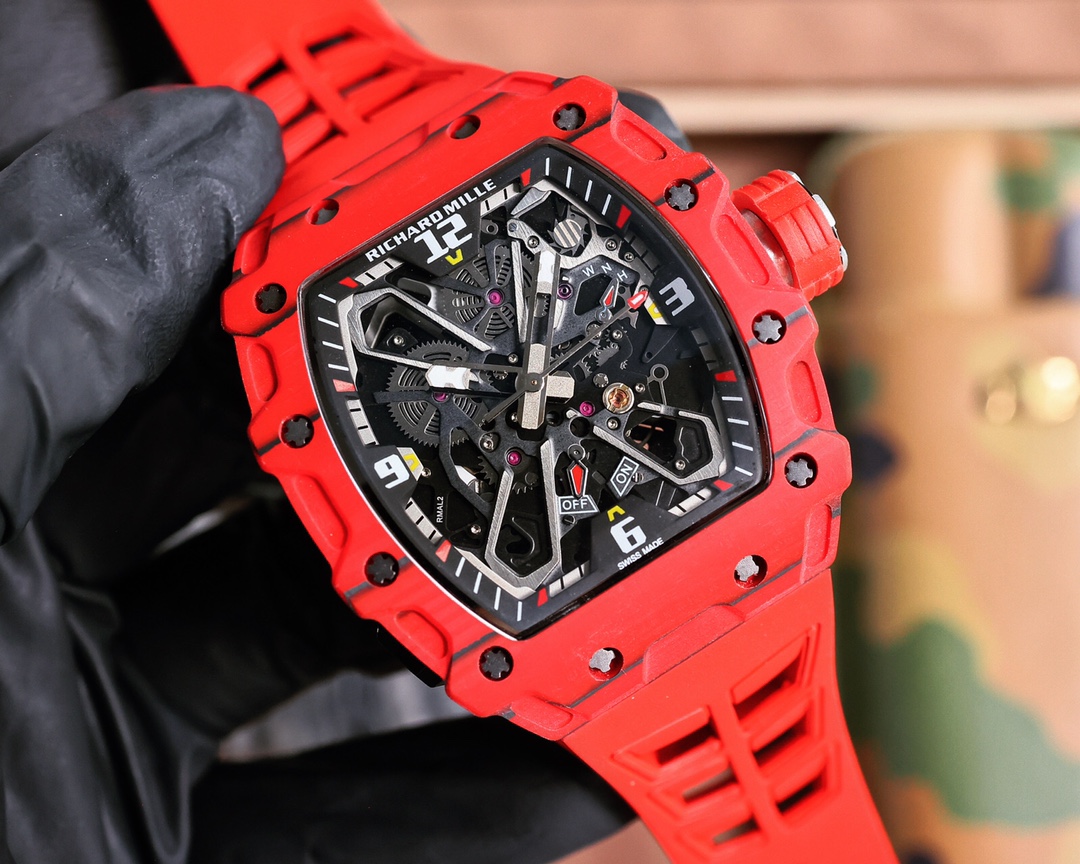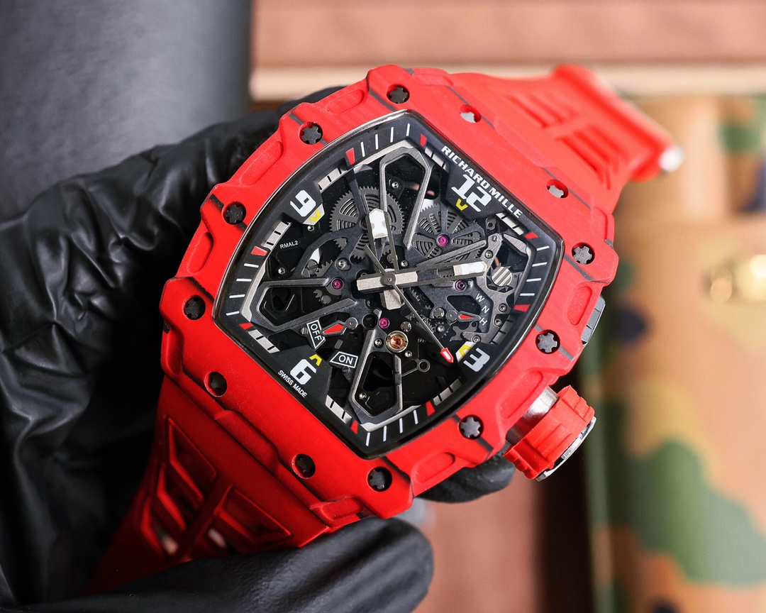 这款手表是AAAAA 1:1 质量 (非常棒). 使用了和原版一模一样的材料. 商标部分也保持了和理查德·米尔/Richard Mille一样. 图片拍摄是实物手表拍摄, 您所收到的实物保证和我们图片一模一样.