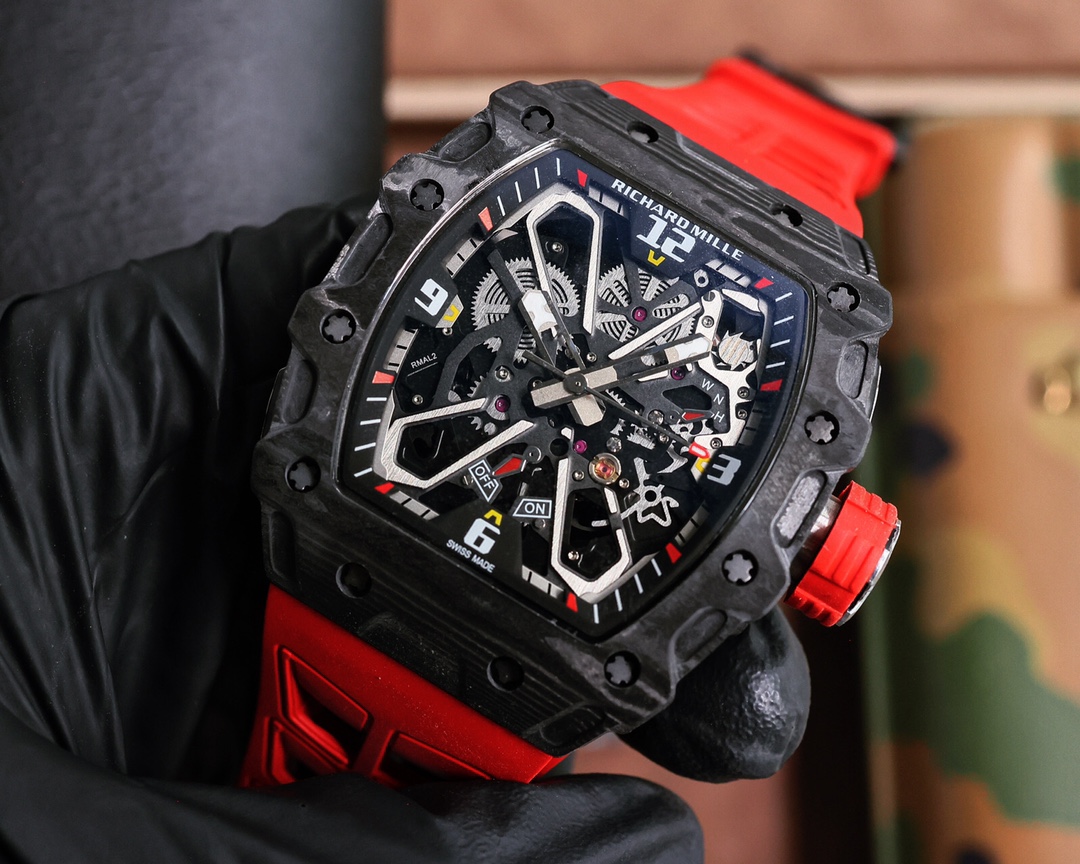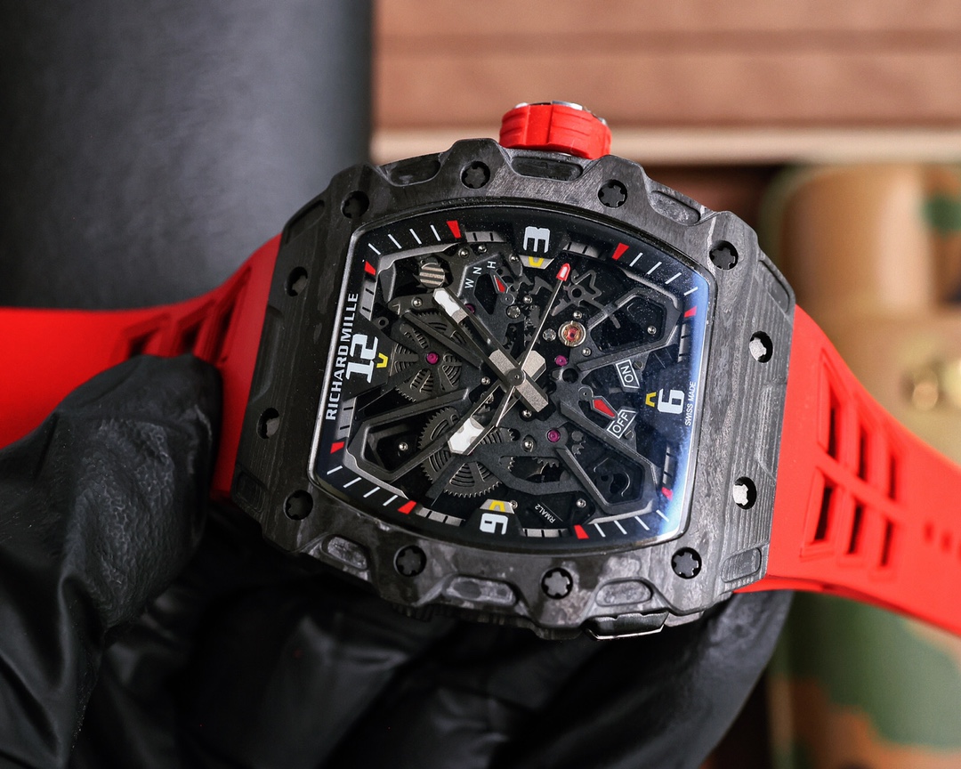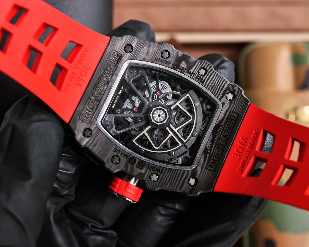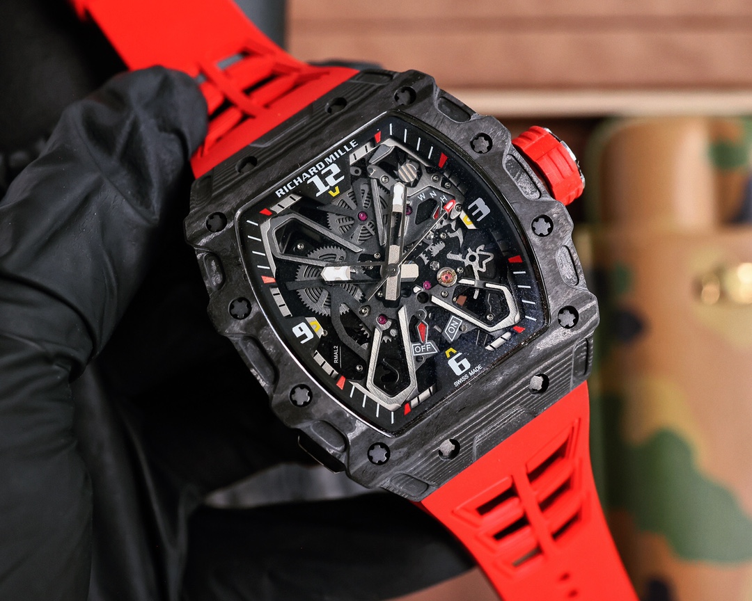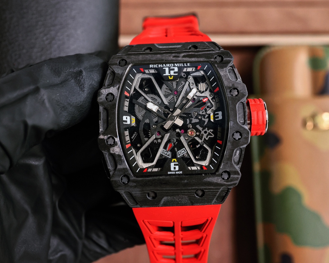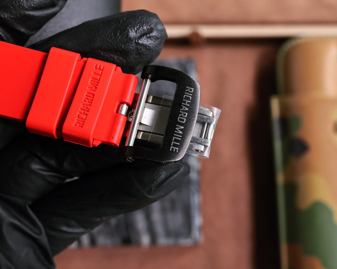 这款手表是AAAAA 1:1 质量 (非常棒). 使用了和原版一模一样的材料. 商标部分也保持了和理查德·米尔/Richard Mille一样. 图片拍摄是实物手表拍摄, 您所收到的实物保证和我们图片一模一样.