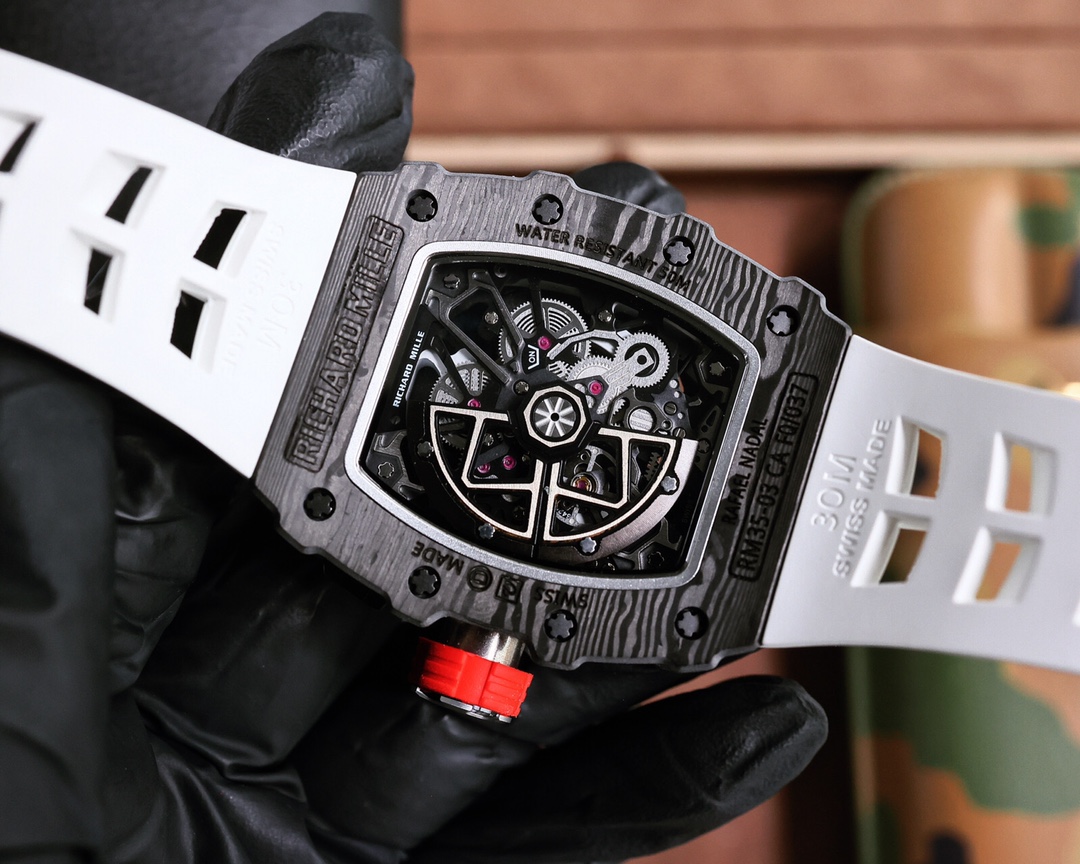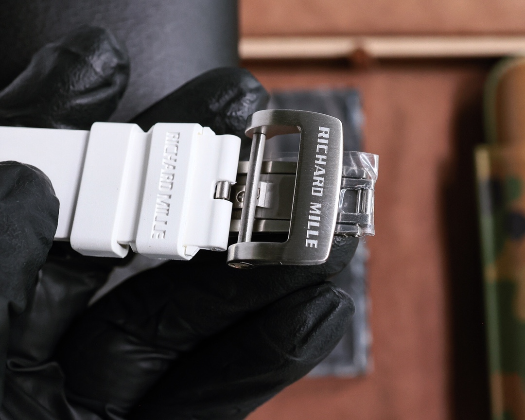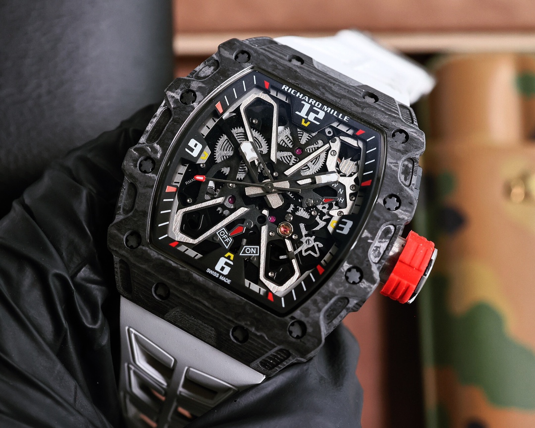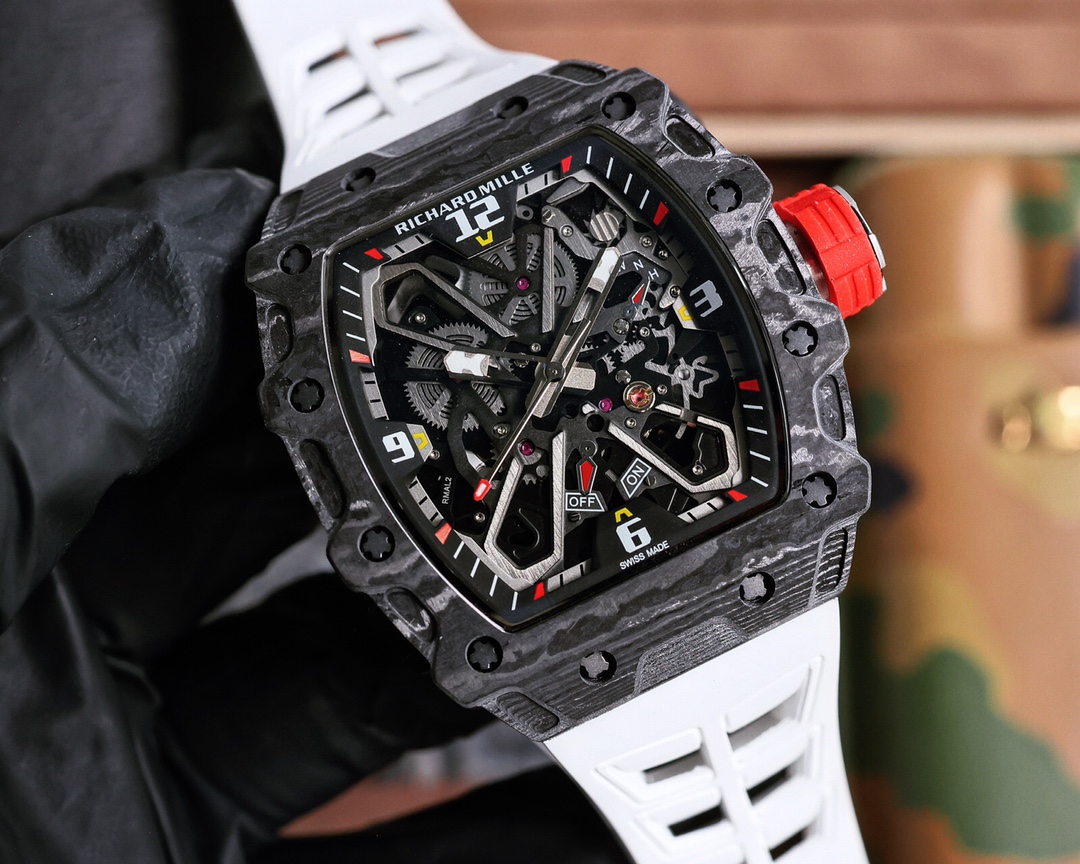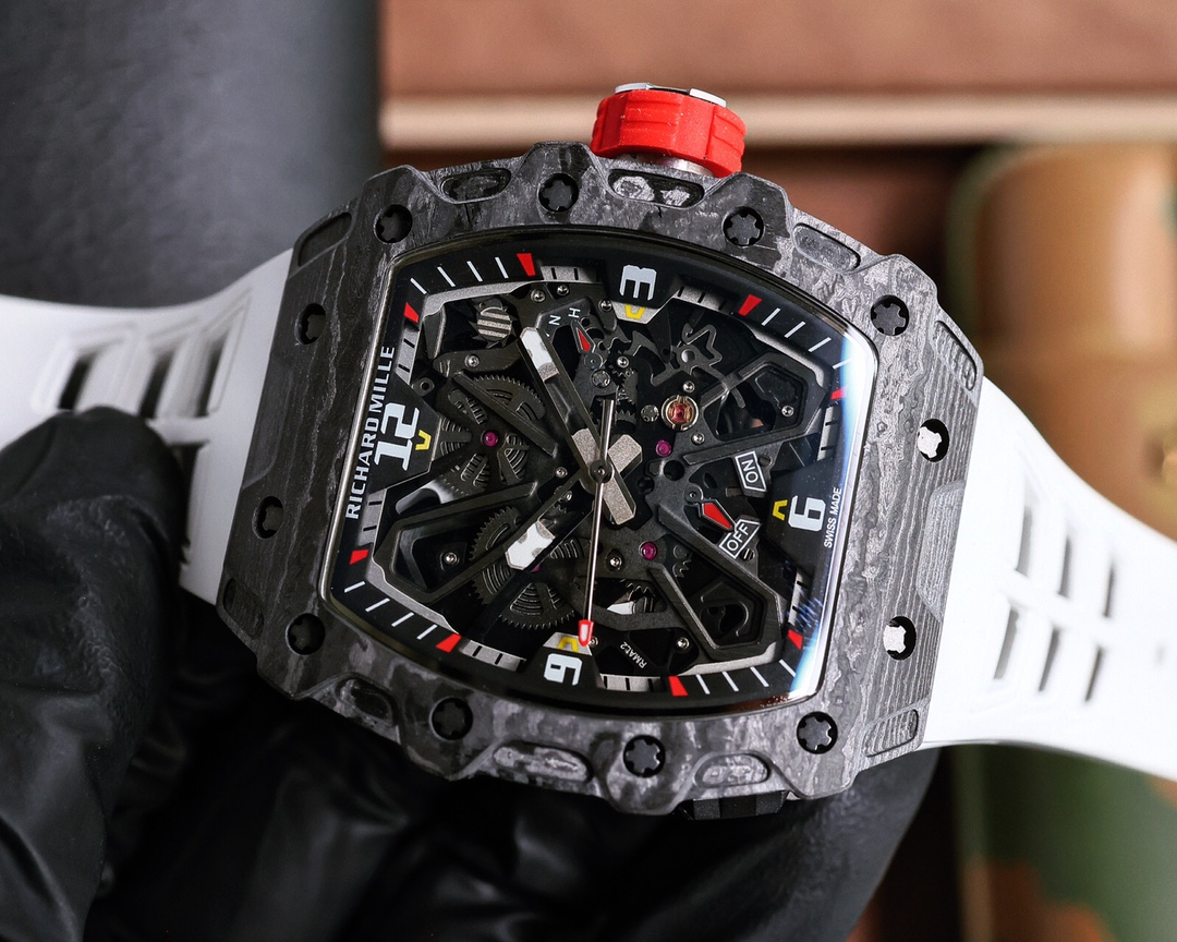 这款手表是AAAAA 1:1 质量 (非常棒). 使用了和原版一模一样的材料. 商标部分也保持了和理查德·米尔/Richard Mille一样. 图片拍摄是实物手表拍摄, 您所收到的实物保证和我们图片一模一样.