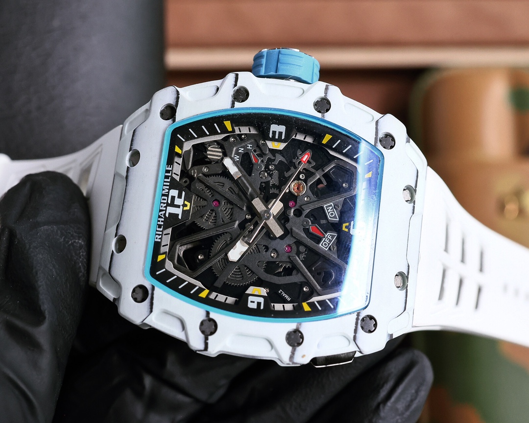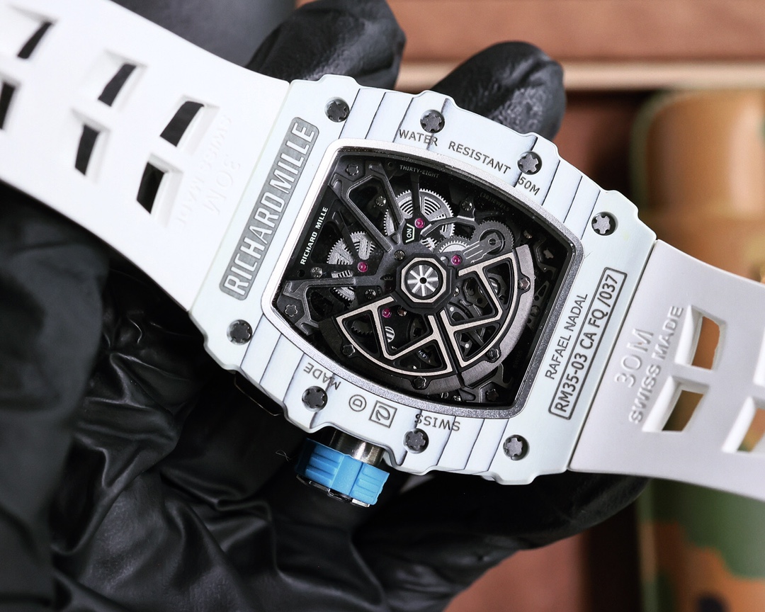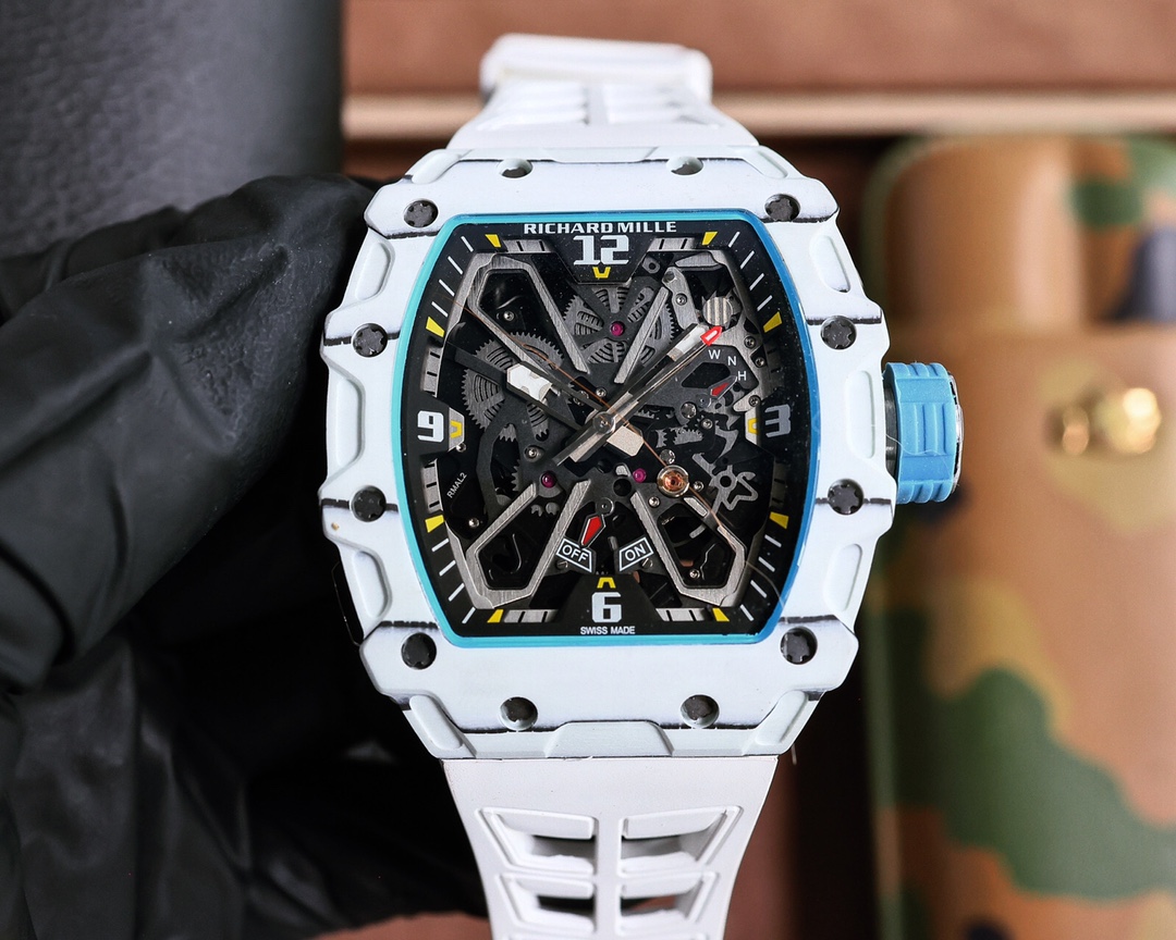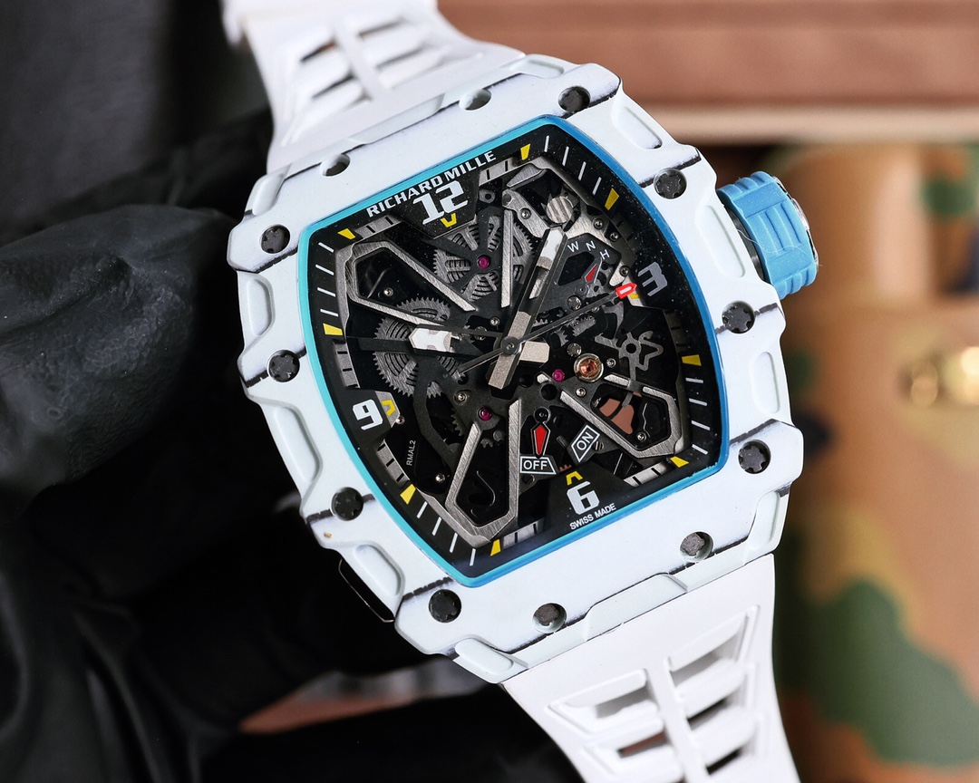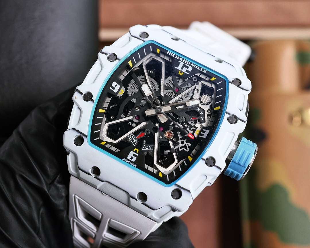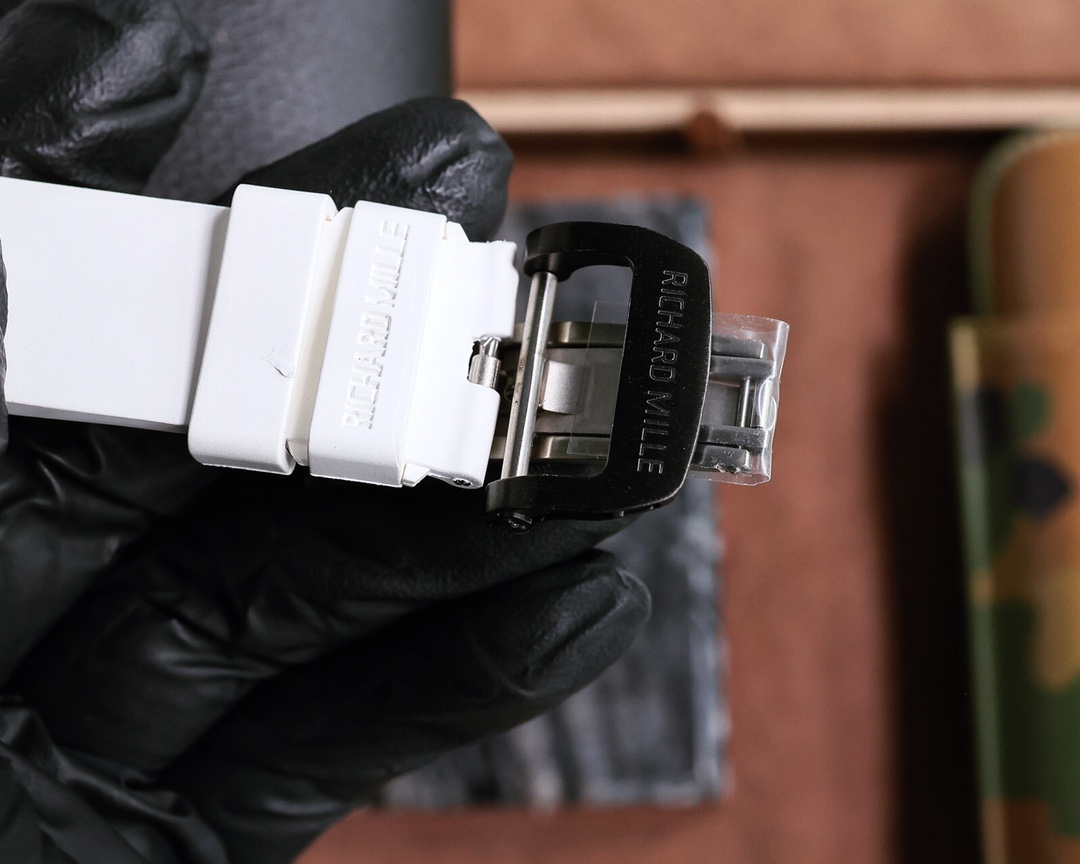 这款手表是AAAAA 1:1 质量 (非常棒). 使用了和原版一模一样的材料. 商标部分也保持了和理查德·米尔/Richard Mille一样. 图片拍摄是实物手表拍摄, 您所收到的实物保证和我们图片一模一样.