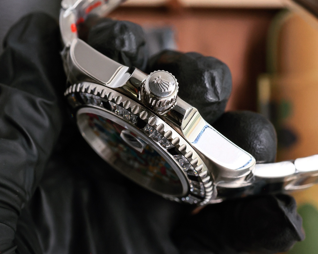 这款手表是AAAAA 1:1 质量 (非常棒). 使用了和原版一模一样的材料. 商标部分也保持了和劳力士/Rolex一样. 图片拍摄是实物手表拍摄, 您所收到的实物保证和我们图片一模一样.