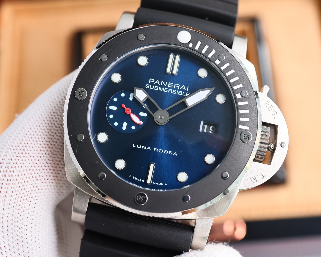 这款手表是AAAAA 1:1 质量 (非常棒). 使用了和原版一模一样的材料. 商标部分也保持了和沛纳海/Panerai一样. 图片拍摄是实物手表拍摄, 您所收到的实物保证和我们图片一模一样.