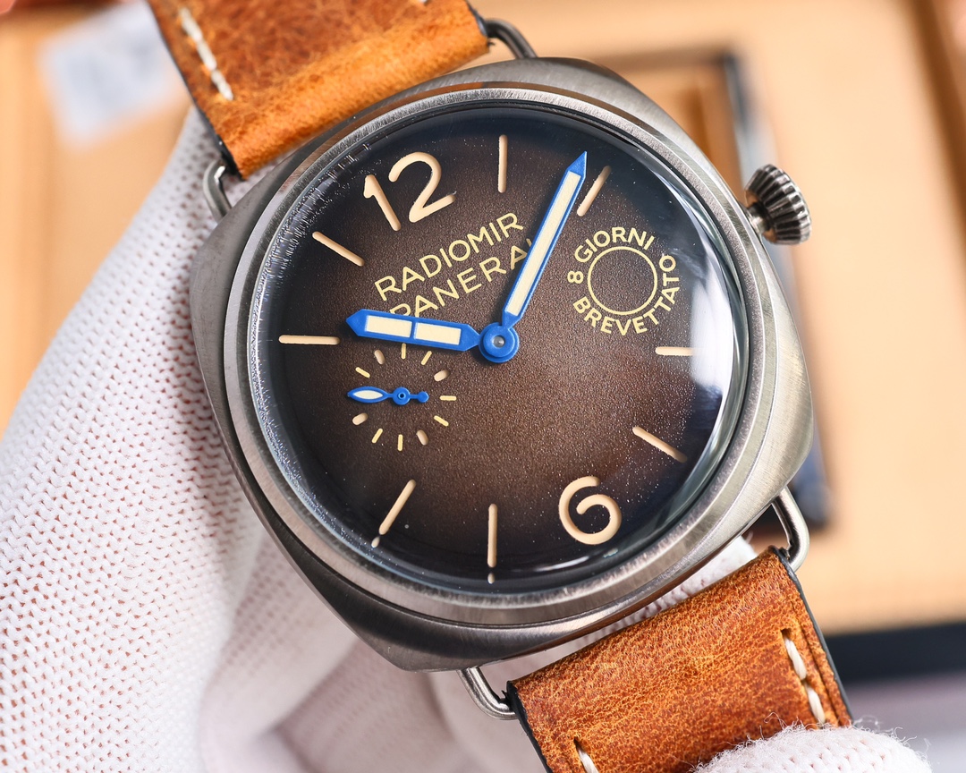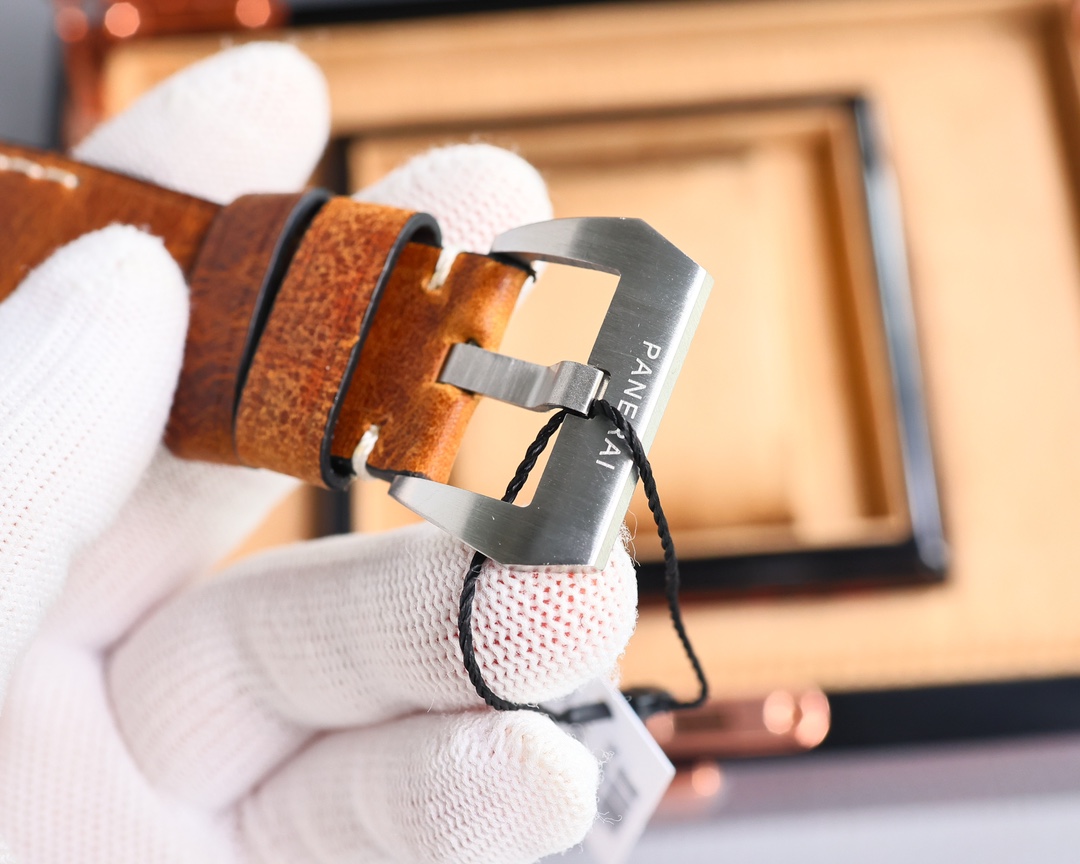 这款手表是AAAAA 1:1 质量 (非常棒). 使用了和原版一模一样的材料. 商标部分也保持了和沛纳海/Panerai一样. 图片拍摄是实物手表拍摄, 您所收到的实物保证和我们图片一模一样.