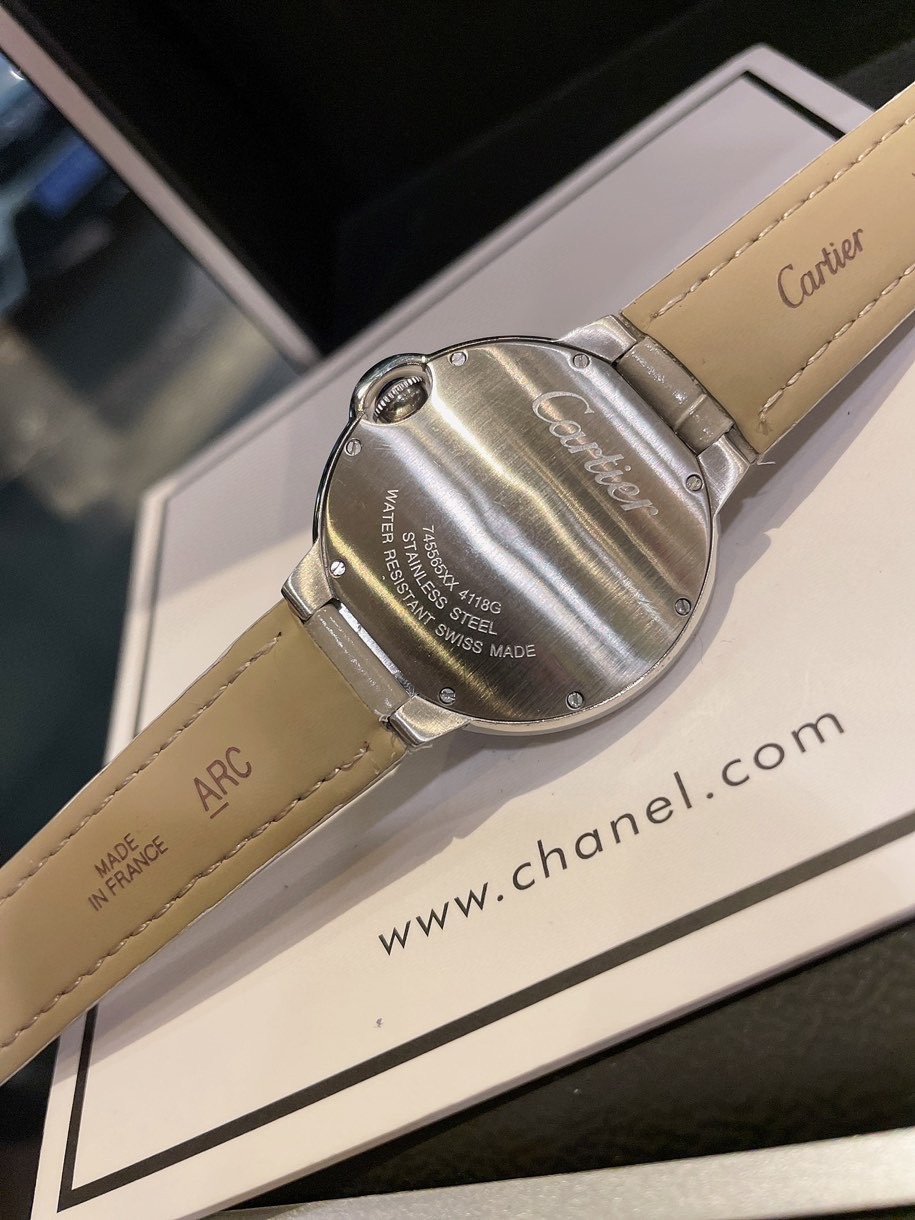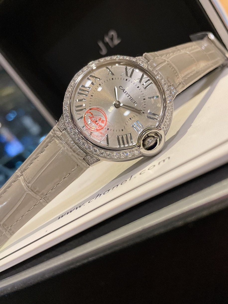 这款手表是AAAAA 1:1 质量 (非常棒). 使用了和原版一模一样的材料. 商标部分也保持了和卡地亚/Cartier一样. 图片拍摄是实物手表拍摄, 您所收到的实物保证和我们图片一模一样.