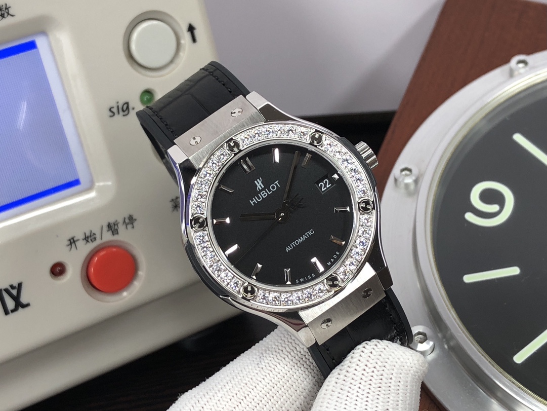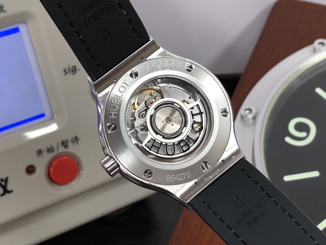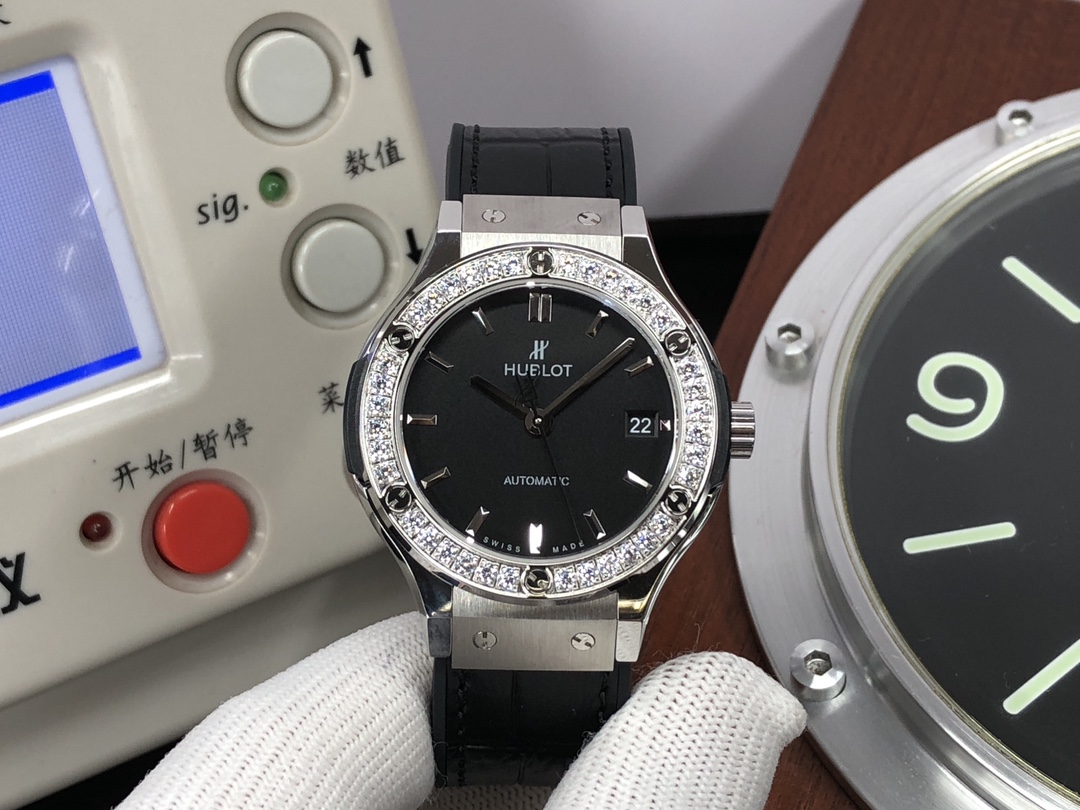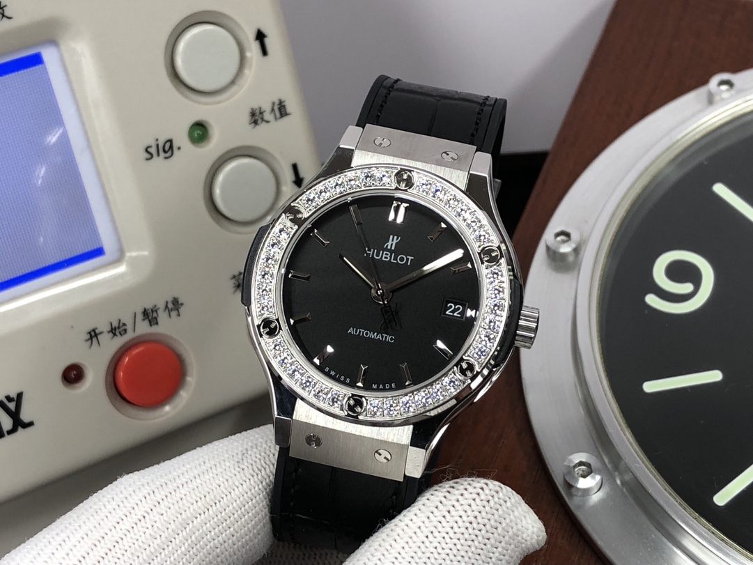 这款手表是AAAAA 1:1 质量 (非常棒). 使用了和原版一模一样的材料. 商标部分也保持了和Hublot一样. 图片拍摄是实物手表拍摄, 您所收到的实物保证和我们图片一模一样.