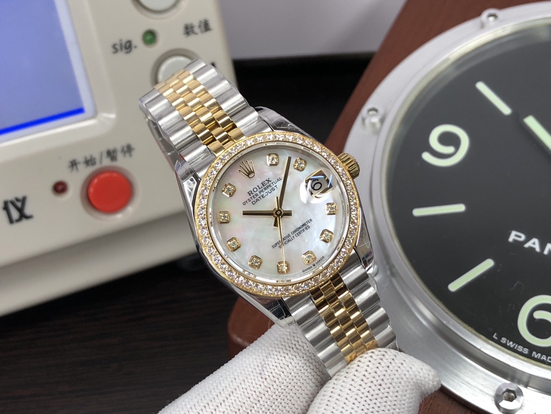 这款手表是AAAAA 1:1 质量 (非常棒). 使用了和原版一模一样的材料. 商标部分也保持了和劳力士/Rolex一样. 图片拍摄是实物手表拍摄, 您所收到的实物保证和我们图片一模一样.