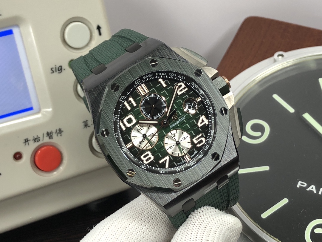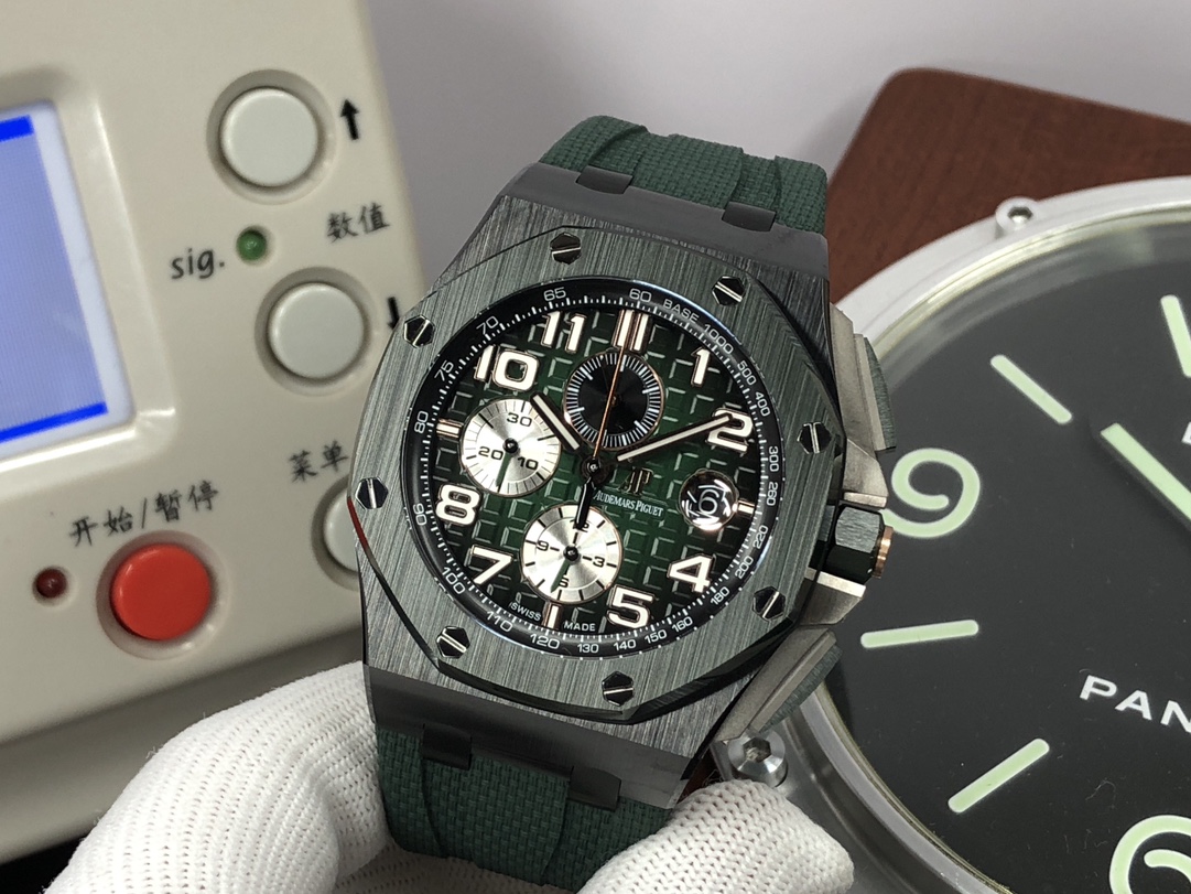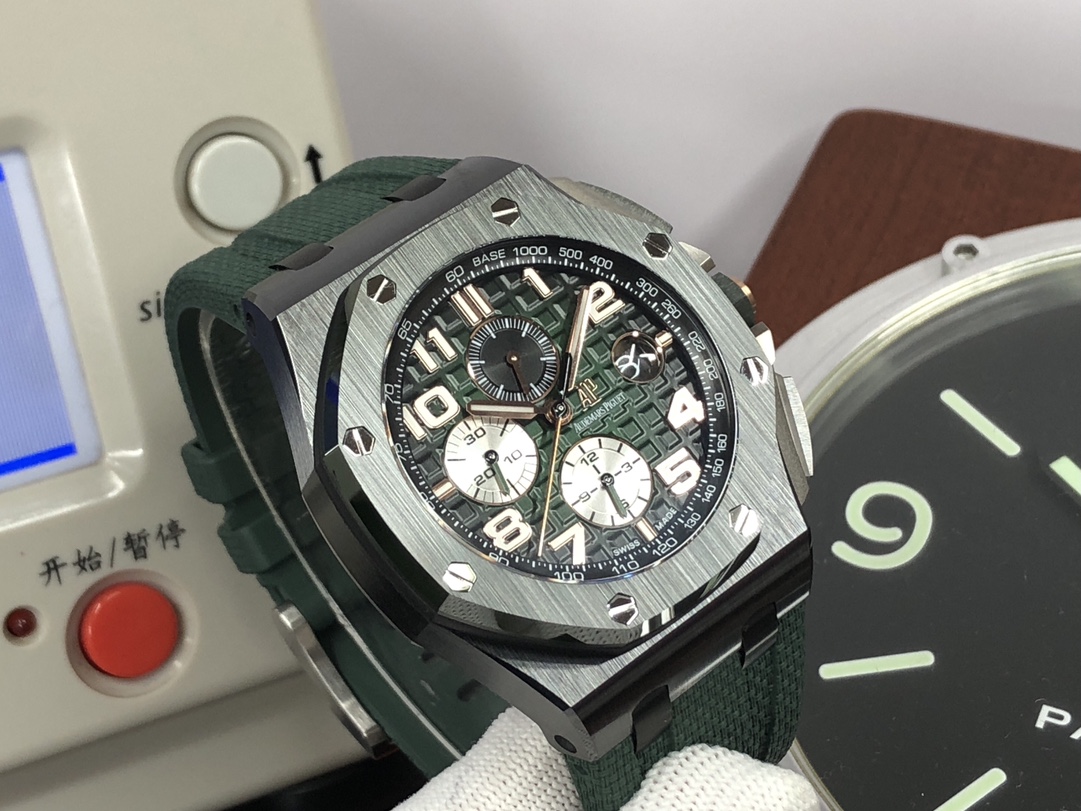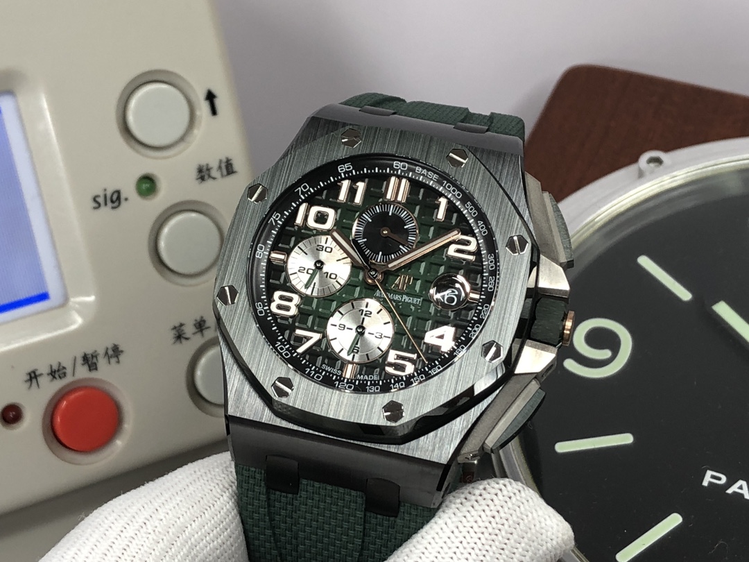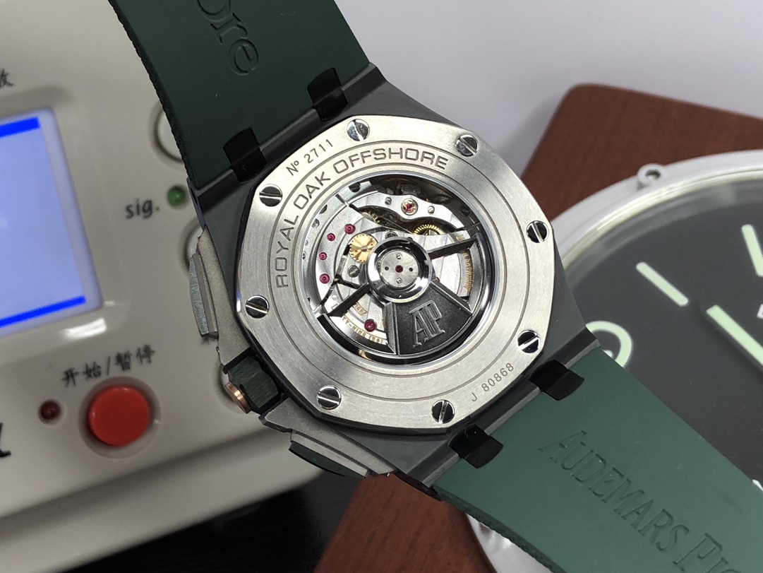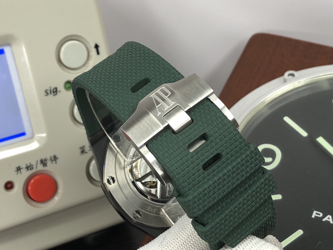 这款手表是AAAAA 1:1 质量 (非常棒). 使用了和原版一模一样的材料. 商标部分也保持了和爱彼/Audemars Piguet一样. 图片拍摄是实物手表拍摄, 您所收到的实物保证和我们图片一模一样.
