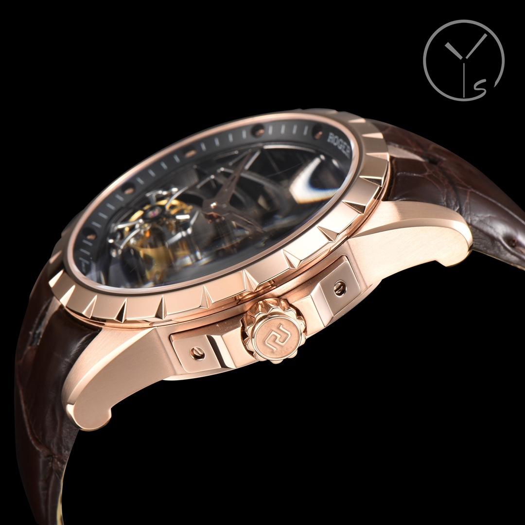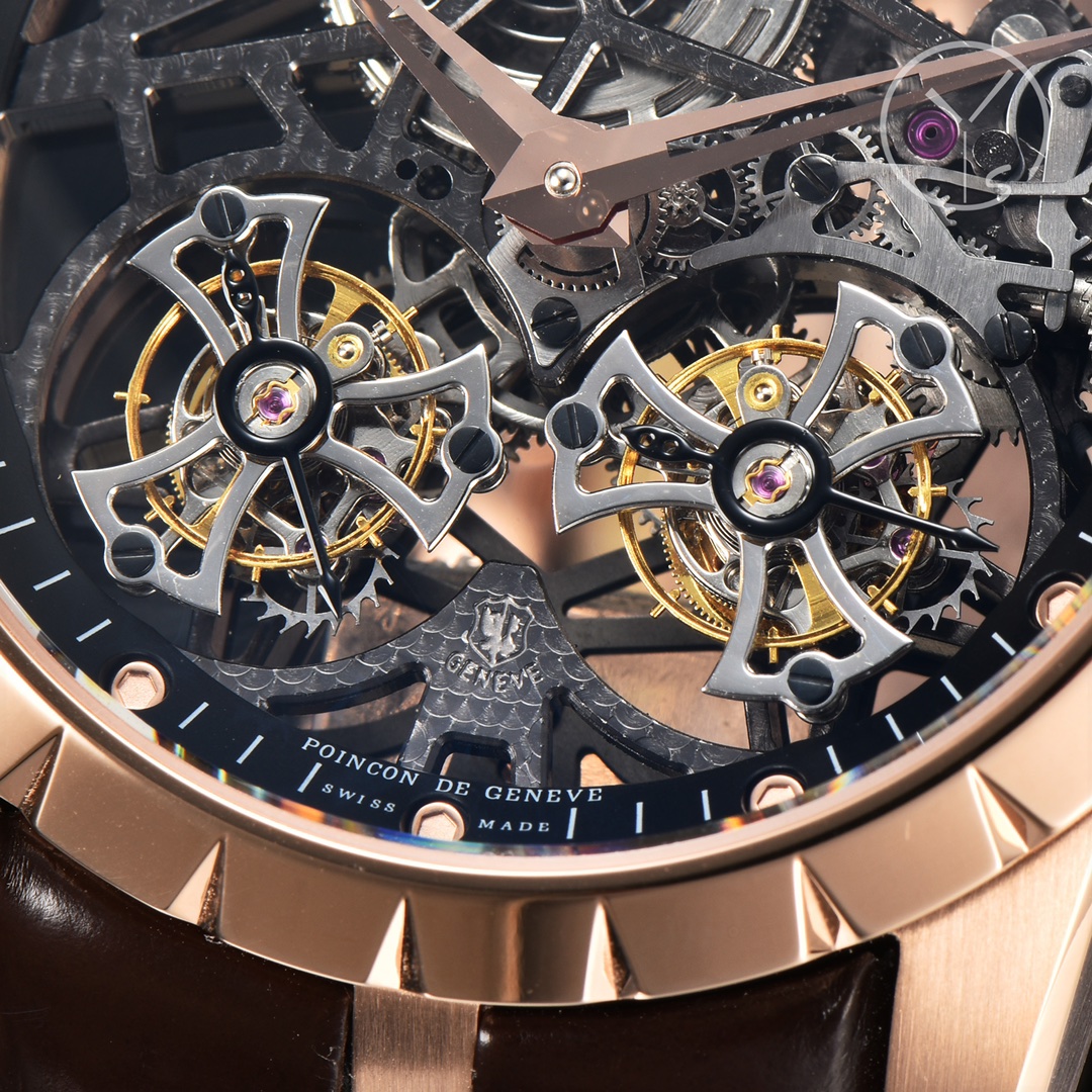 这款手表是AAAAA 1:1 质量 (非常棒). 使用了和原版一模一样的材料. 商标部分也保持了和Roger Dubuis一样. 图片拍摄是实物手表拍摄, 您所收到的实物保证和我们图片一模一样.
