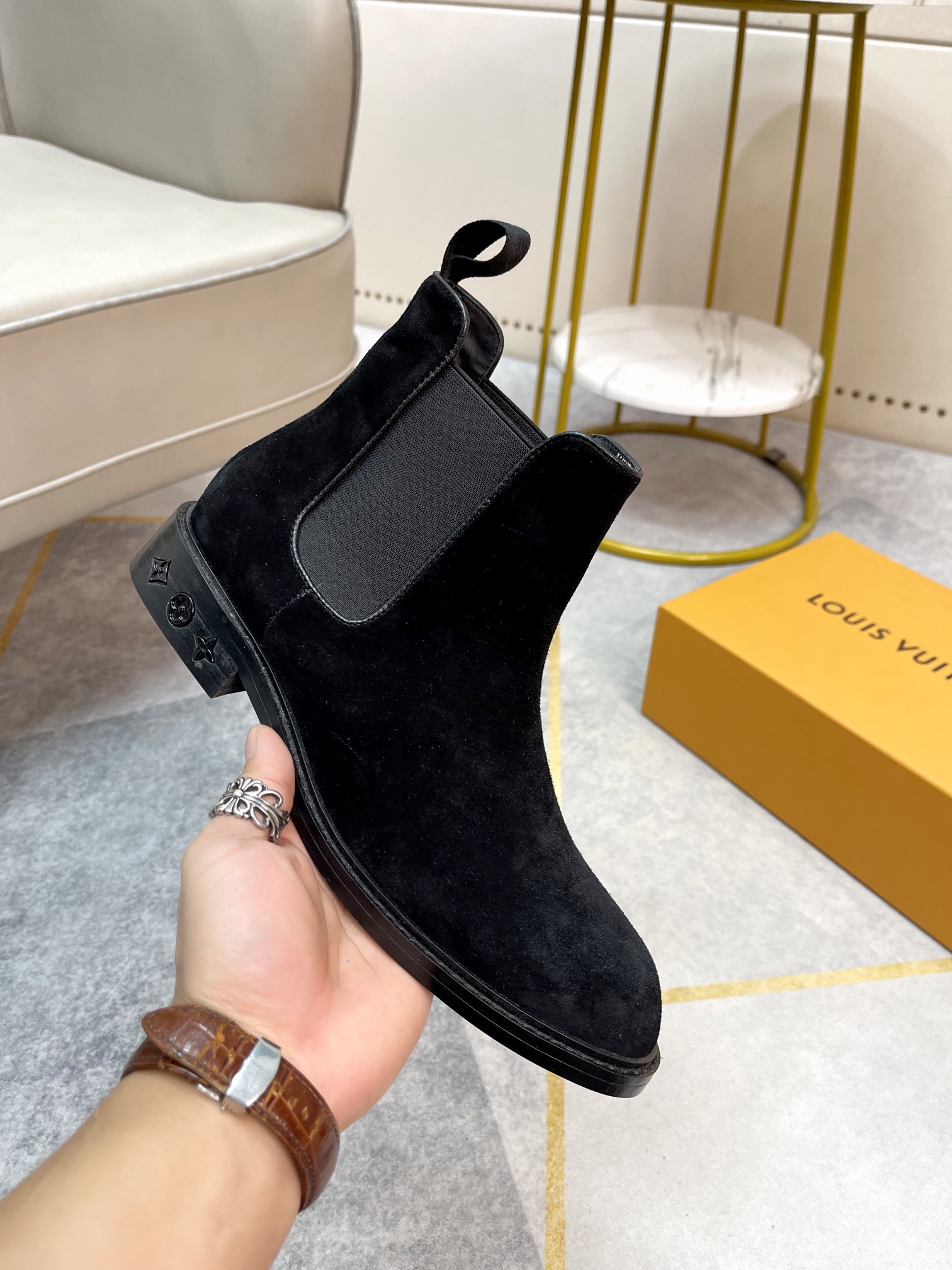 这款鞋子是AAAAA 1:1 质量 (非常棒). 使用了和原版一模一样的材料. 商标部分也保持了和路易威登/Louis Vuitton一样. 图片拍摄是实物鞋子拍摄, 您所收到的实物保证和我们图片一模一样.