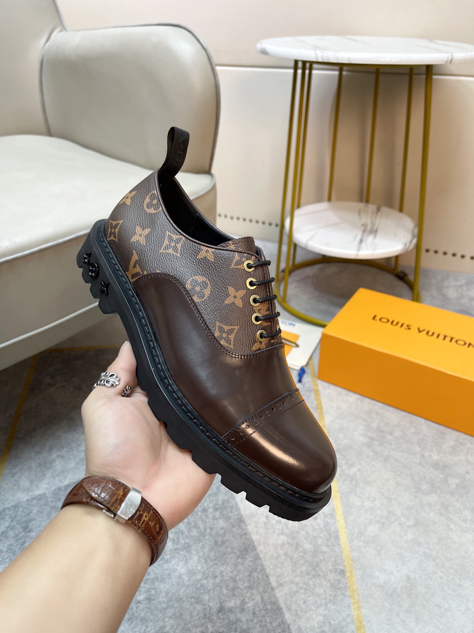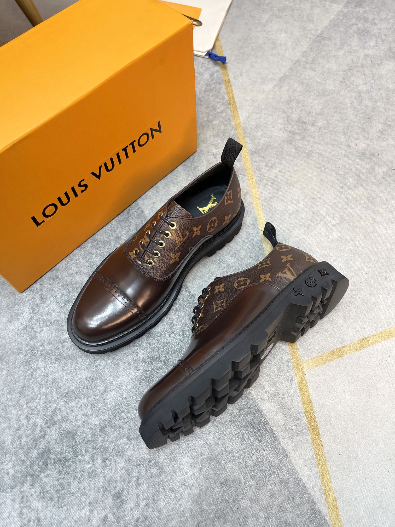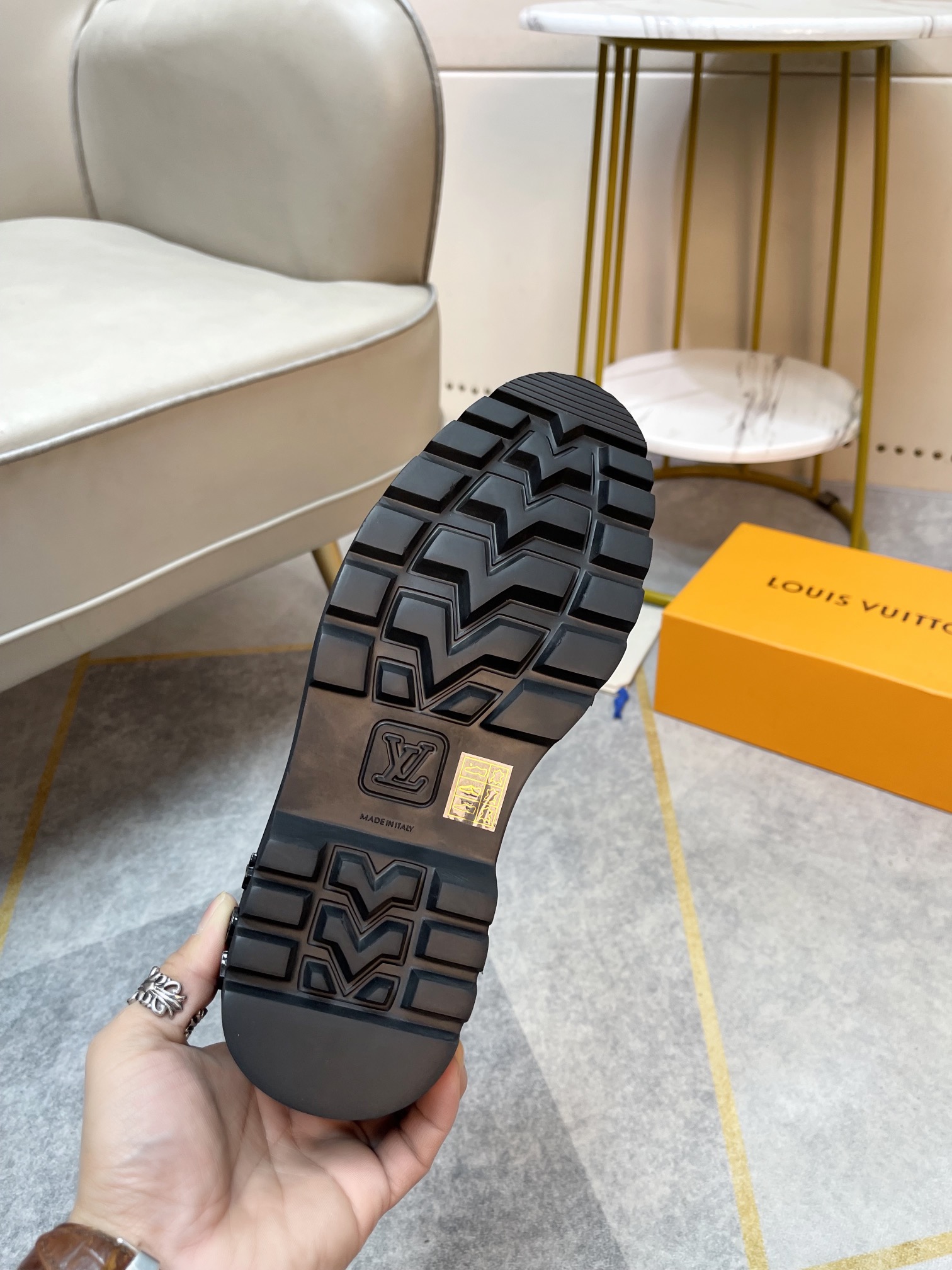 这款鞋子是AAAAA 1:1 质量 (非常棒). 使用了和原版一模一样的材料. 商标部分也保持了和路易威登/Louis Vuitton一样. 图片拍摄是实物鞋子拍摄, 您所收到的实物保证和我们图片一模一样.