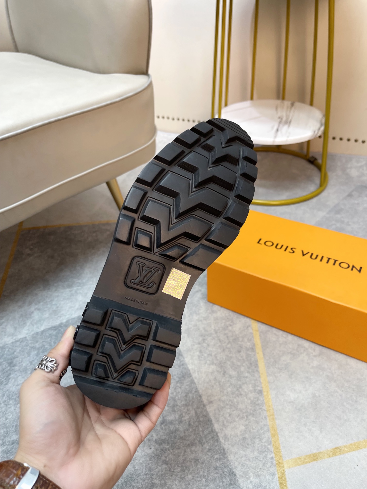这款鞋子是AAAAA 1:1 质量 (非常棒). 使用了和原版一模一样的材料. 商标部分也保持了和路易威登/Louis Vuitton一样. 图片拍摄是实物鞋子拍摄, 您所收到的实物保证和我们图片一模一样.