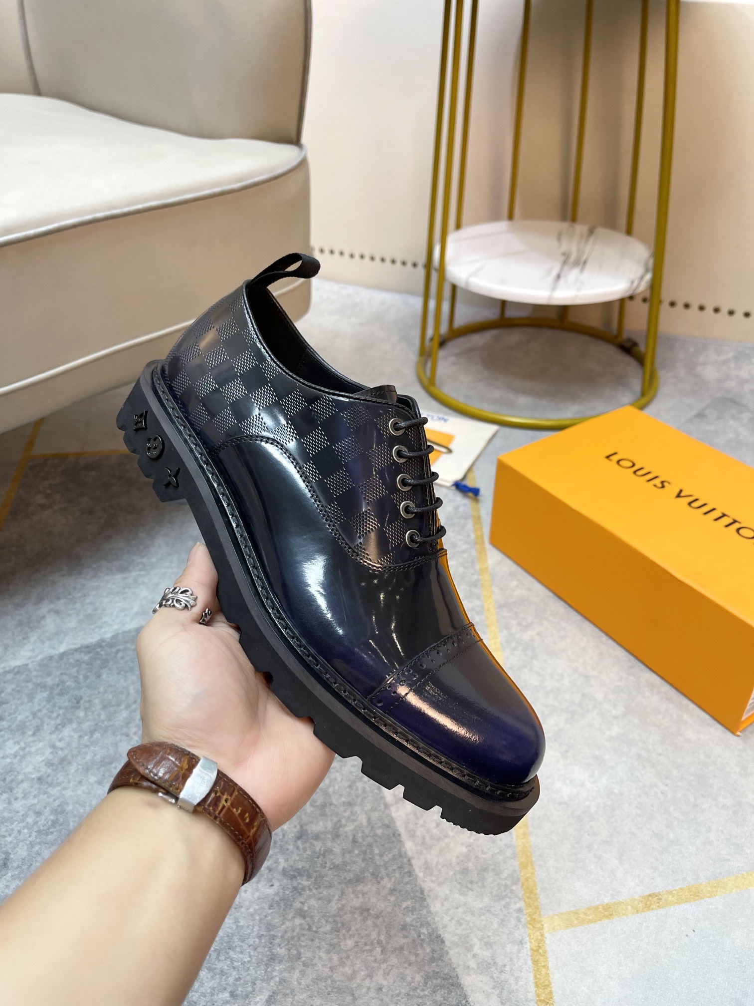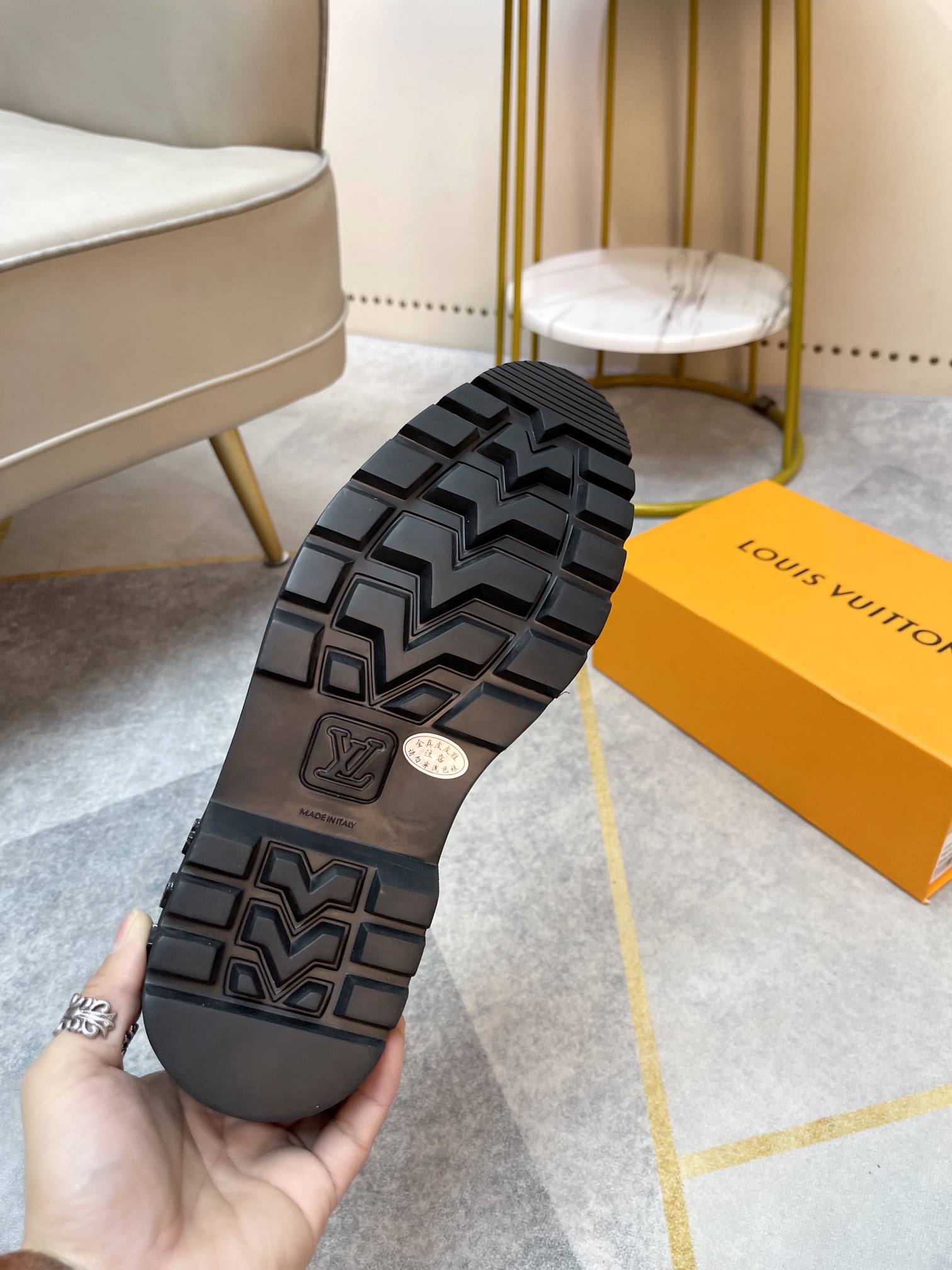这款鞋子是AAAAA 1:1 质量 (非常棒). 使用了和原版一模一样的材料. 商标部分也保持了和路易威登/Louis Vuitton一样. 图片拍摄是实物鞋子拍摄, 您所收到的实物保证和我们图片一模一样.