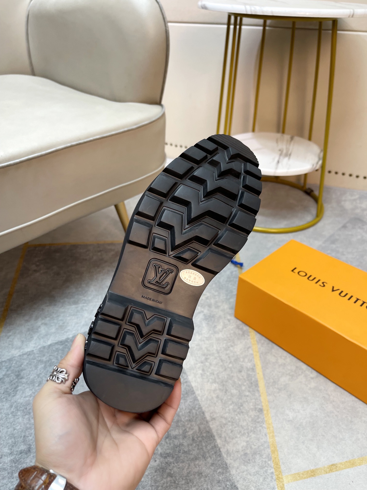 这款鞋子是AAAAA 1:1 质量 (非常棒). 使用了和原版一模一样的材料. 商标部分也保持了和路易威登/Louis Vuitton一样. 图片拍摄是实物鞋子拍摄, 您所收到的实物保证和我们图片一模一样.