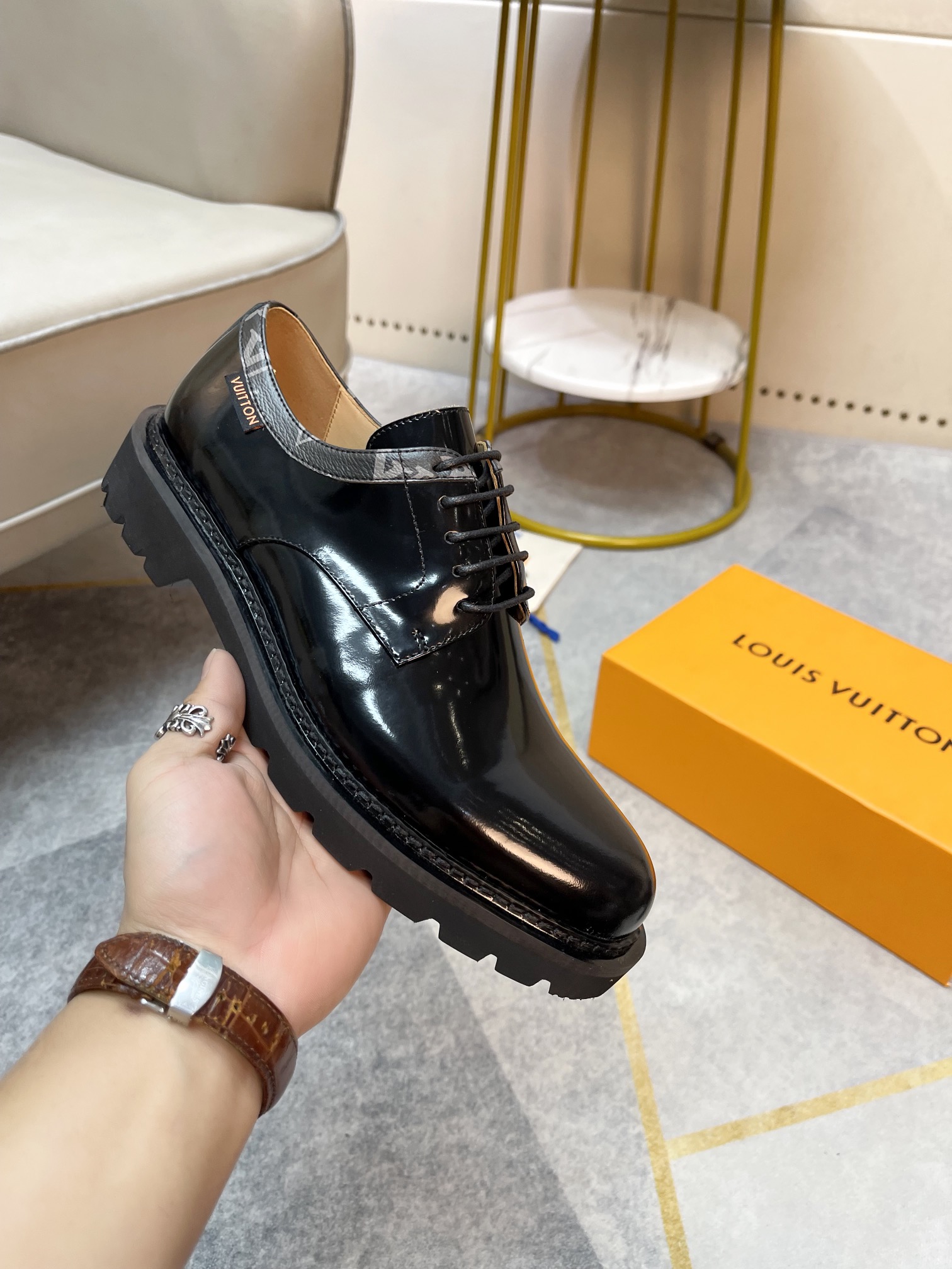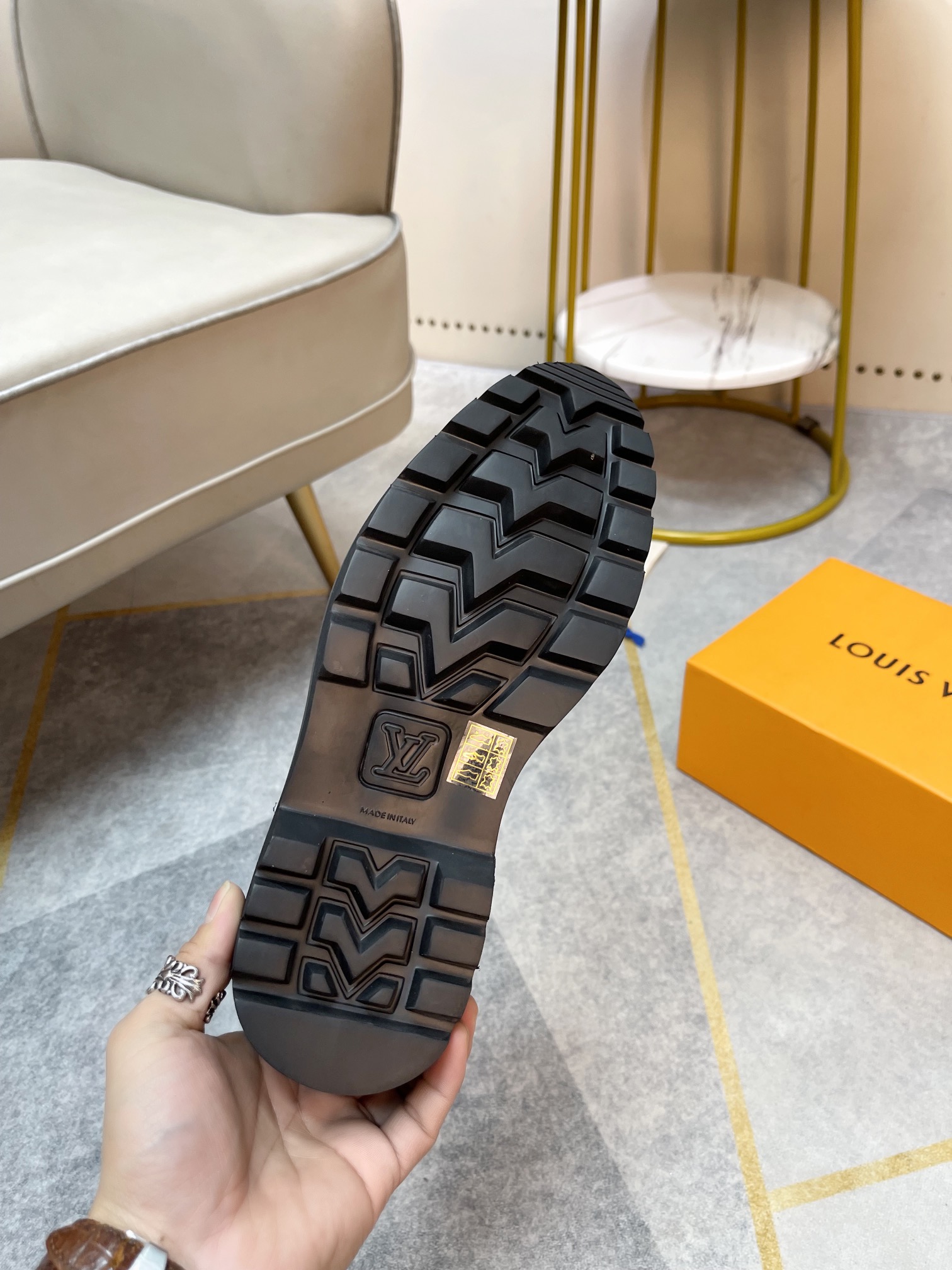 这款鞋子是AAAAA 1:1 质量 (非常棒). 使用了和原版一模一样的材料. 商标部分也保持了和路易威登/Louis Vuitton一样. 图片拍摄是实物鞋子拍摄, 您所收到的实物保证和我们图片一模一样.
