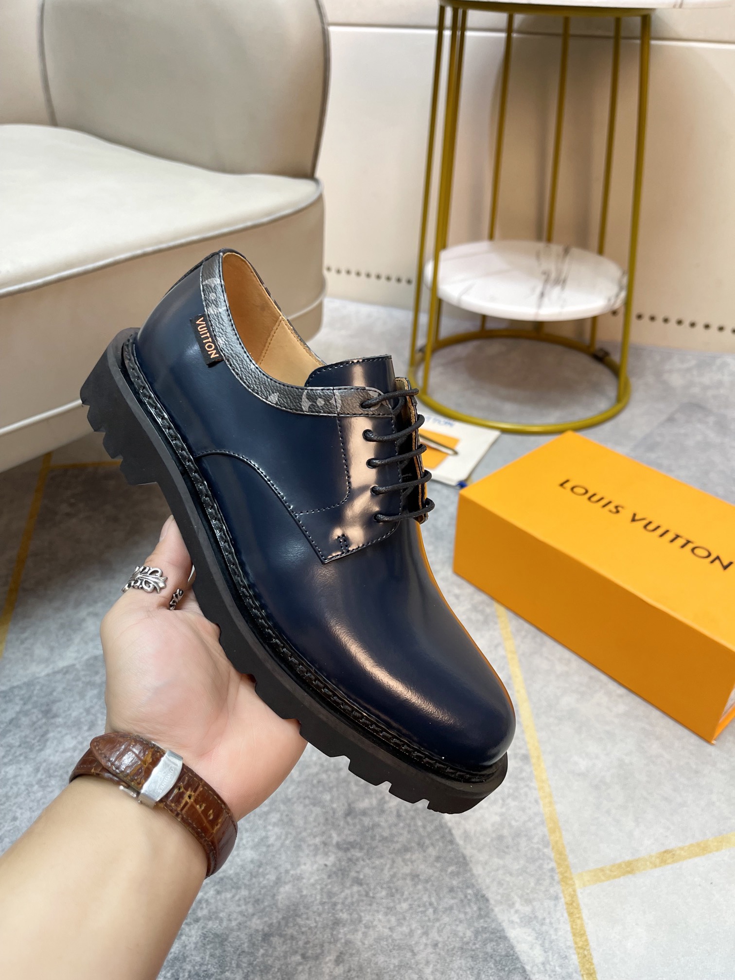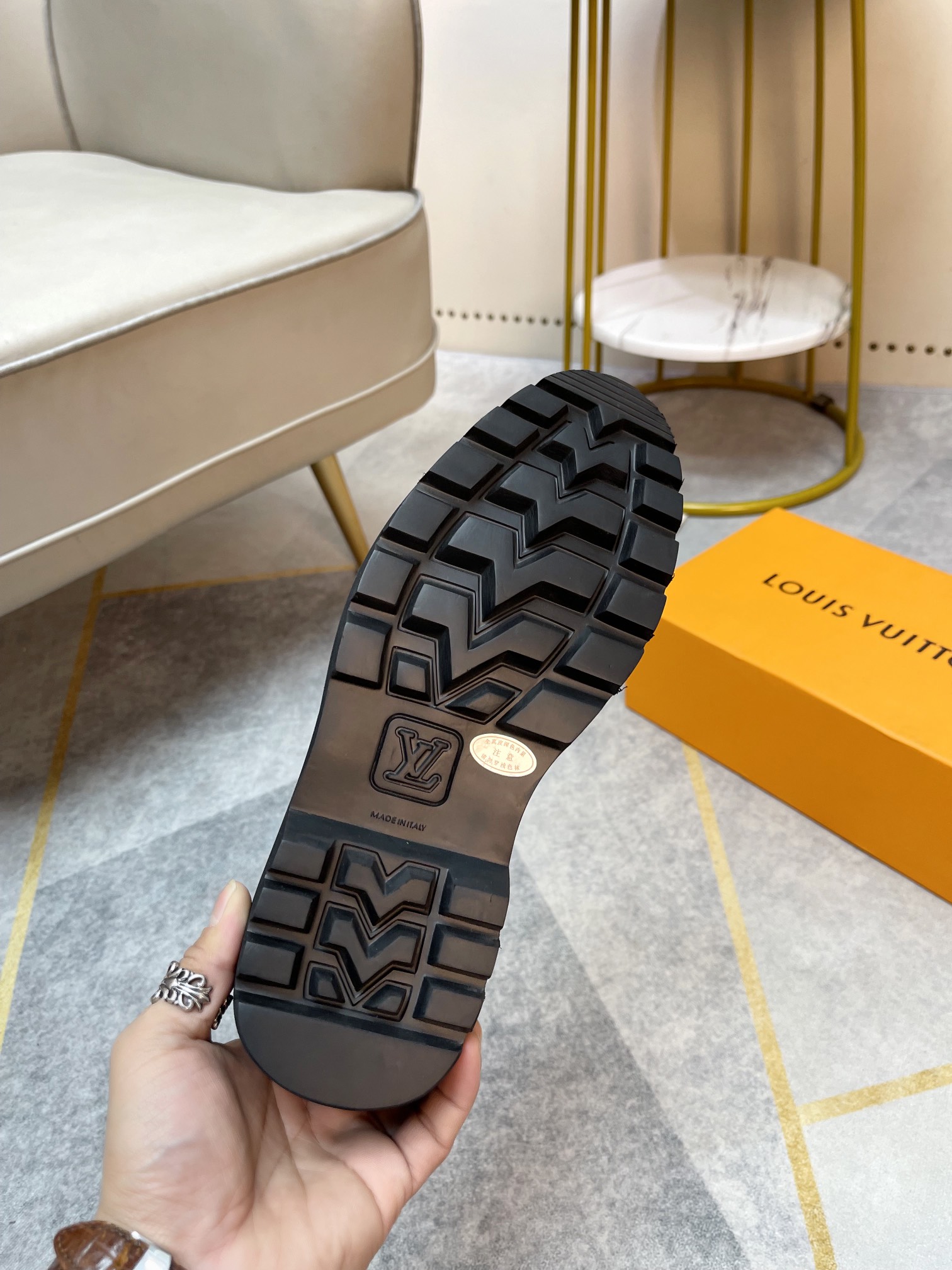 这款鞋子是AAAAA 1:1 质量 (非常棒). 使用了和原版一模一样的材料. 商标部分也保持了和路易威登/Louis Vuitton一样. 图片拍摄是实物鞋子拍摄, 您所收到的实物保证和我们图片一模一样.