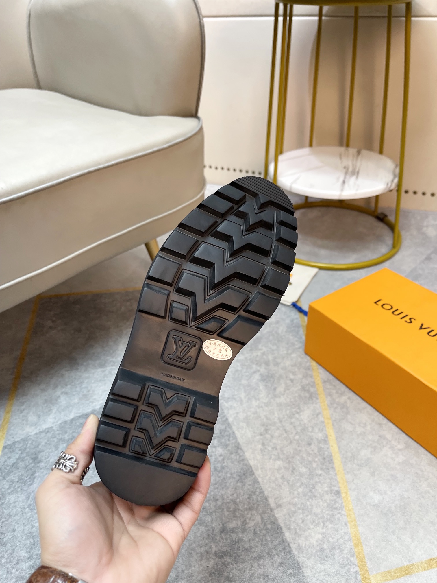 这款鞋子是AAAAA 1:1 质量 (非常棒). 使用了和原版一模一样的材料. 商标部分也保持了和路易威登/Louis Vuitton一样. 图片拍摄是实物鞋子拍摄, 您所收到的实物保证和我们图片一模一样.