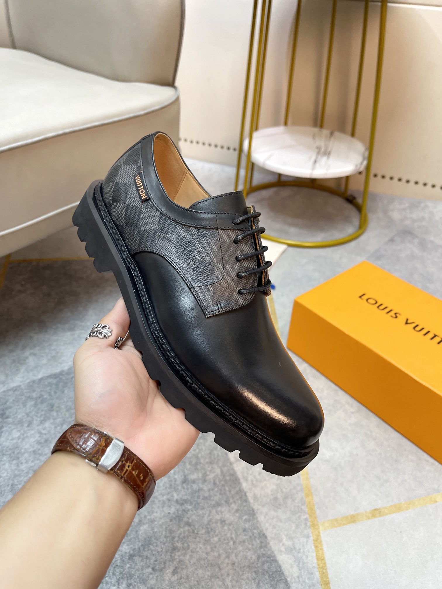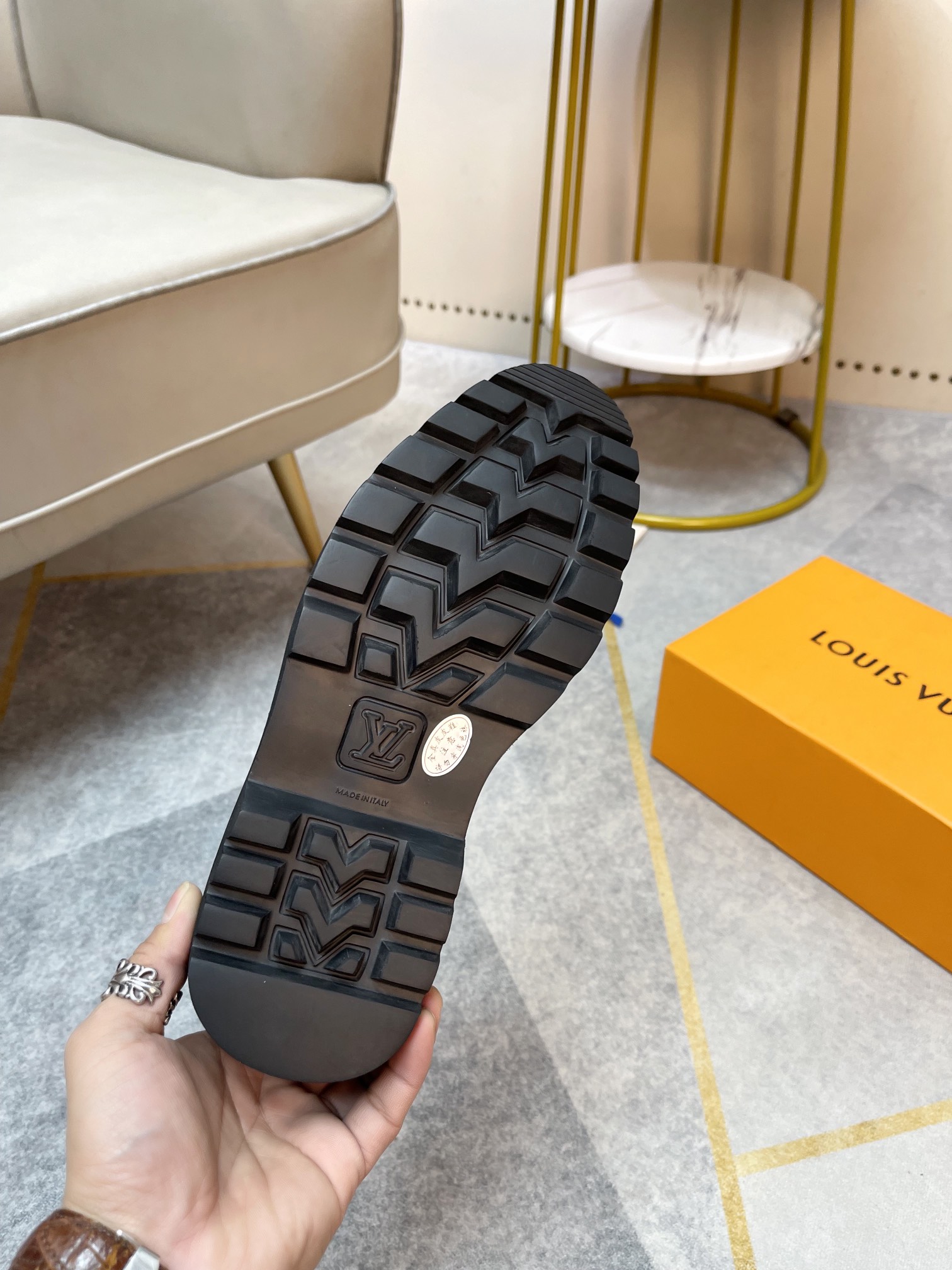 这款鞋子是AAAAA 1:1 质量 (非常棒). 使用了和原版一模一样的材料. 商标部分也保持了和路易威登/Louis Vuitton一样. 图片拍摄是实物鞋子拍摄, 您所收到的实物保证和我们图片一模一样.