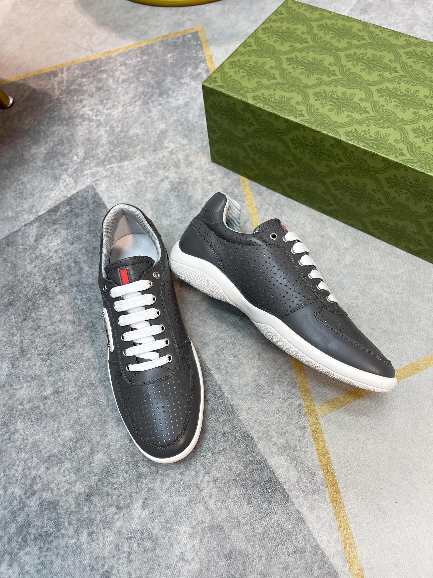 这款鞋子是AAAAA 1:1 质量 (非常棒). 使用了和原版一模一样的材料. 商标部分也保持了和普拉达/Prada一样. 图片拍摄是实物鞋子拍摄, 您所收到的实物保证和我们图片一模一样.