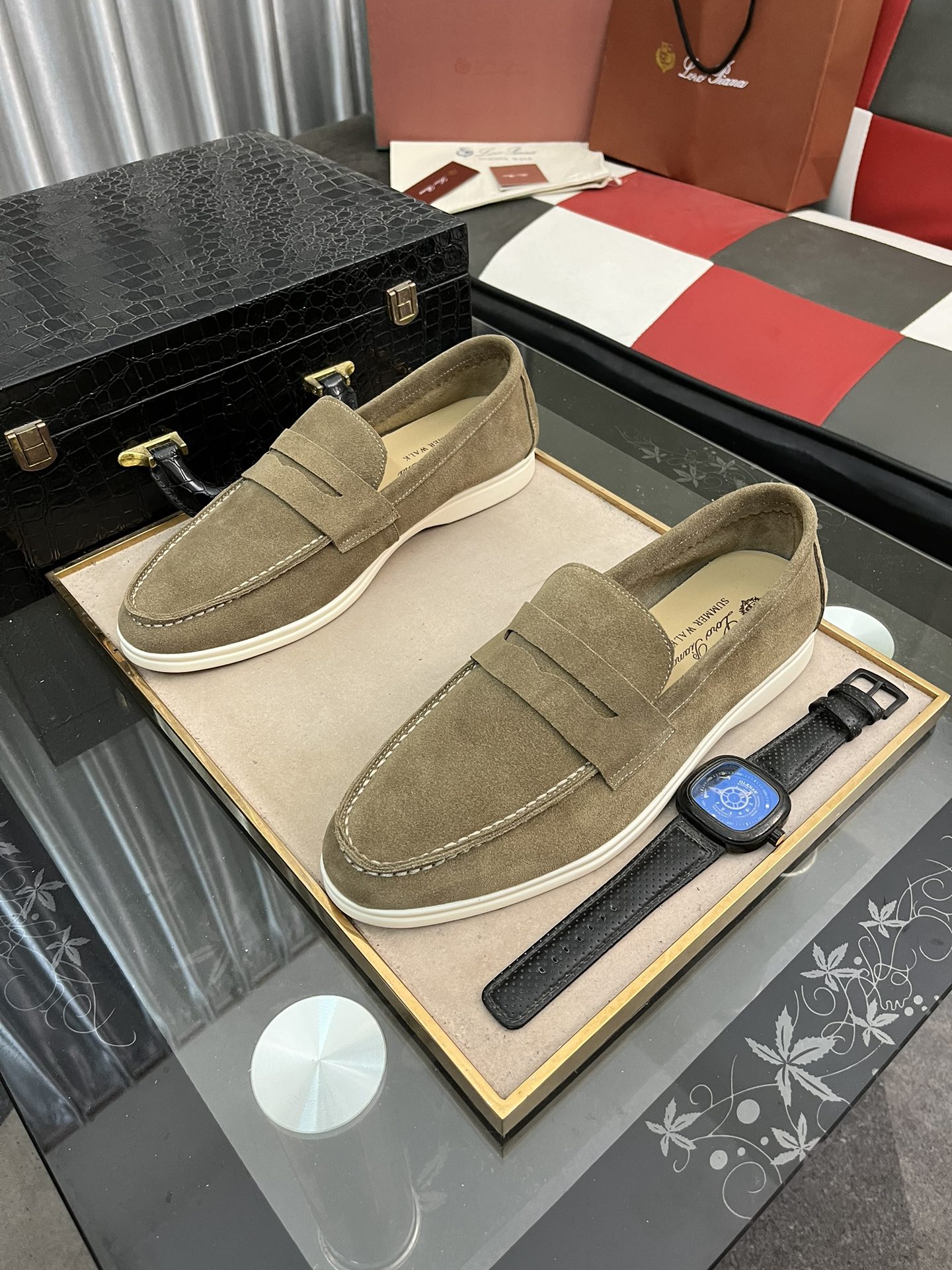 这款鞋子是AAAAA 1:1 质量 (非常棒). 使用了和原版一模一样的材料. 商标部分也保持了和洛罗皮亚纳/Loro Piana一样. 图片拍摄是实物鞋子拍摄, 您所收到的实物保证和我们图片一模一样.