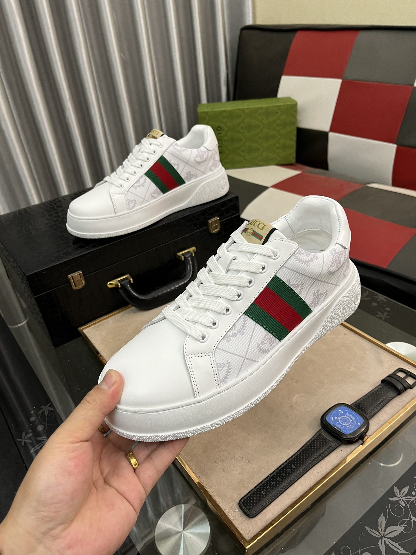 这款鞋子是AAAAA 1:1 质量 (非常棒). 使用了和原版一模一样的材料. 商标部分也保持了和古奇/Gucci一样. 图片拍摄是实物鞋子拍摄, 您所收到的实物保证和我们图片一模一样.