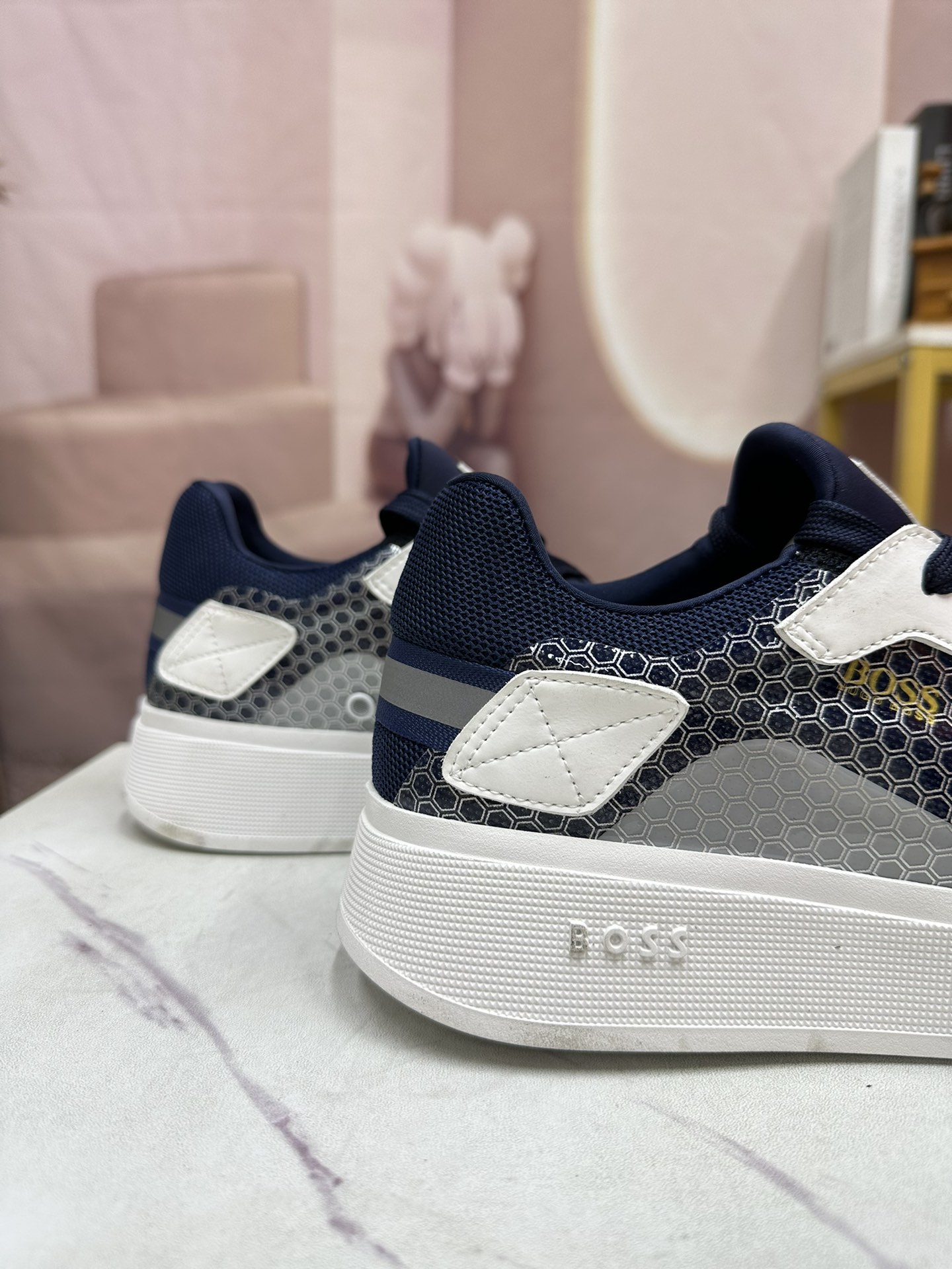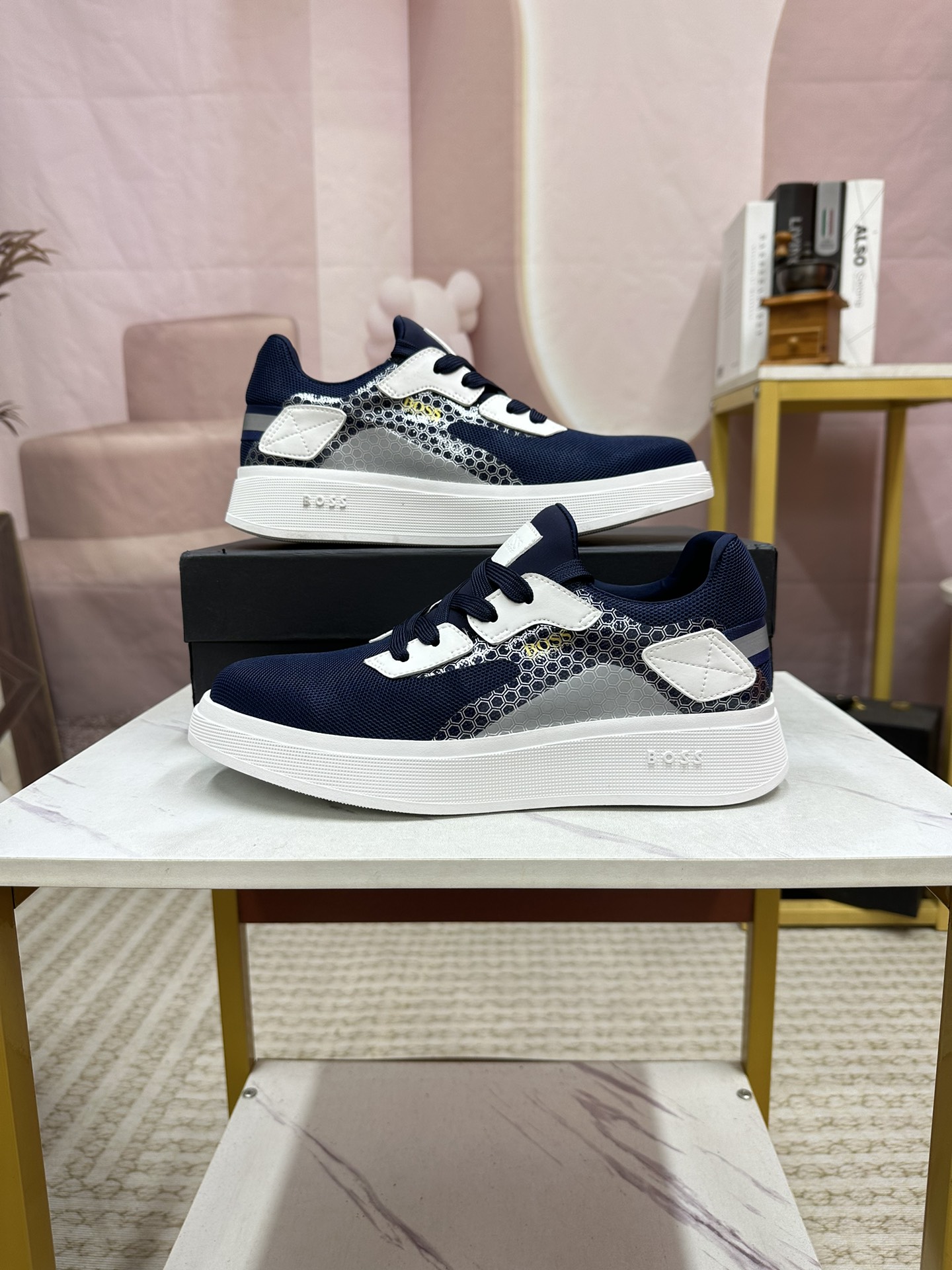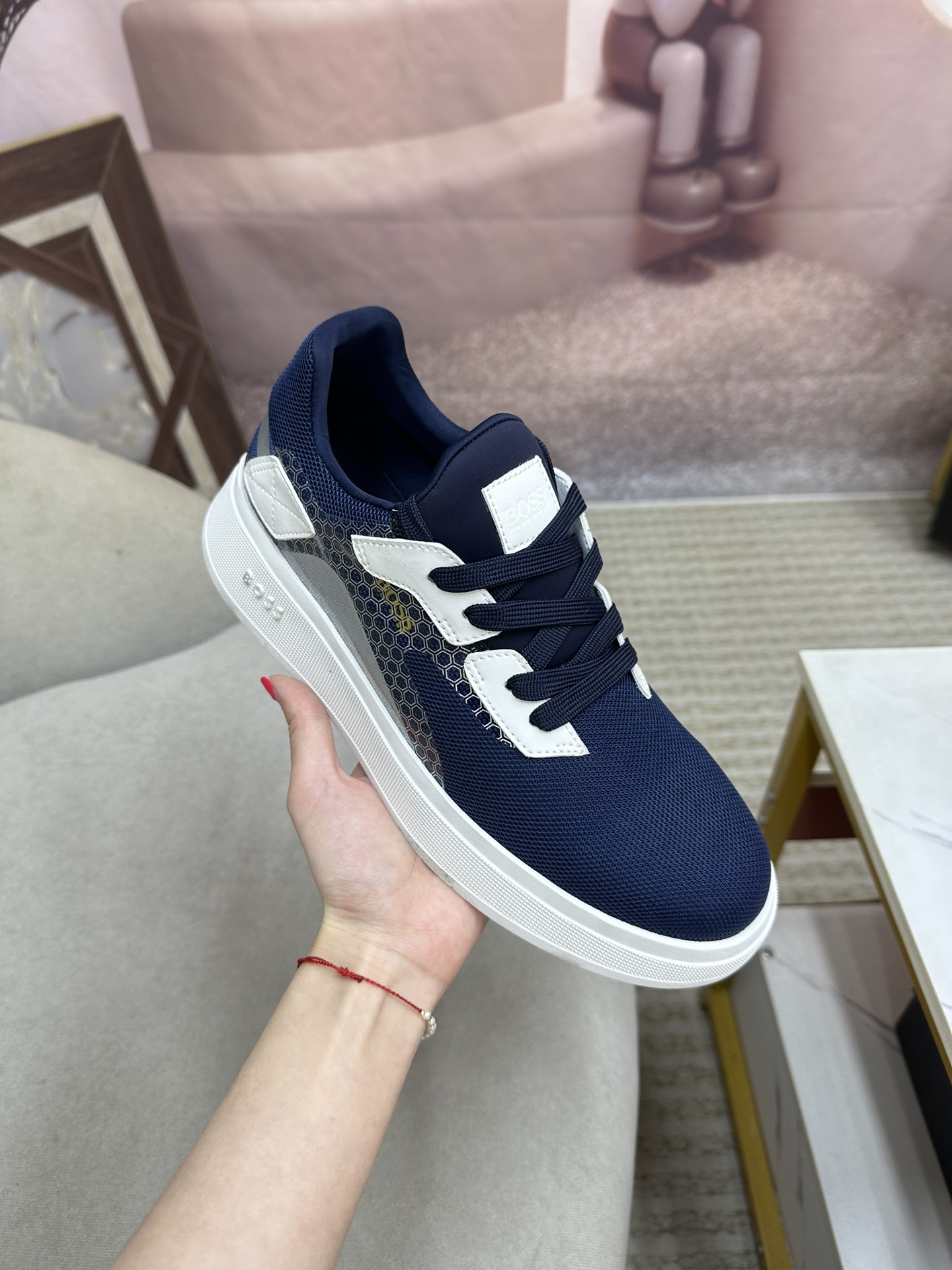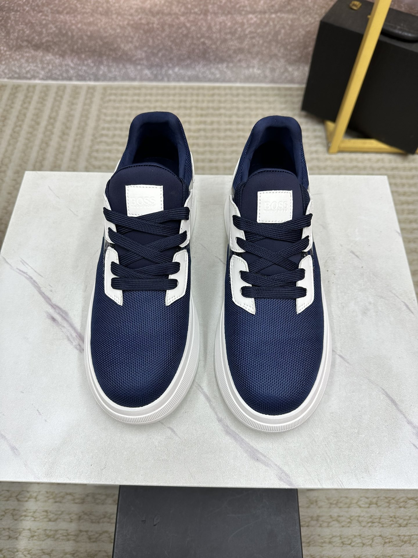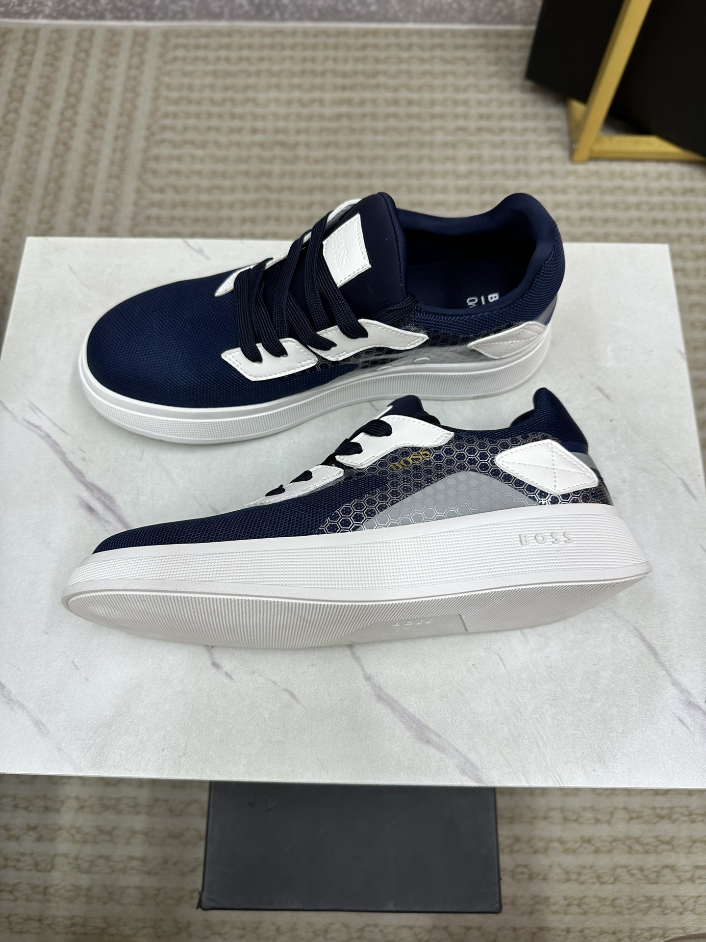 这款鞋子是AAAAA 1:1 质量 (非常棒). 使用了和原版一模一样的材料. 商标部分也保持了和BOSS一样. 图片拍摄是实物鞋子拍摄, 您所收到的实物保证和我们图片一模一样.