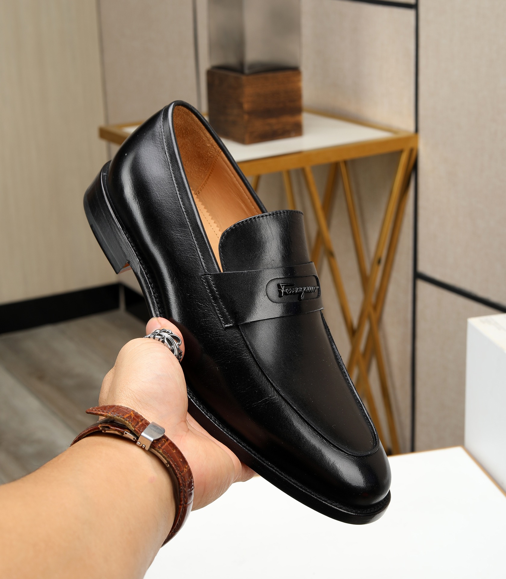 这款鞋子是AAAAA 1:1 质量 (非常棒). 使用了和原版一模一样的材料. 商标部分也保持了和菲拉格慕/Salvatore Ferragamo一样. 图片拍摄是实物鞋子拍摄, 您所收到的实物保证和我们图片一模一样.