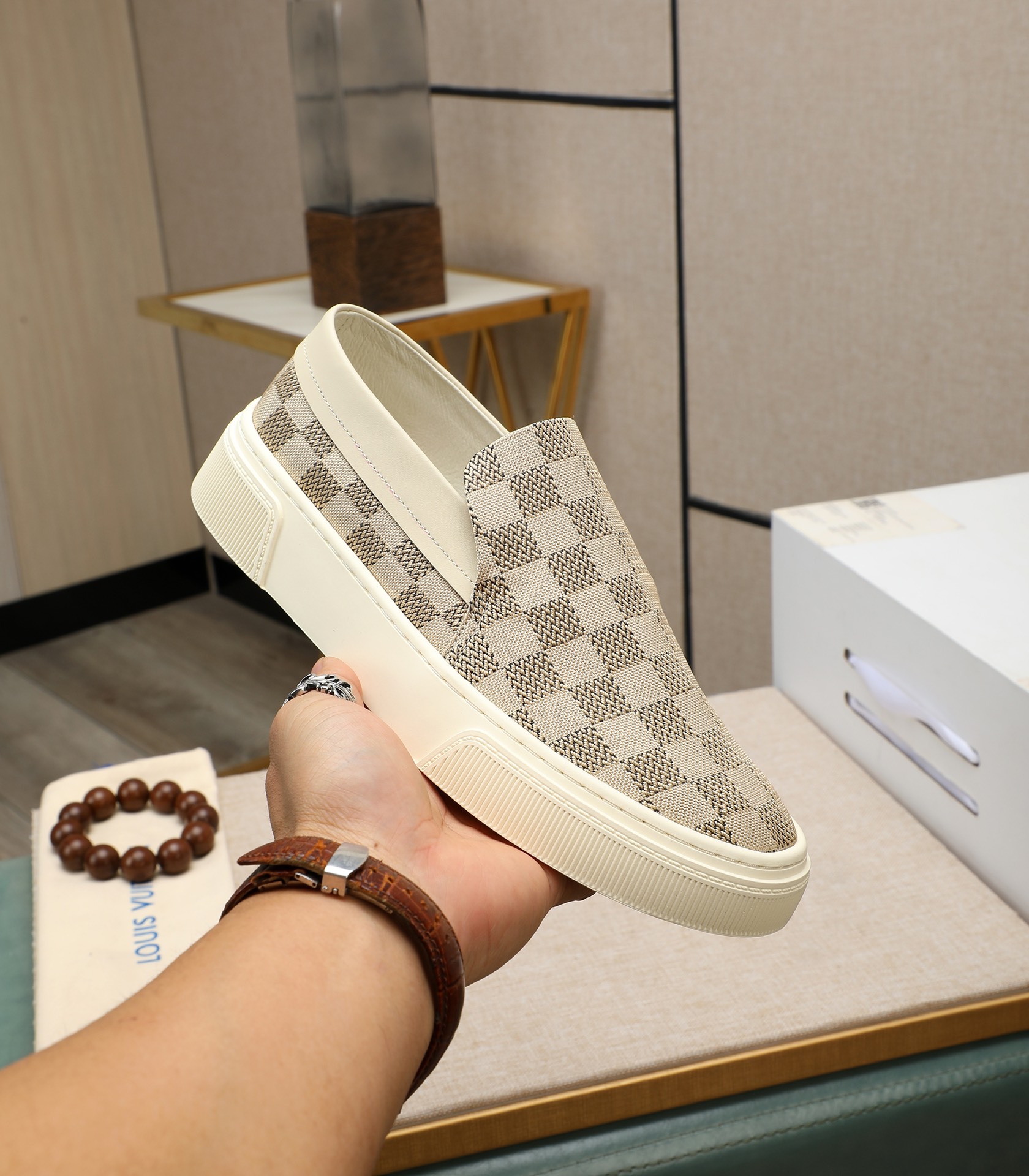 这款鞋子是AAAAA 1:1 质量 (非常棒). 使用了和原版一模一样的材料. 商标部分也保持了和路易威登/Louis Vuitton一样. 图片拍摄是实物鞋子拍摄, 您所收到的实物保证和我们图片一模一样.