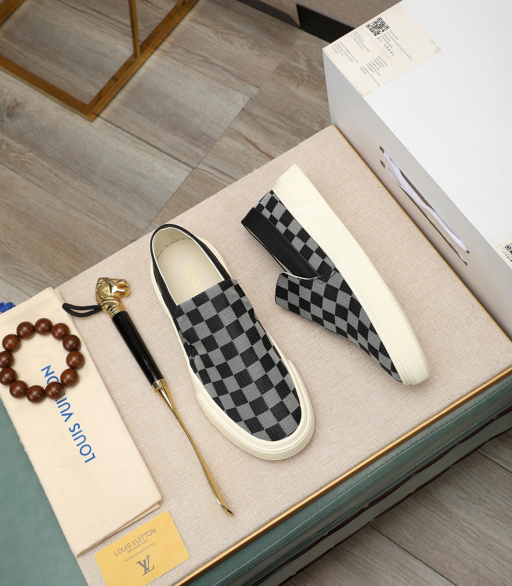 这款鞋子是AAAAA 1:1 质量 (非常棒). 使用了和原版一模一样的材料. 商标部分也保持了和路易威登/Louis Vuitton一样. 图片拍摄是实物鞋子拍摄, 您所收到的实物保证和我们图片一模一样.