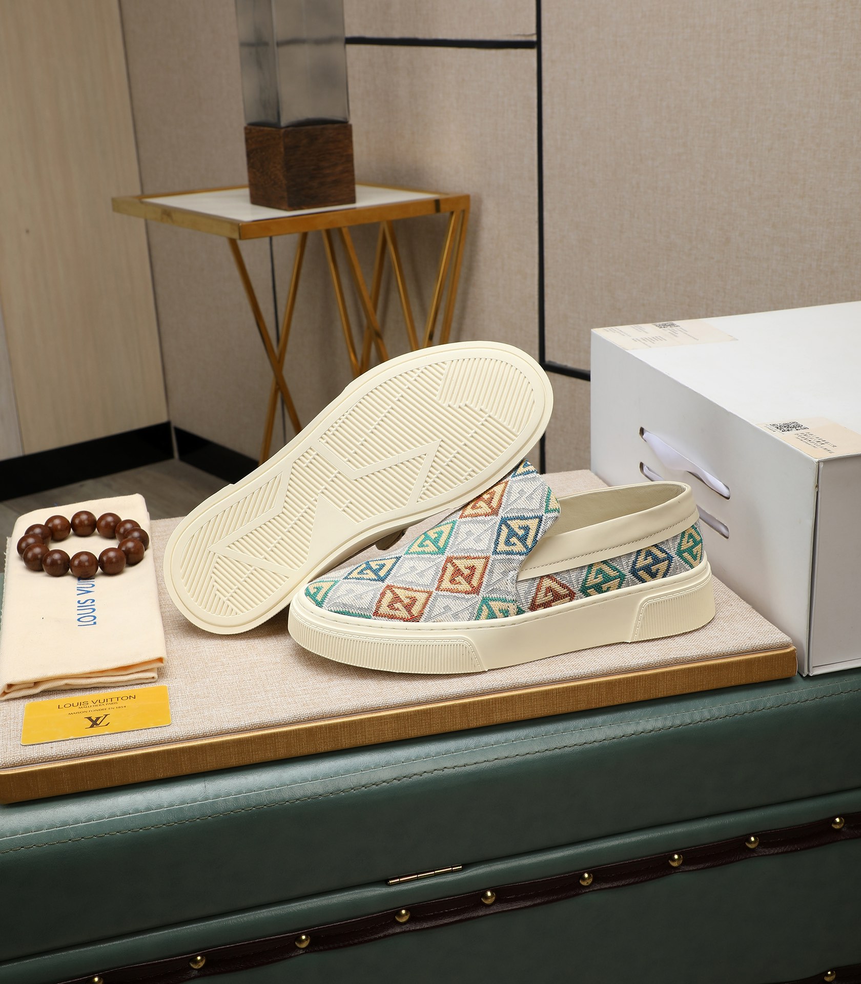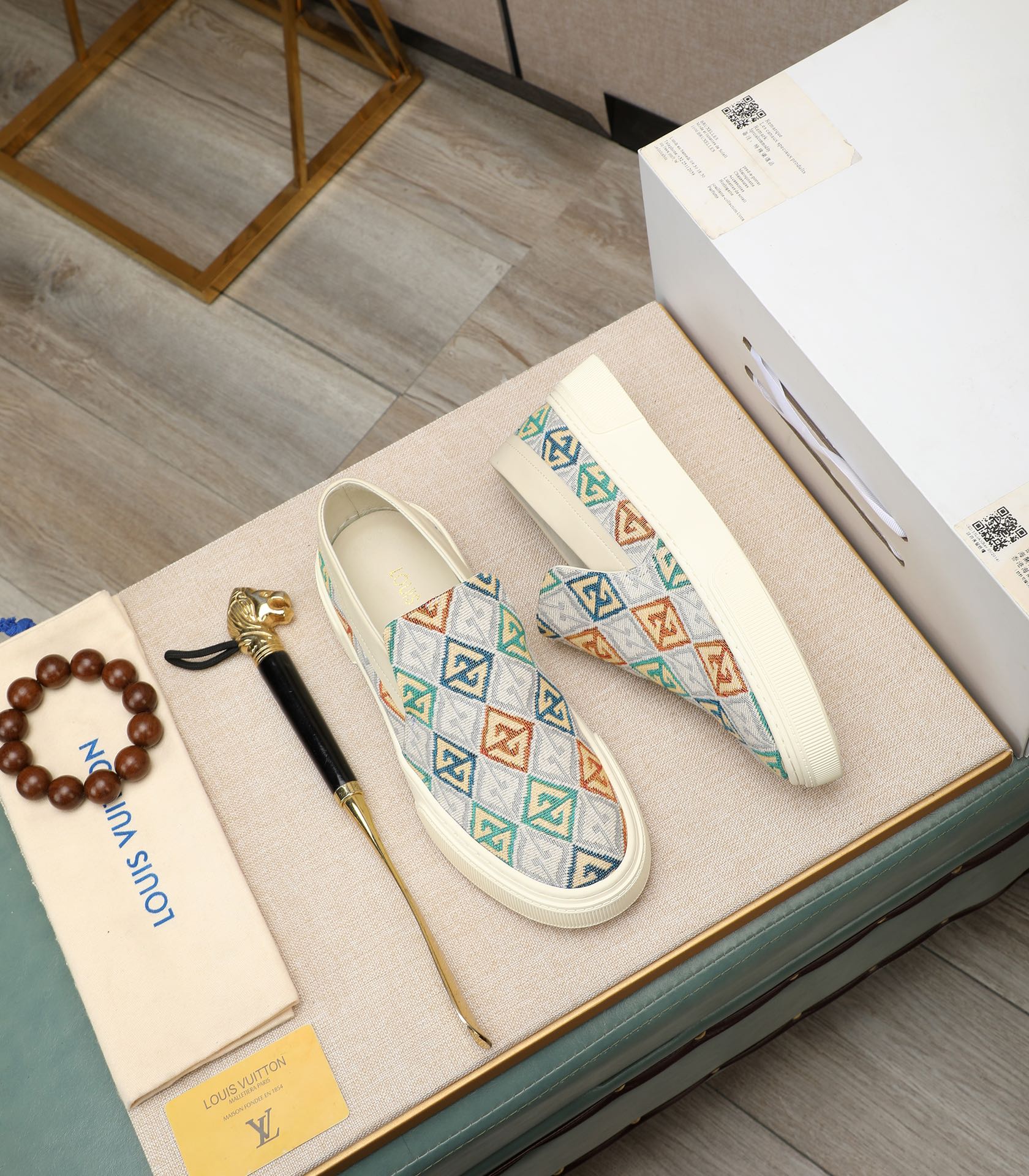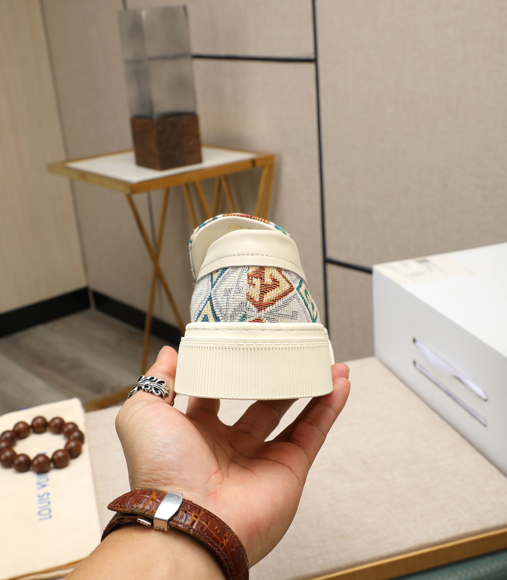 这款鞋子是AAAAA 1:1 质量 (非常棒). 使用了和原版一模一样的材料. 商标部分也保持了和路易威登/Louis Vuitton一样. 图片拍摄是实物鞋子拍摄, 您所收到的实物保证和我们图片一模一样.