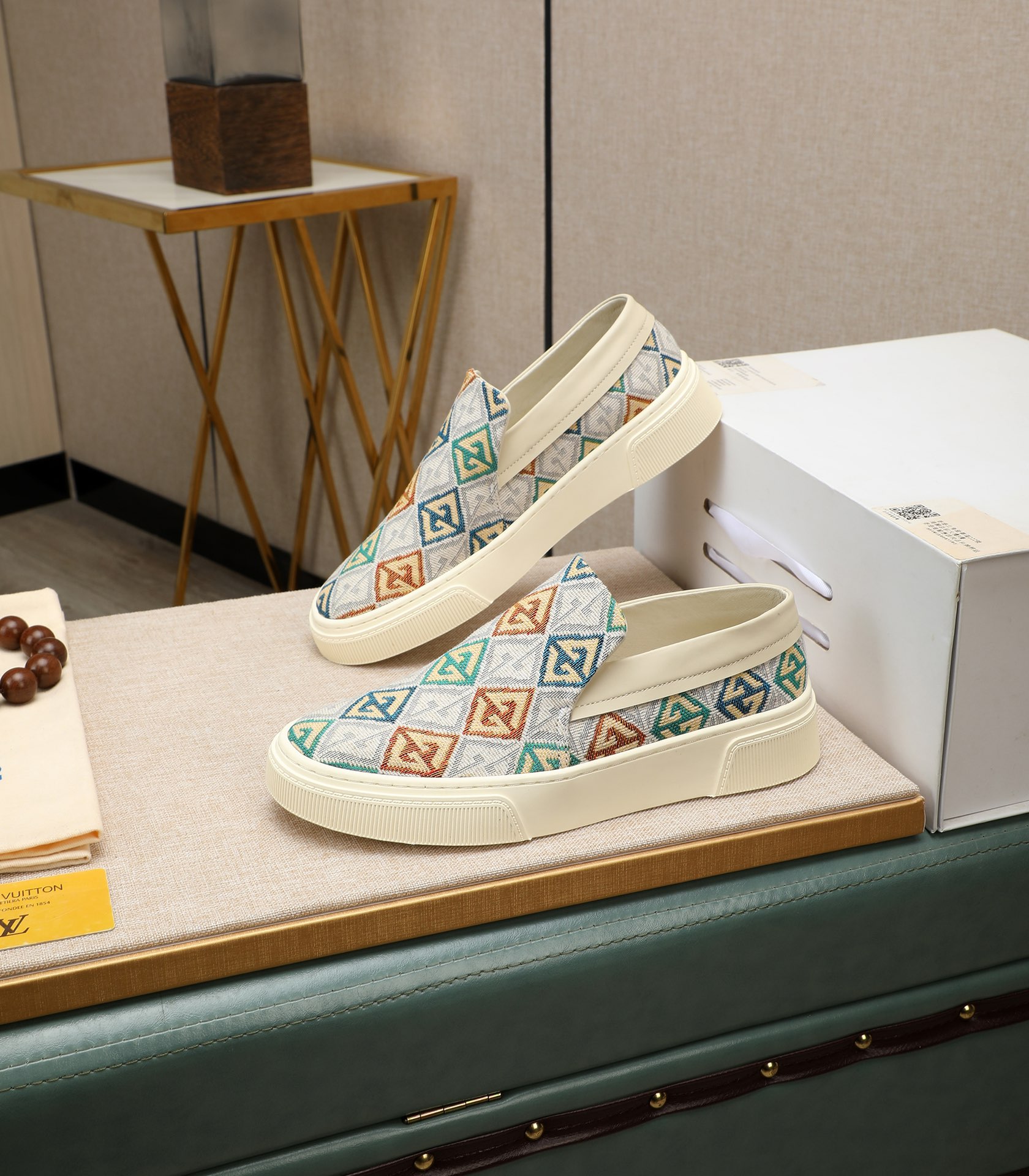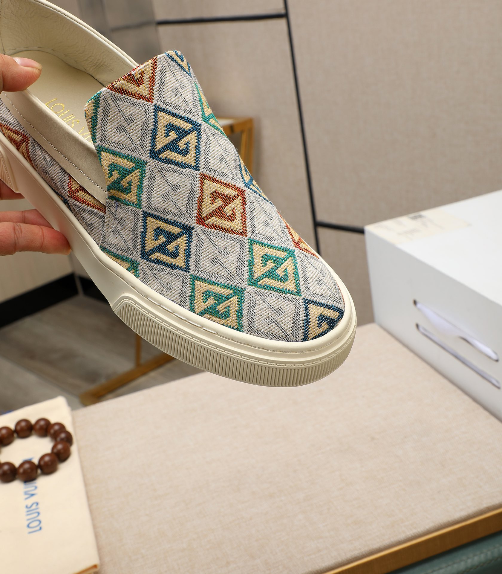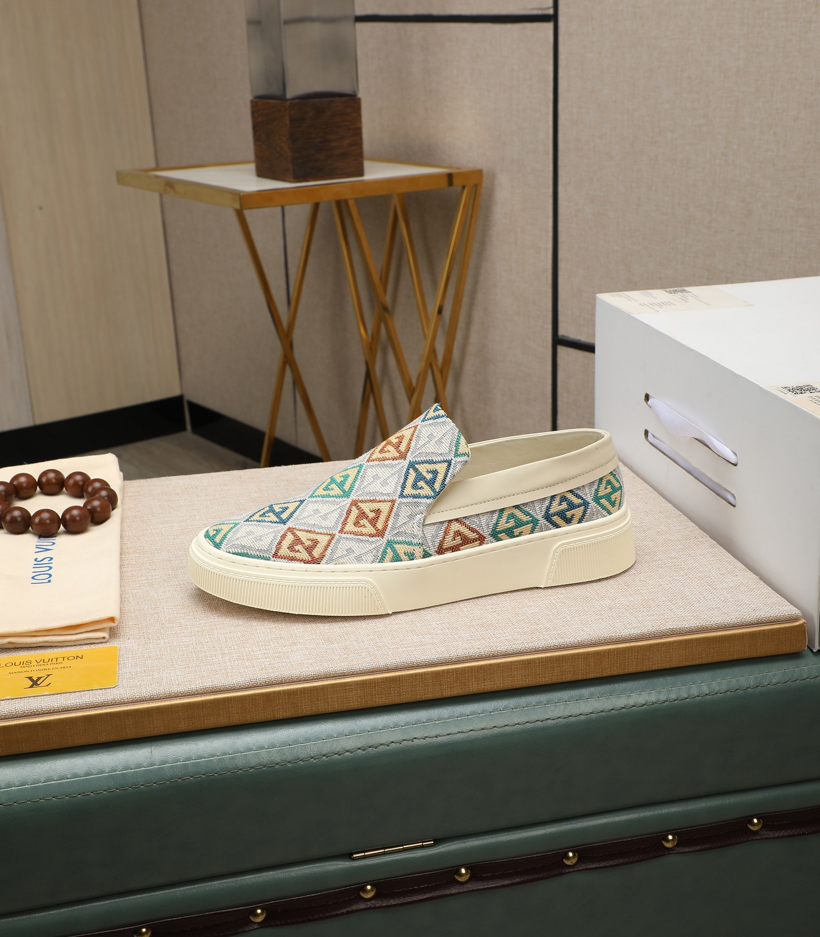 这款鞋子是AAAAA 1:1 质量 (非常棒). 使用了和原版一模一样的材料. 商标部分也保持了和路易威登/Louis Vuitton一样. 图片拍摄是实物鞋子拍摄, 您所收到的实物保证和我们图片一模一样.