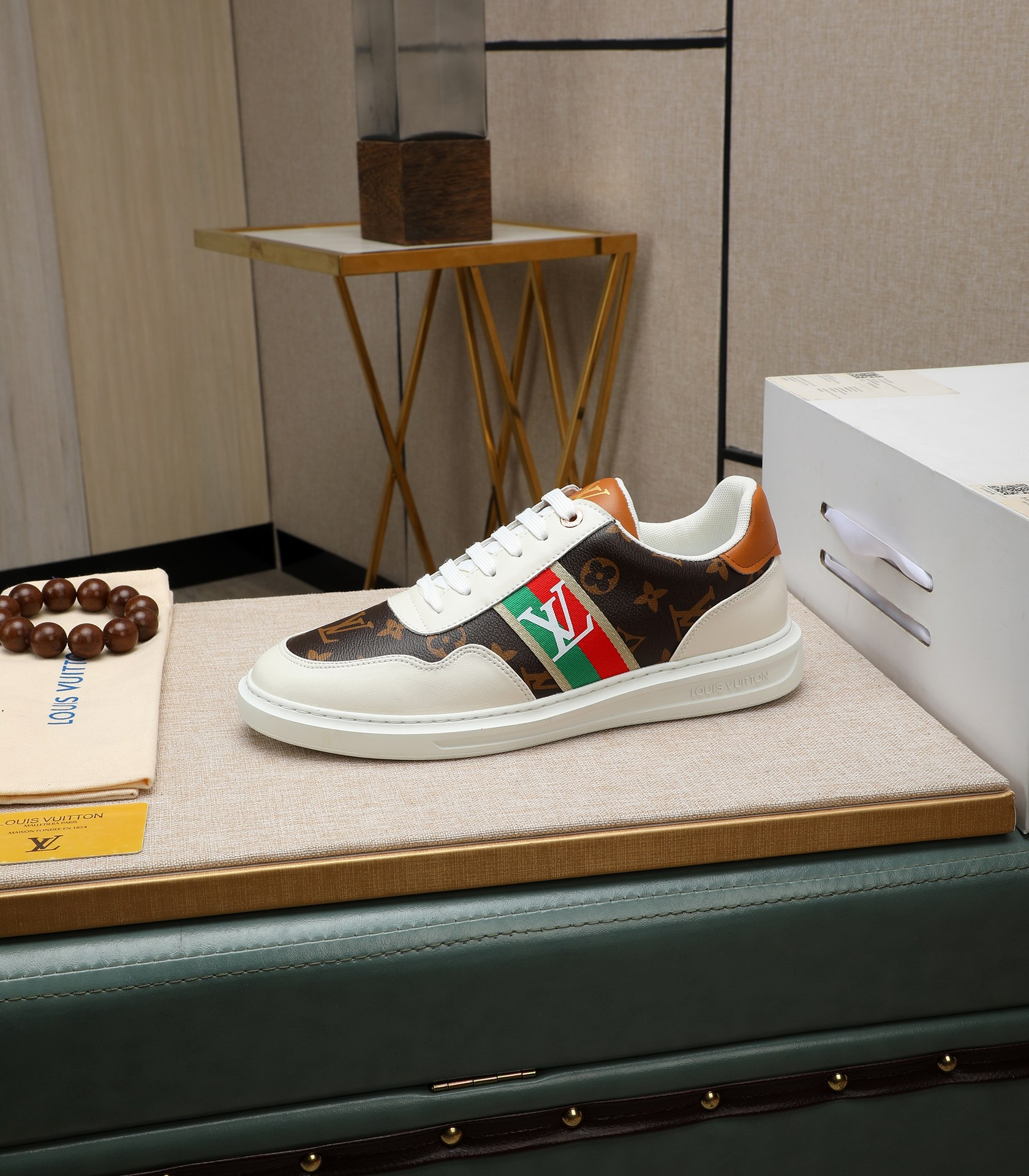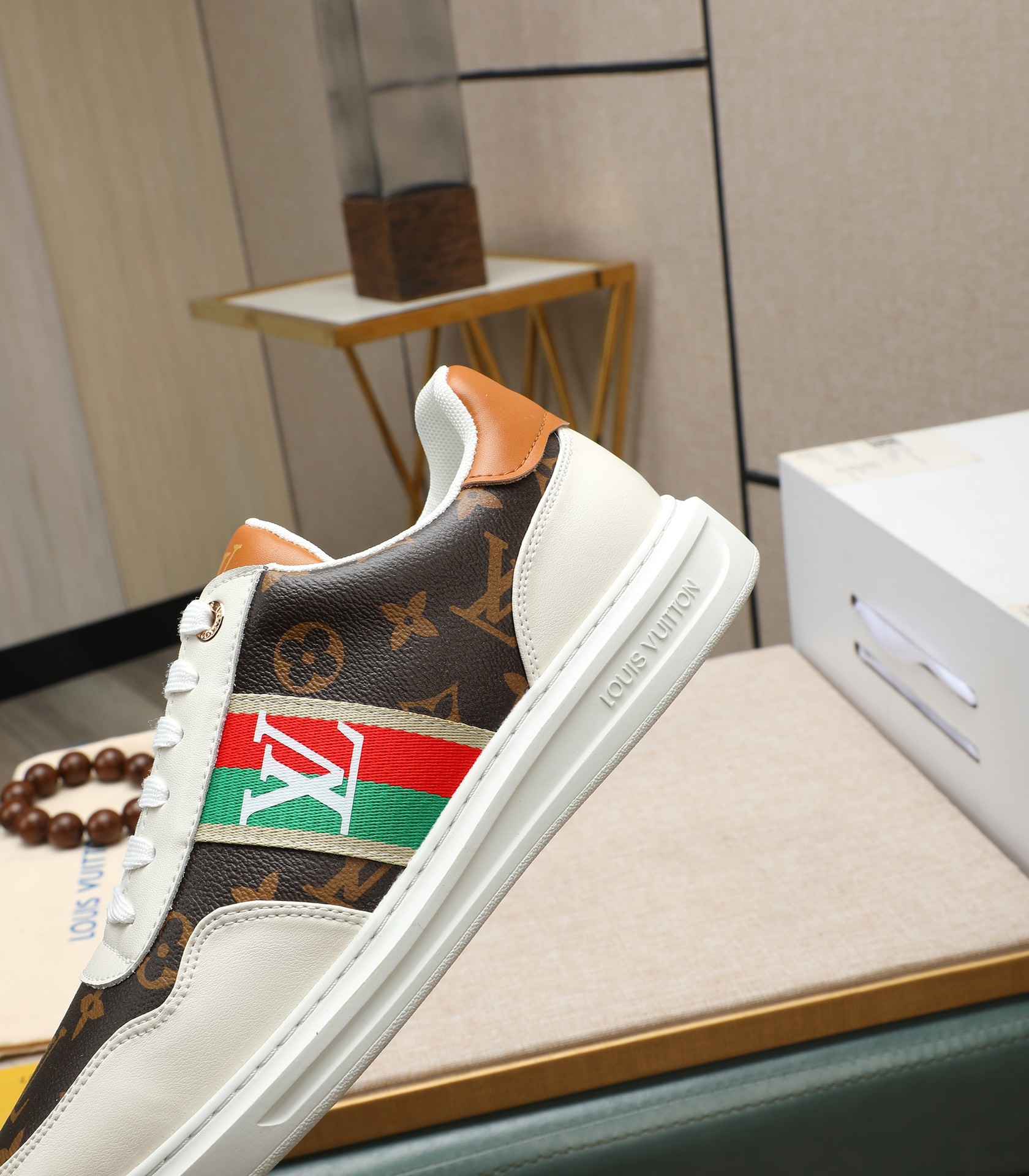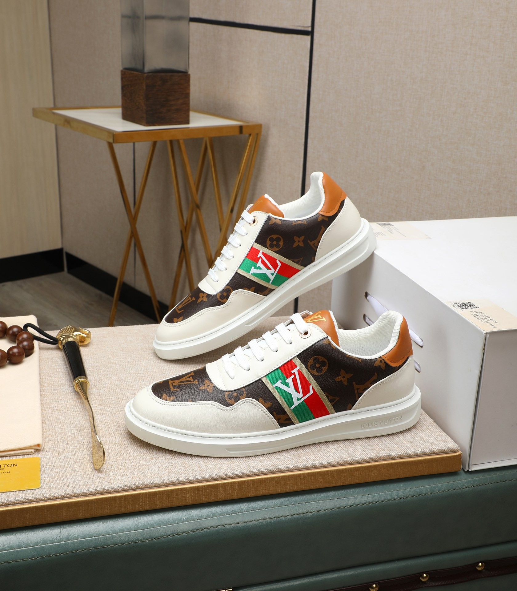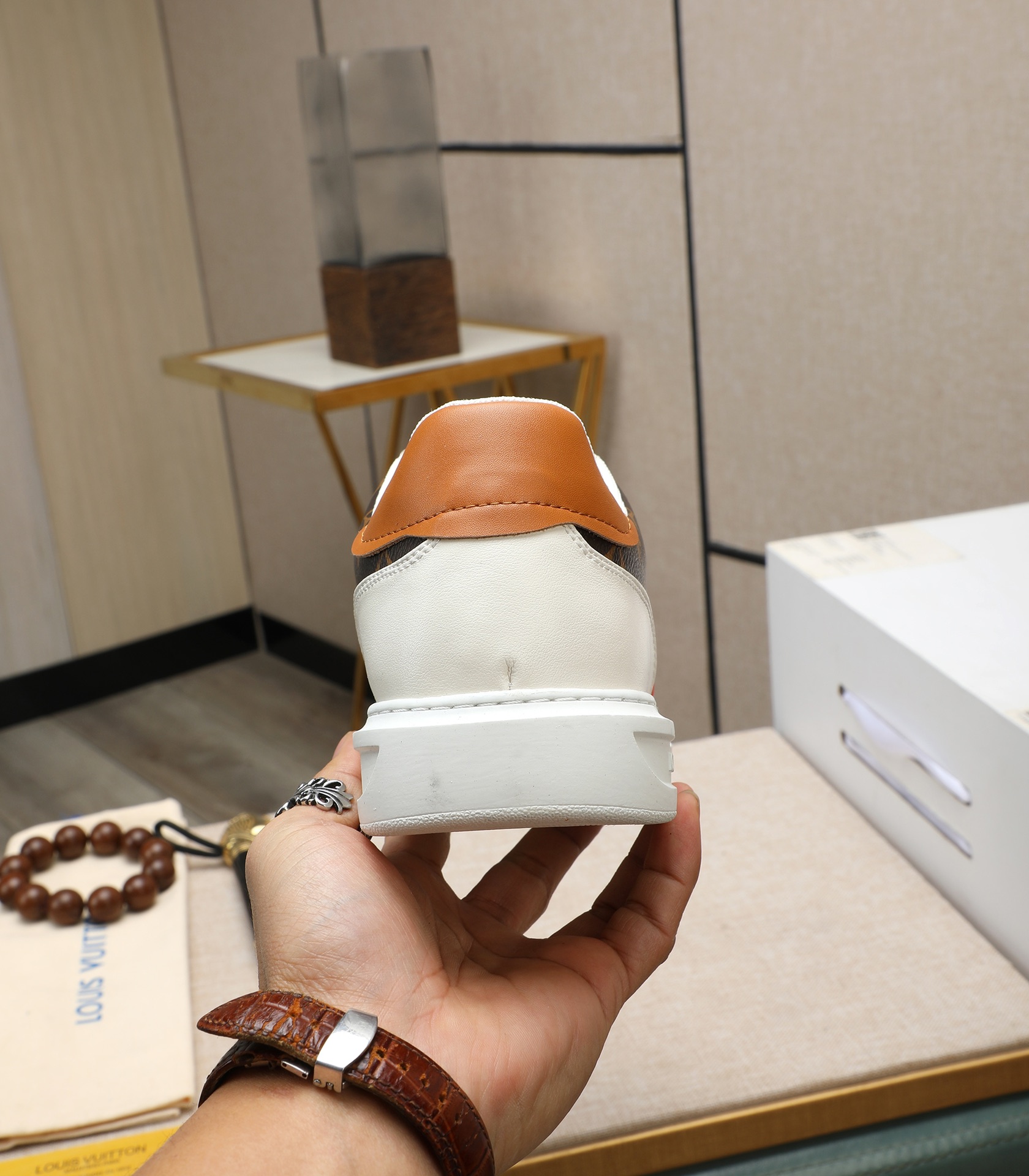 这款鞋子是AAAAA 1:1 质量 (非常棒). 使用了和原版一模一样的材料. 商标部分也保持了和路易威登/Louis Vuitton一样. 图片拍摄是实物鞋子拍摄, 您所收到的实物保证和我们图片一模一样.