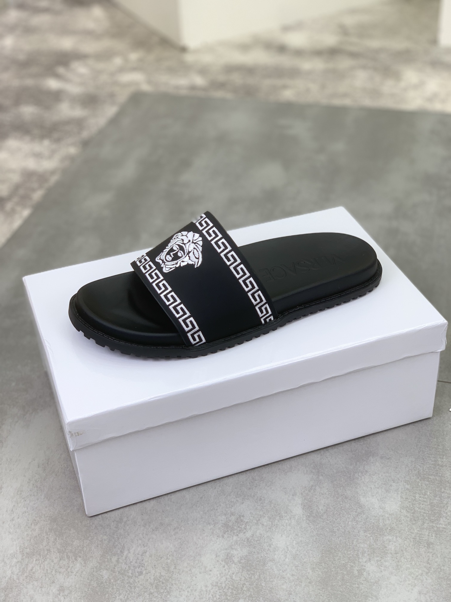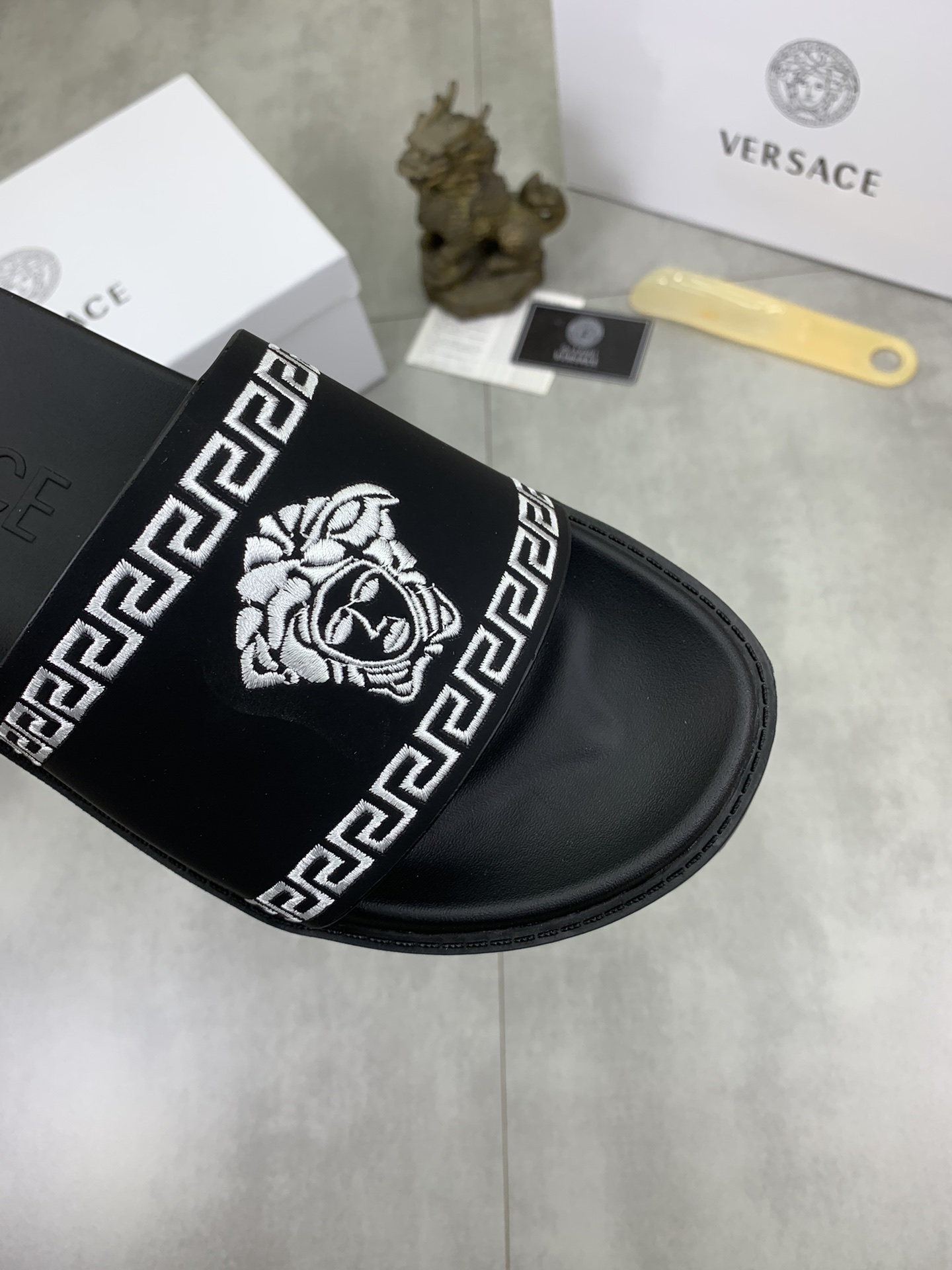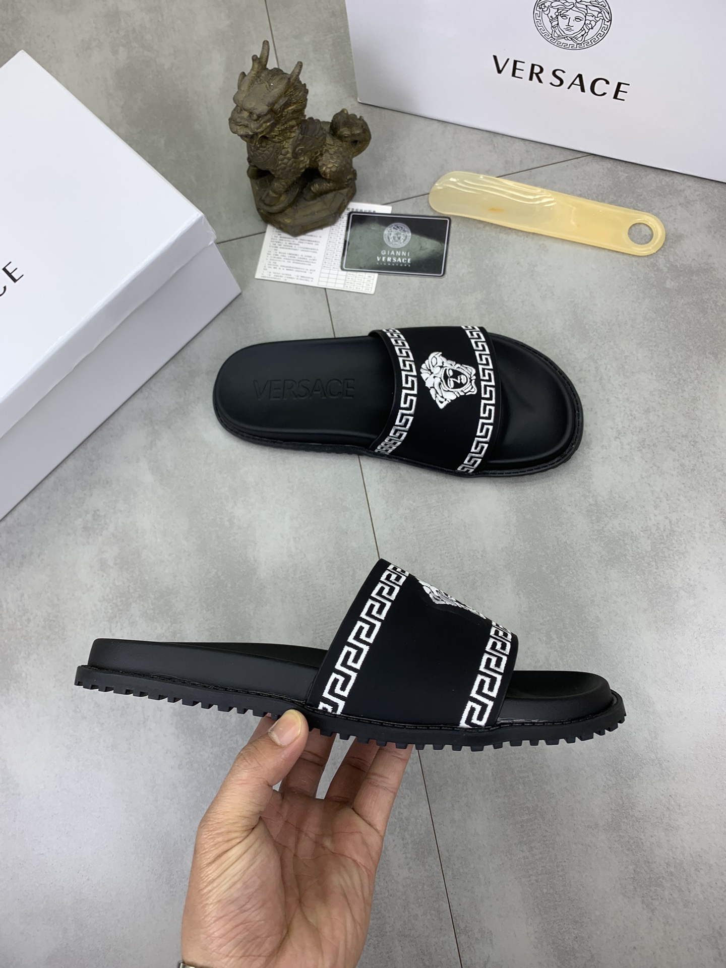 这款鞋子是AAAAA 1:1 质量 (非常棒). 使用了和原版一模一样的材料. 商标部分也保持了和范思哲/Versace一样. 图片拍摄是实物鞋子拍摄, 您所收到的实物保证和我们图片一模一样.
