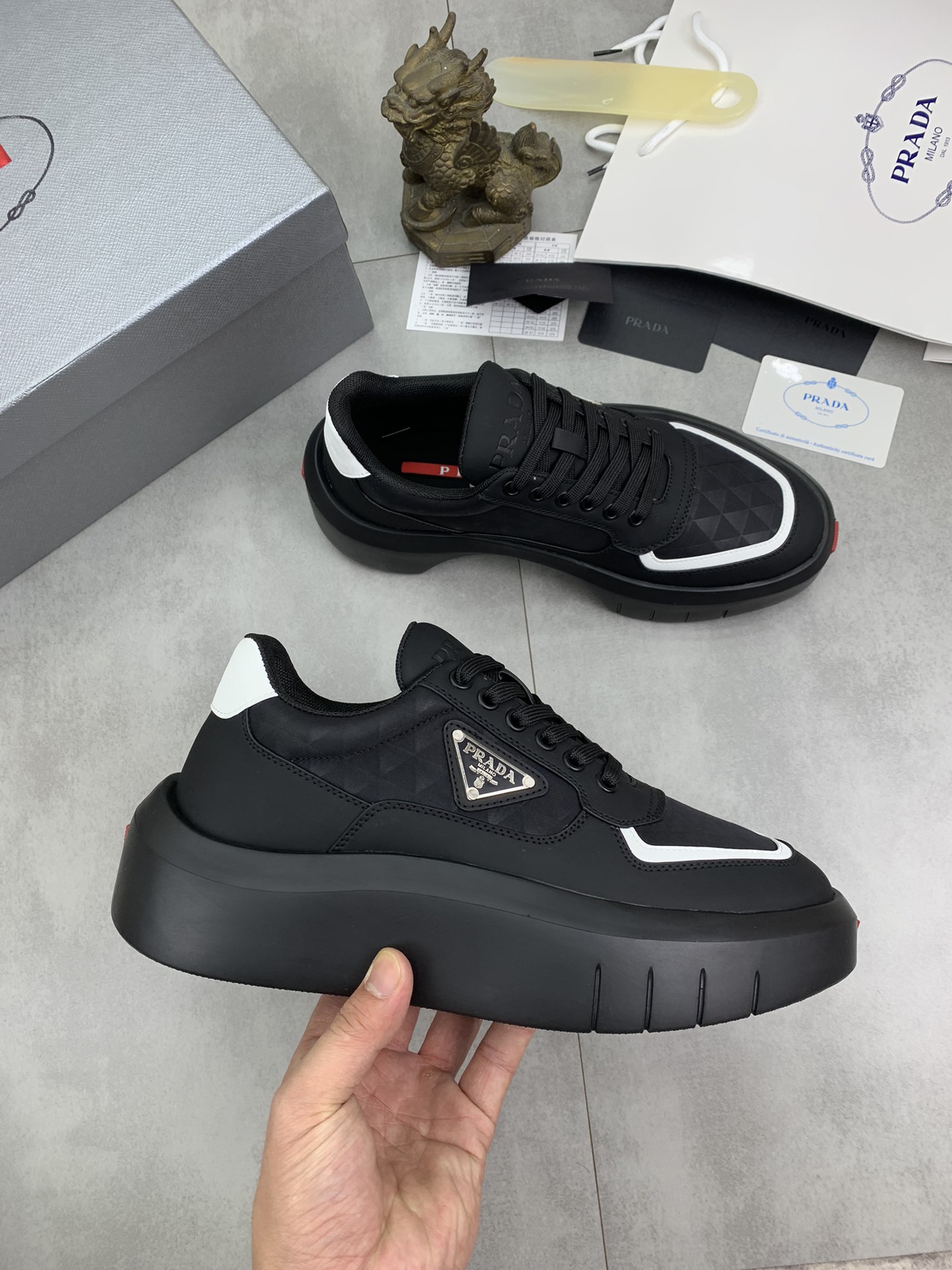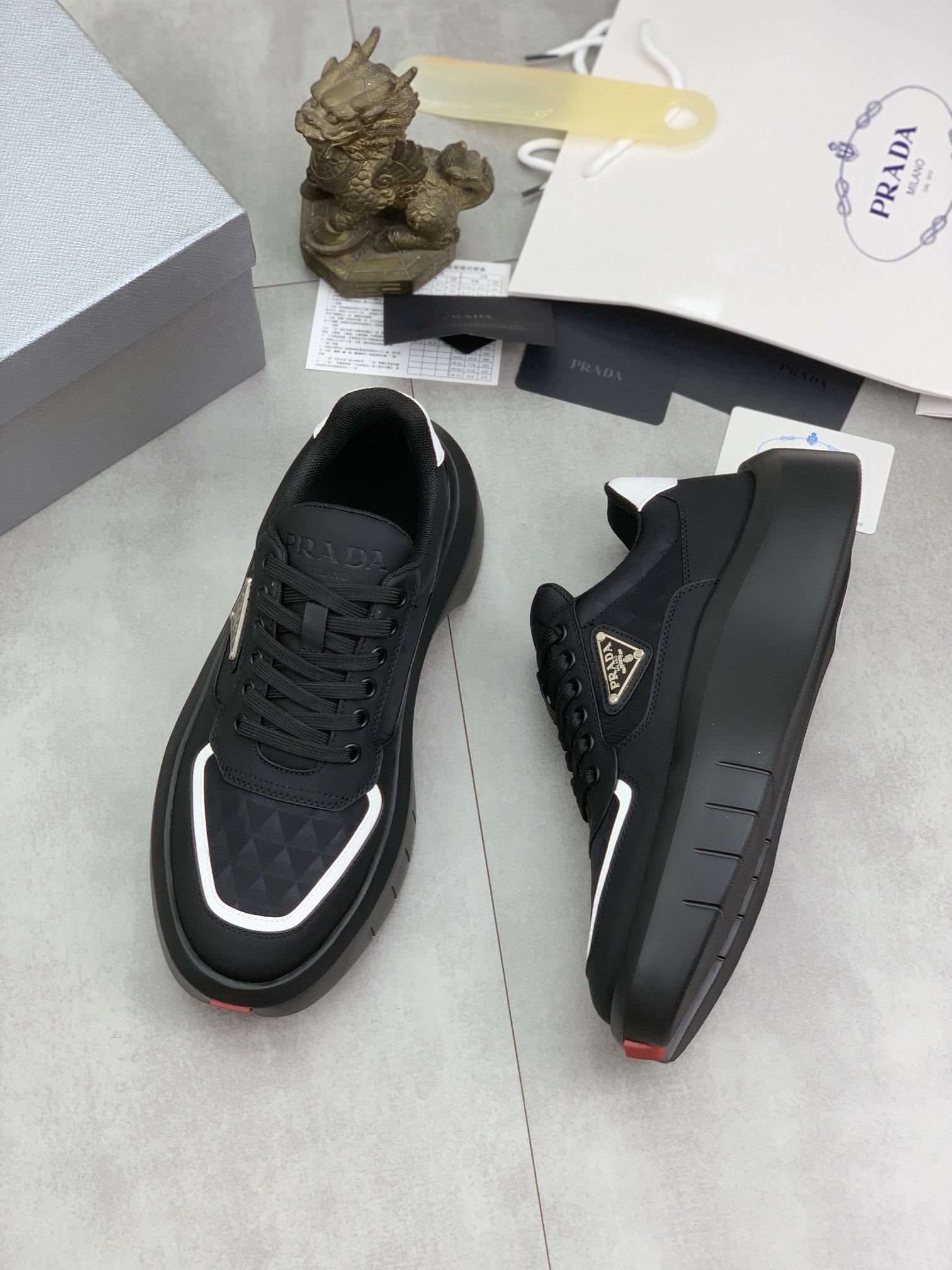 这款鞋子是AAAAA 1:1 质量 (非常棒). 使用了和原版一模一样的材料. 商标部分也保持了和普拉达/Prada一样. 图片拍摄是实物鞋子拍摄, 您所收到的实物保证和我们图片一模一样.