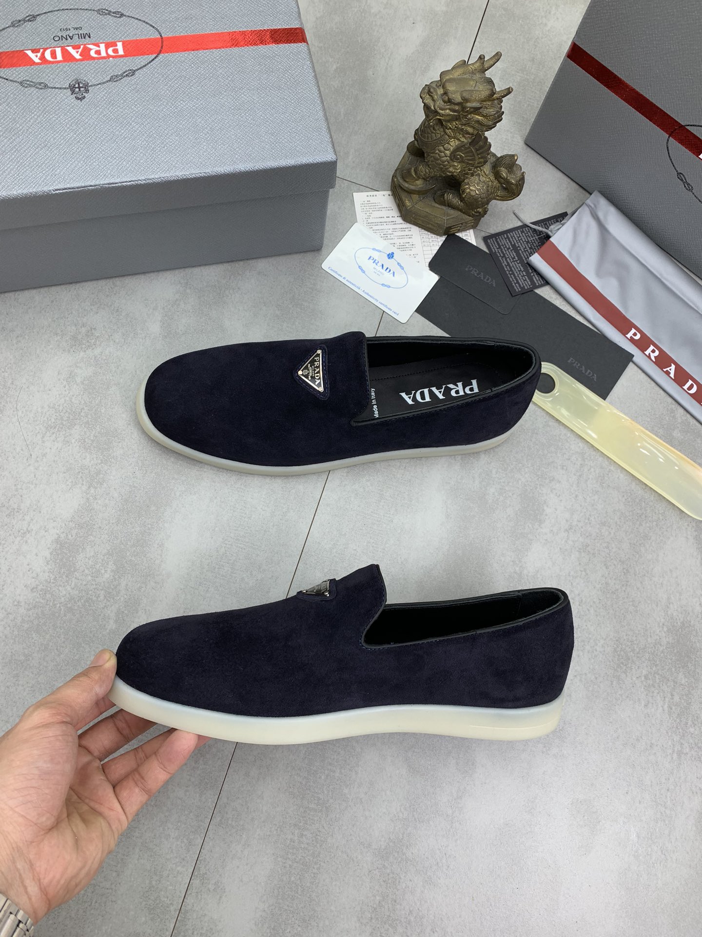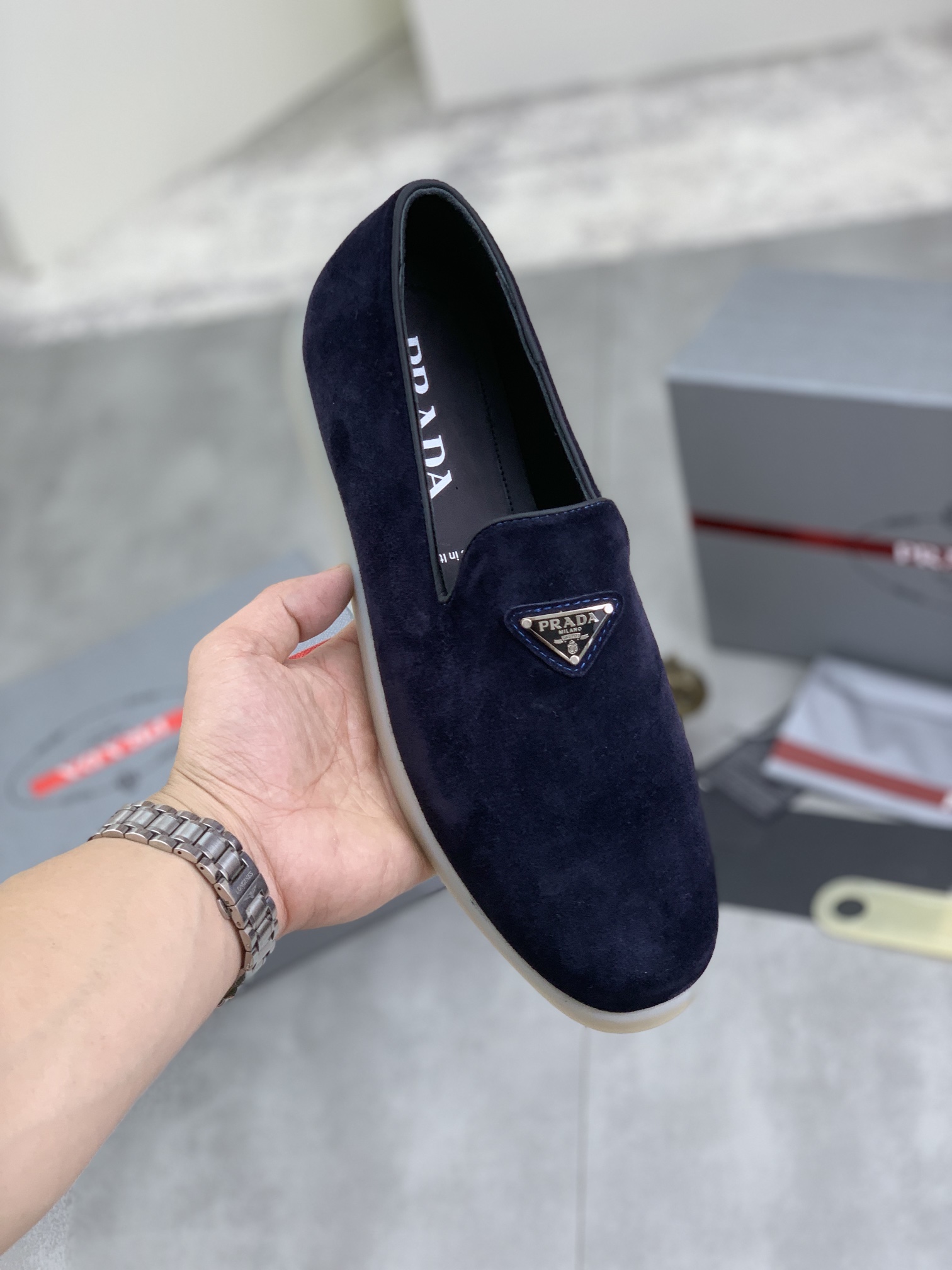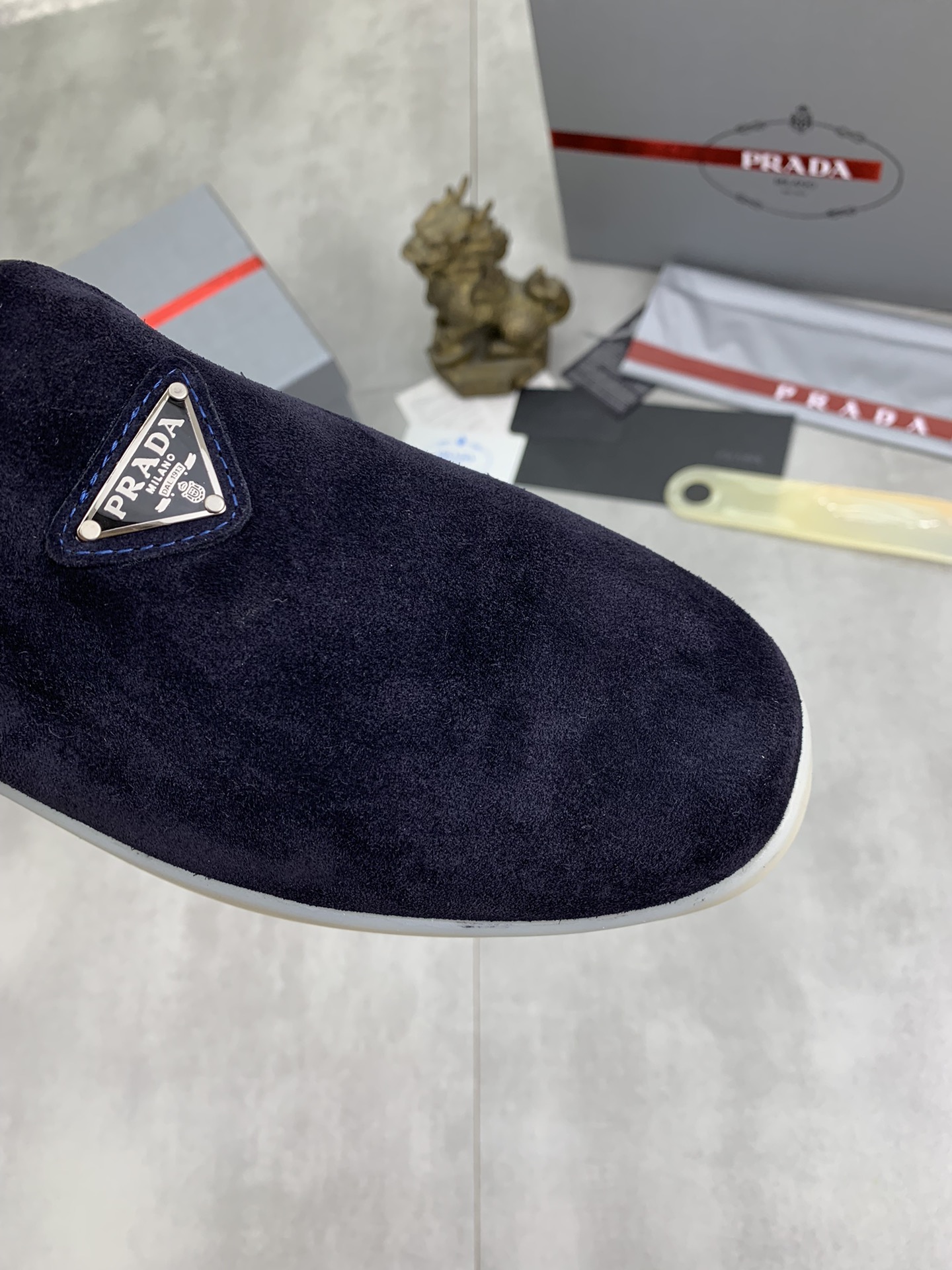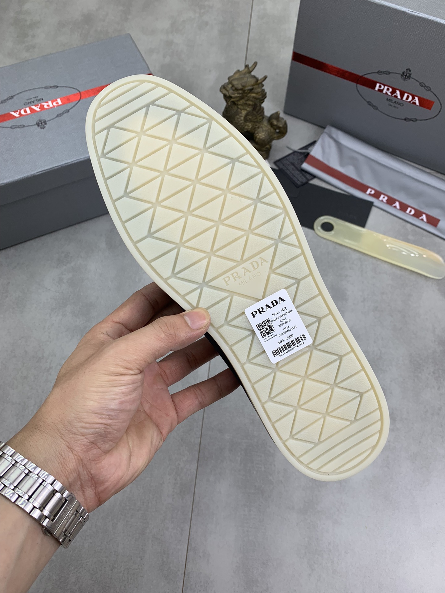 这款鞋子是AAAAA 1:1 质量 (非常棒). 使用了和原版一模一样的材料. 商标部分也保持了和普拉达/Prada一样. 图片拍摄是实物鞋子拍摄, 您所收到的实物保证和我们图片一模一样.