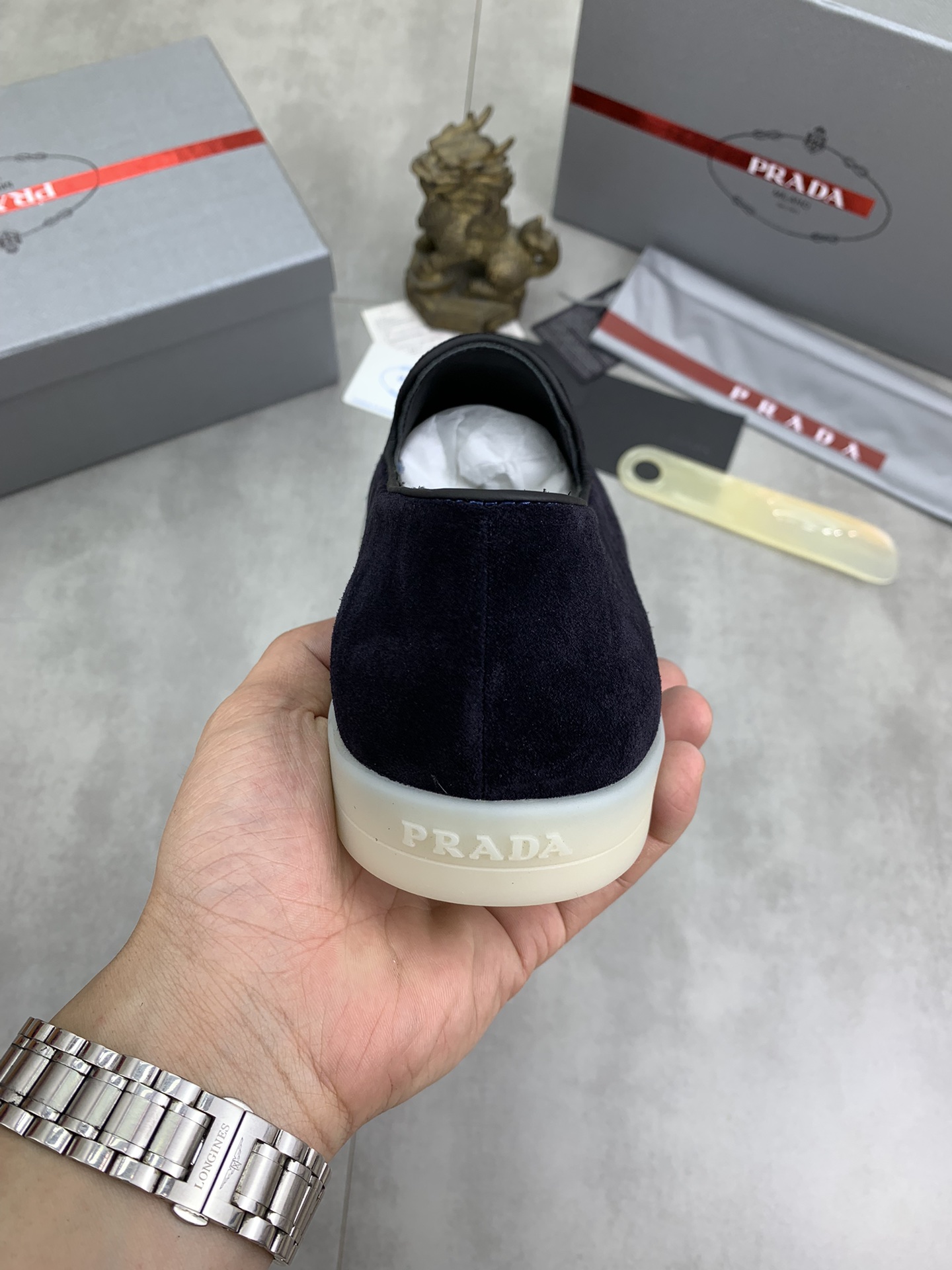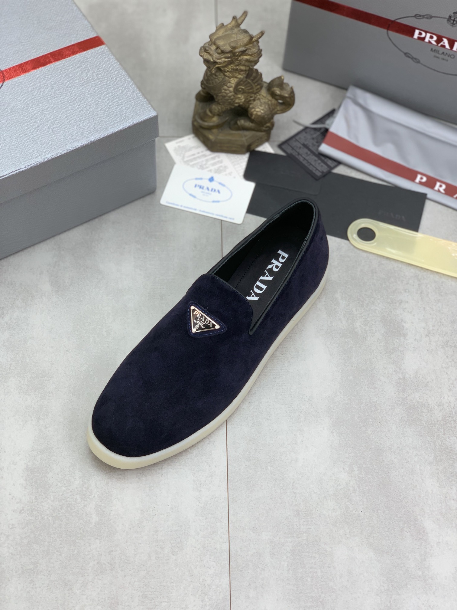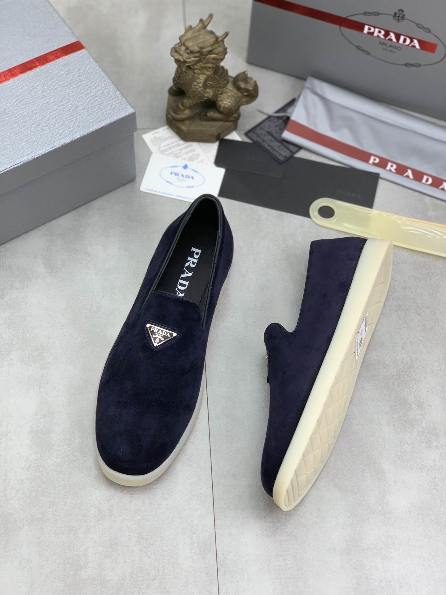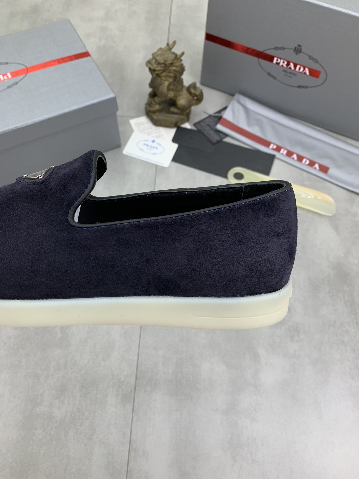 这款鞋子是AAAAA 1:1 质量 (非常棒). 使用了和原版一模一样的材料. 商标部分也保持了和普拉达/Prada一样. 图片拍摄是实物鞋子拍摄, 您所收到的实物保证和我们图片一模一样.