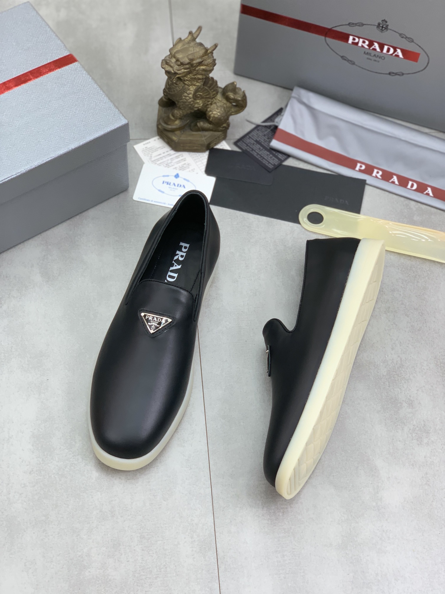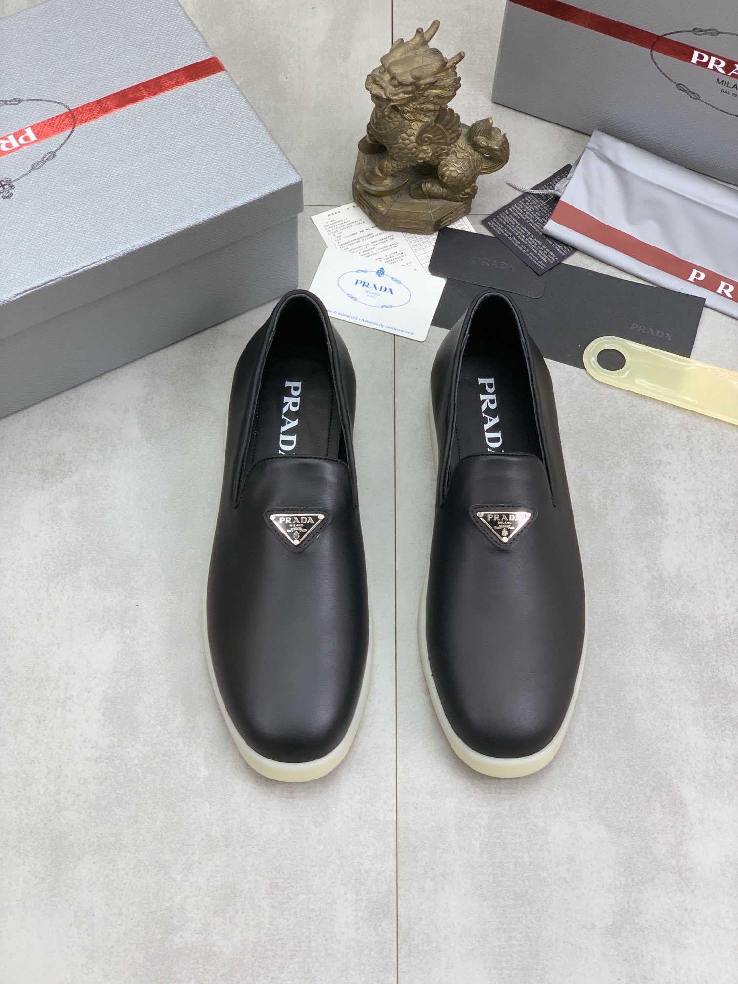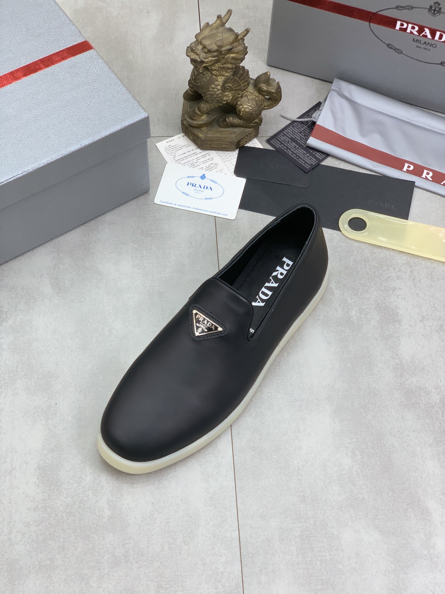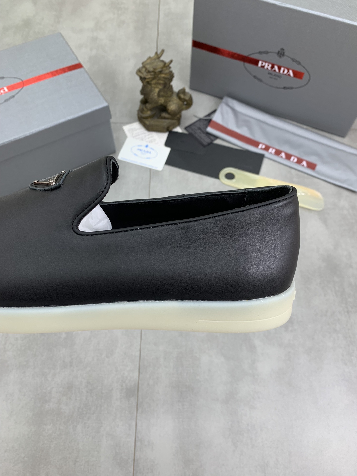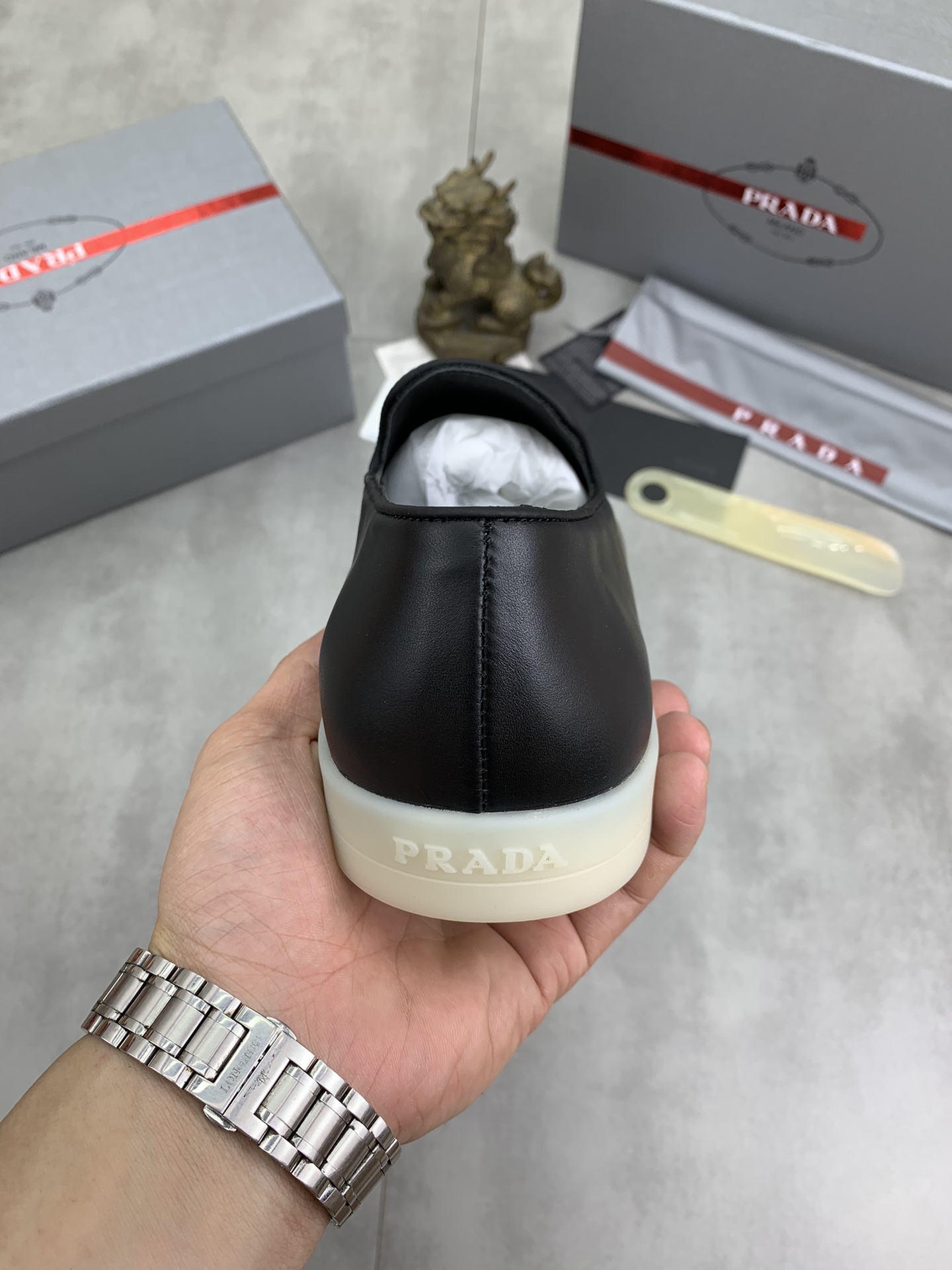 这款鞋子是AAAAA 1:1 质量 (非常棒). 使用了和原版一模一样的材料. 商标部分也保持了和普拉达/Prada一样. 图片拍摄是实物鞋子拍摄, 您所收到的实物保证和我们图片一模一样.