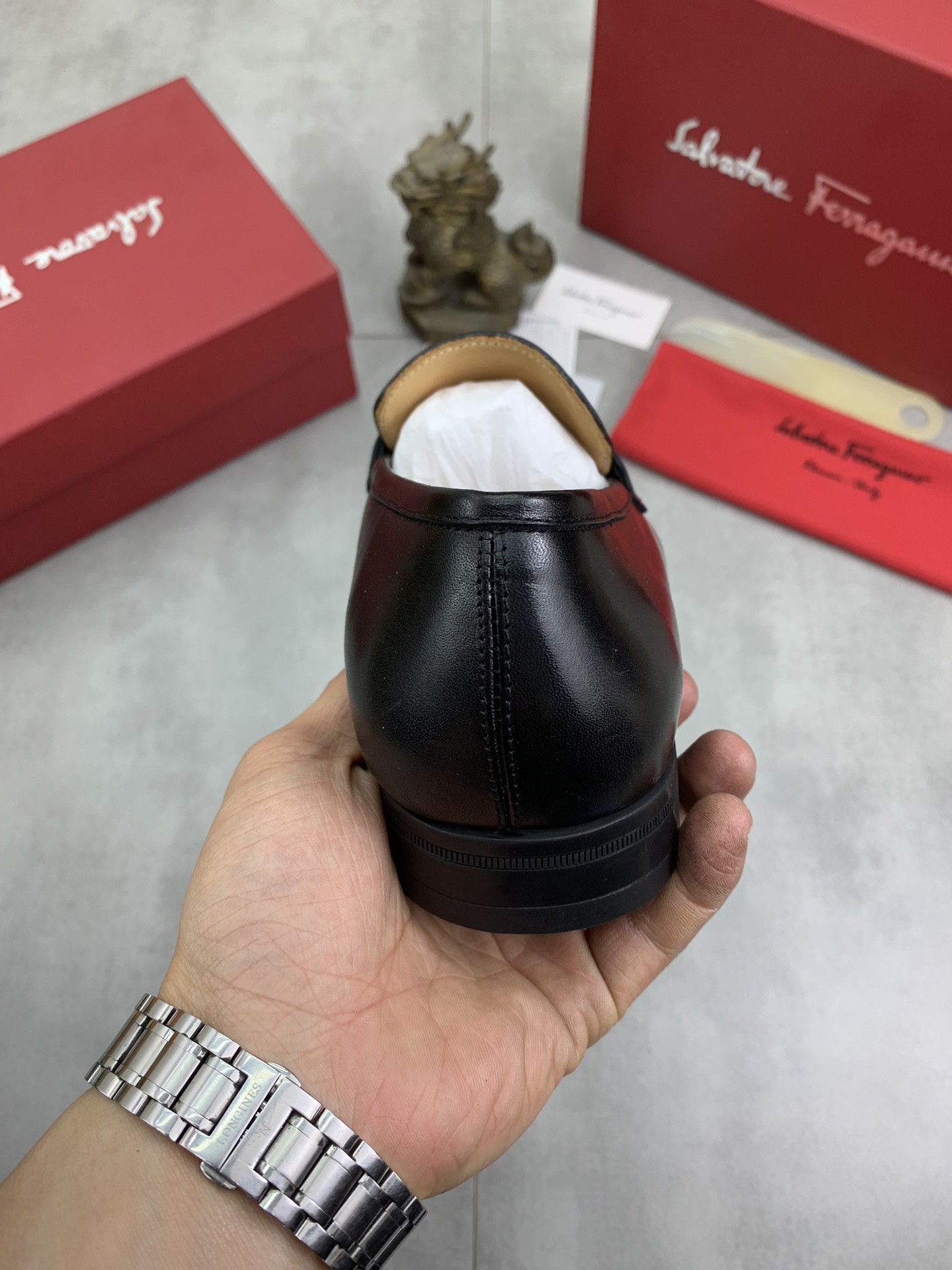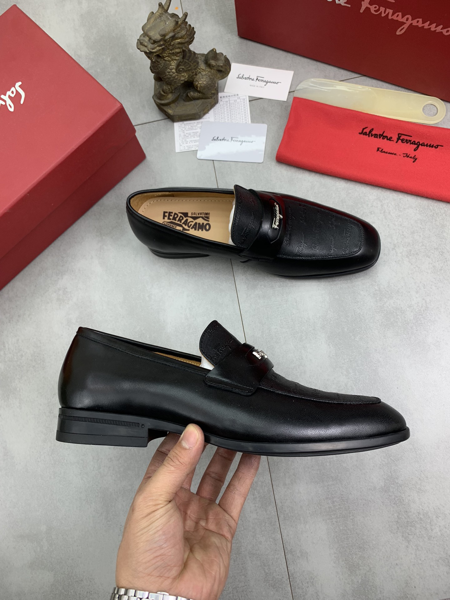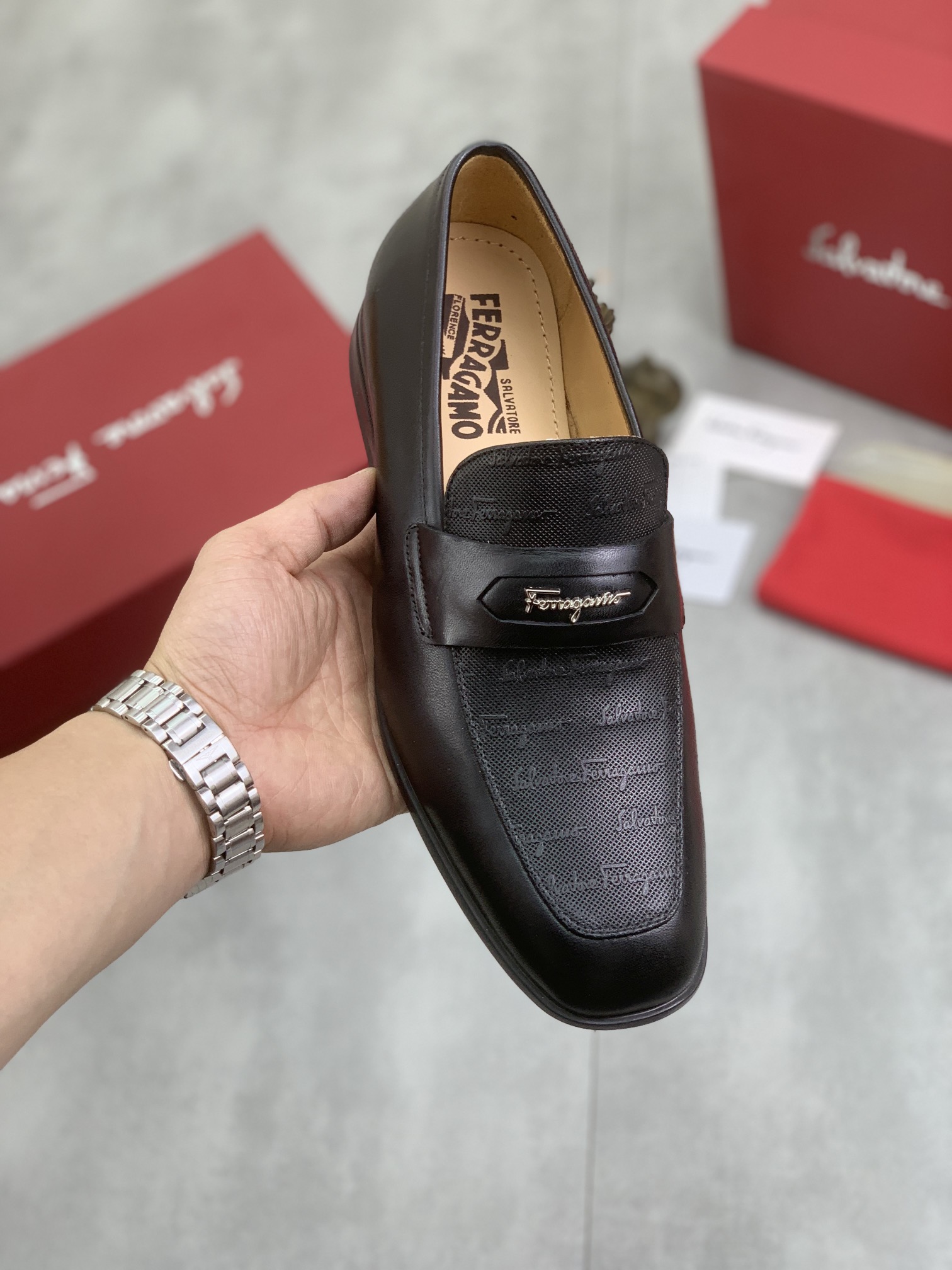 这款鞋子是AAAAA 1:1 质量 (非常棒). 使用了和原版一模一样的材料. 商标部分也保持了和菲拉格慕/Salvatore Ferragamo一样. 图片拍摄是实物鞋子拍摄, 您所收到的实物保证和我们图片一模一样.