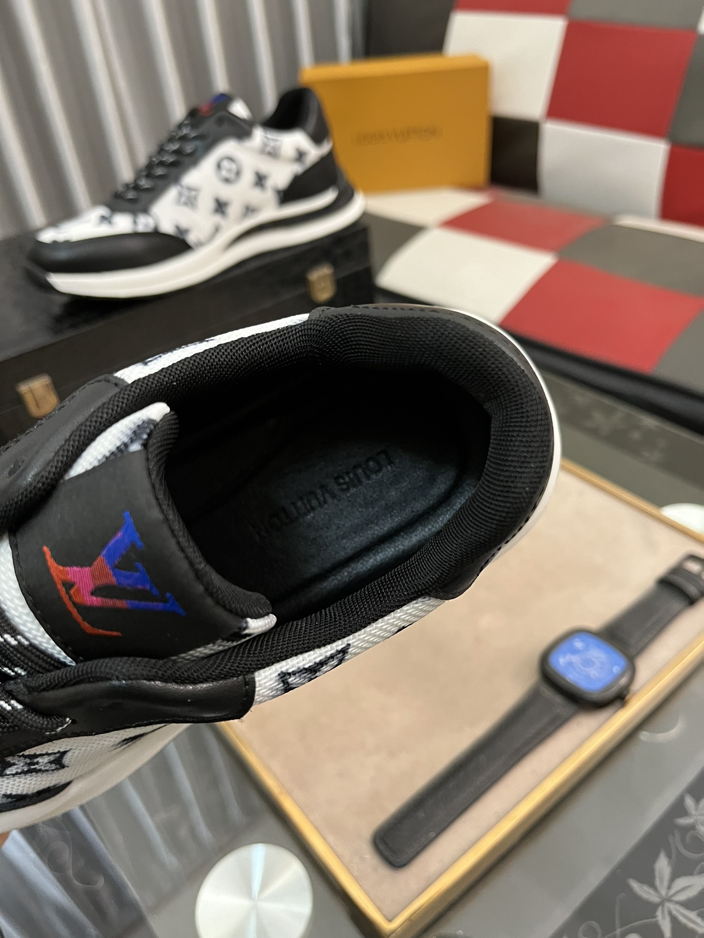 这款鞋子是AAAAA 1:1 质量 (非常棒). 使用了和原版一模一样的材料. 商标部分也保持了和路易威登/Louis Vuitton一样. 图片拍摄是实物鞋子拍摄, 您所收到的实物保证和我们图片一模一样.