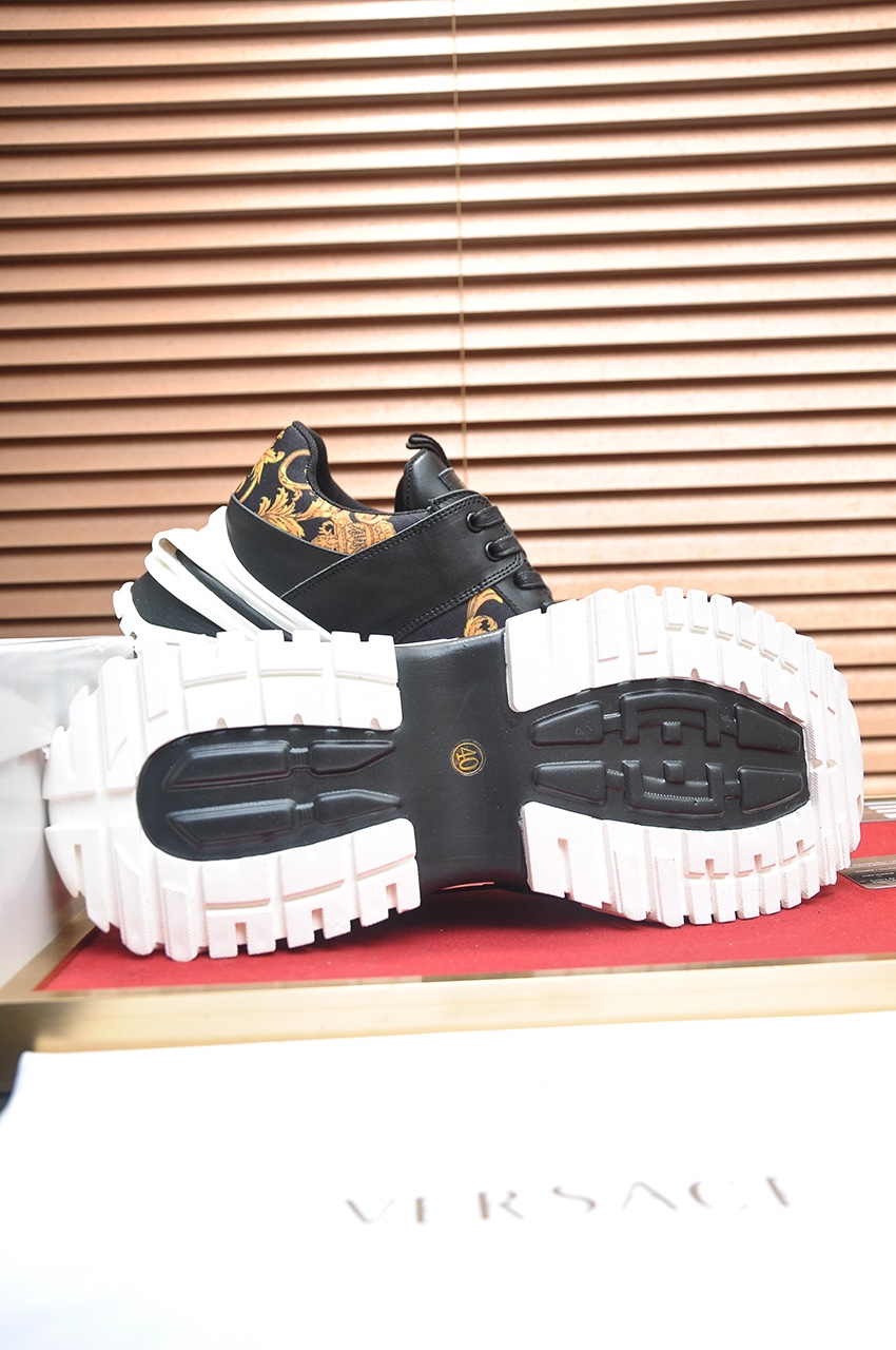 这款鞋子是AAAAA 1:1 质量 (非常棒). 使用了和原版一模一样的材料. 商标部分也保持了和范思哲/Versace一样. 图片拍摄是实物鞋子拍摄, 您所收到的实物保证和我们图片一模一样.